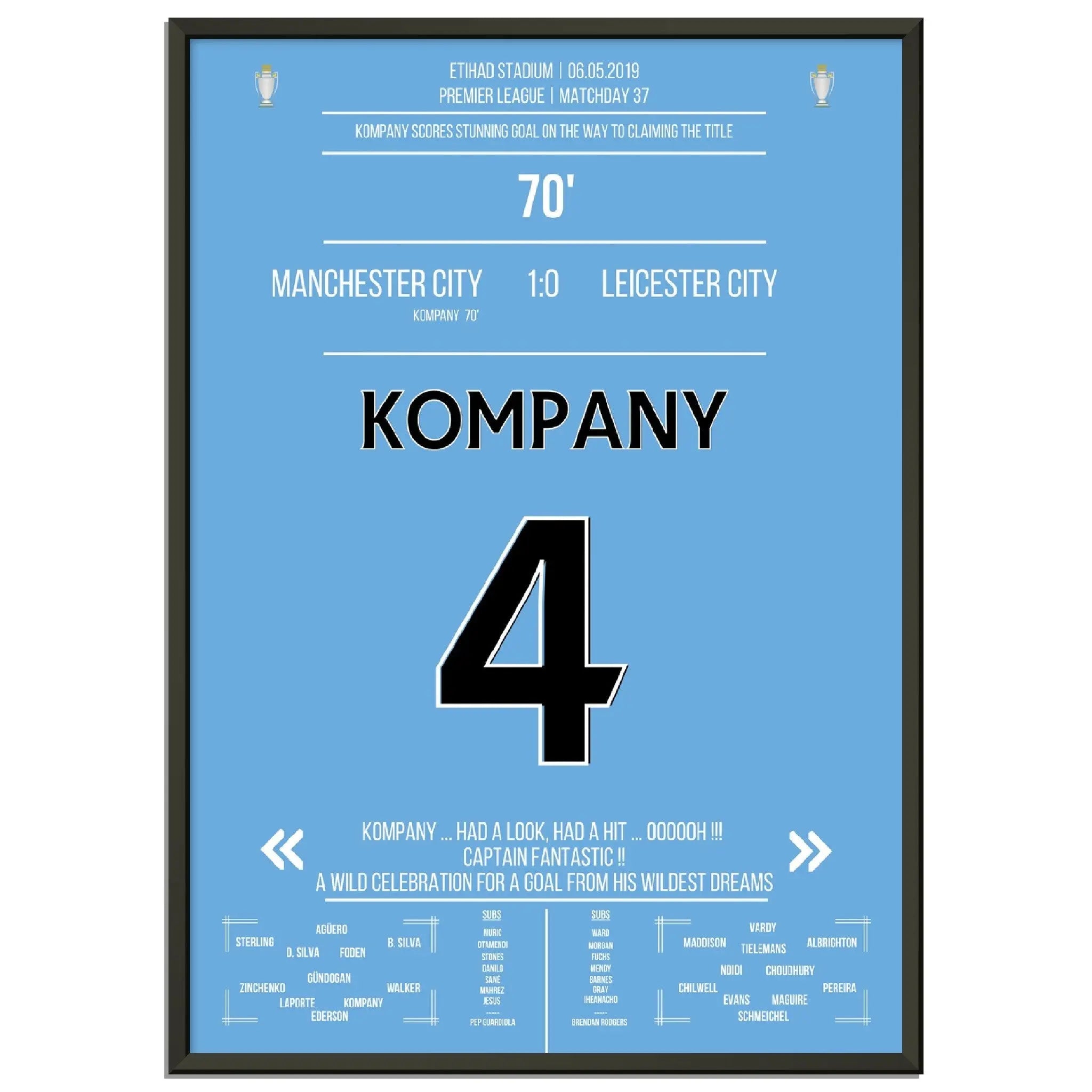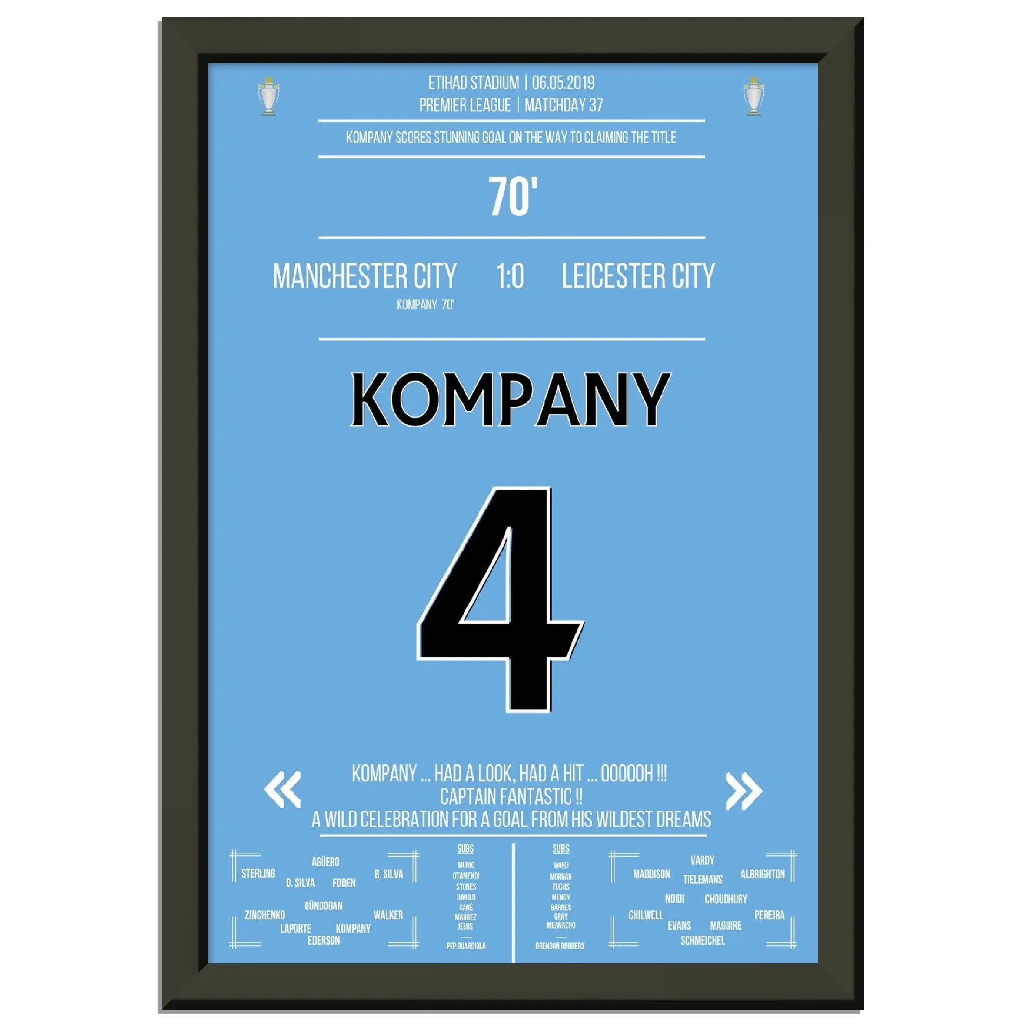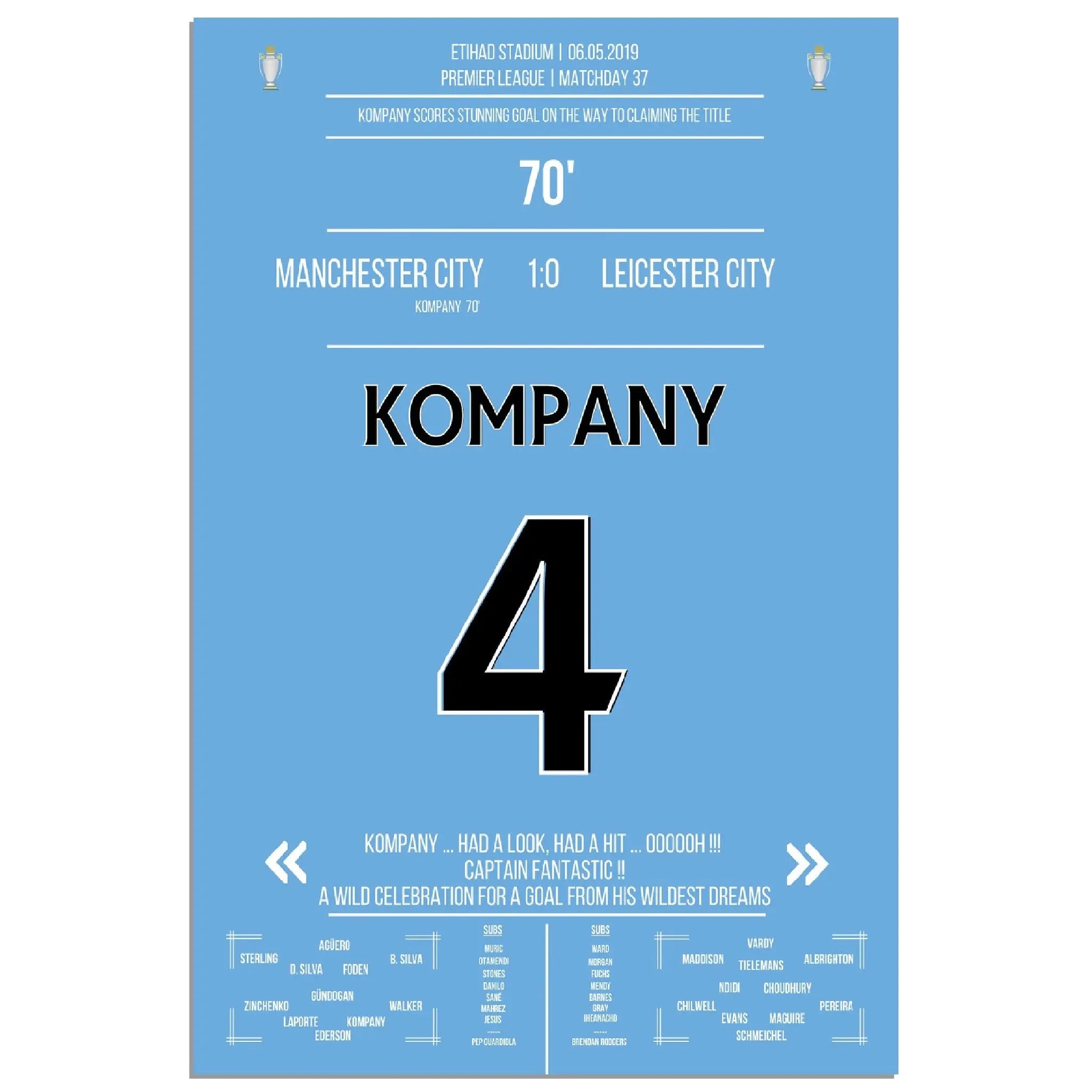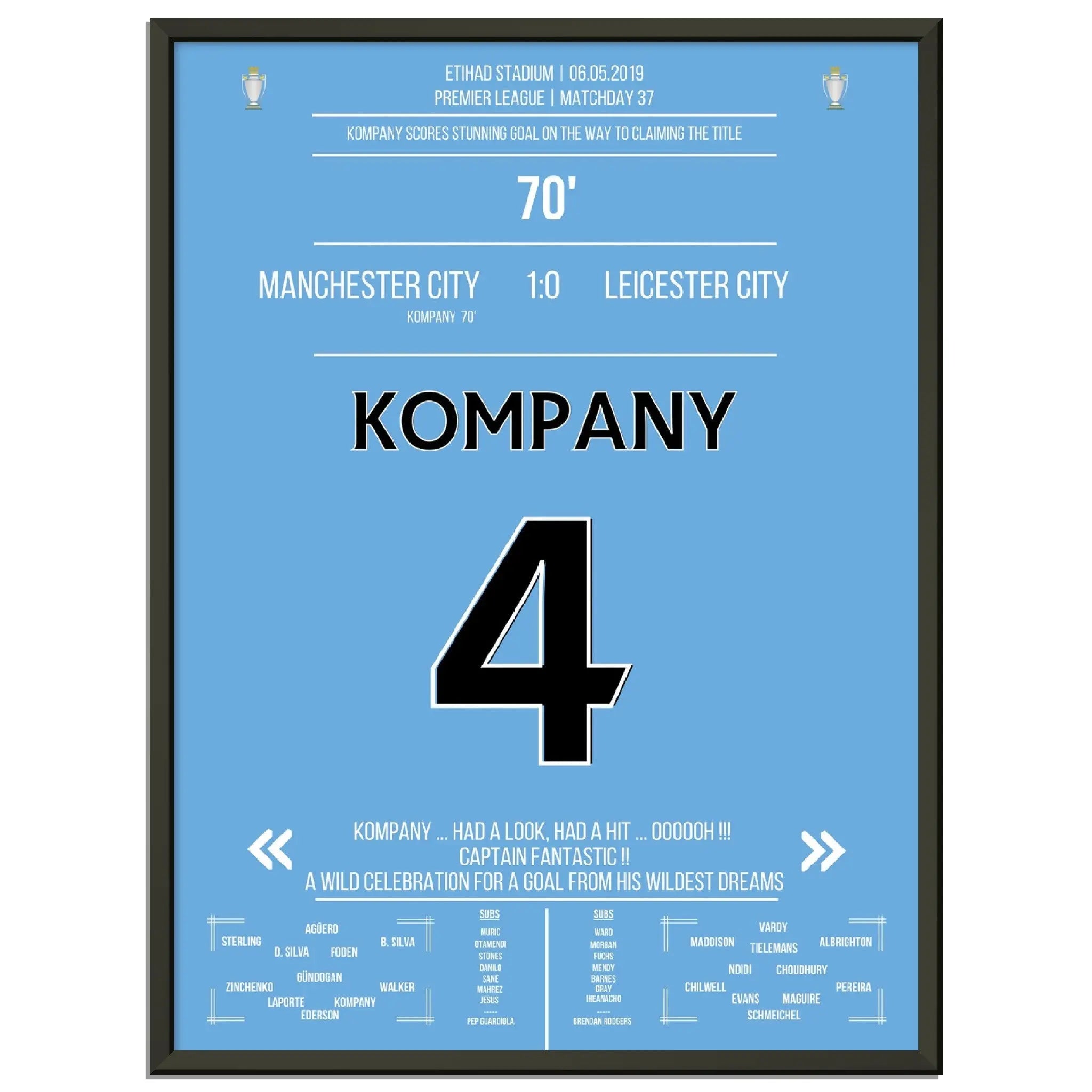 Kompany scores a dream goal against Leicester on City's way to the Premier League title in 2019.