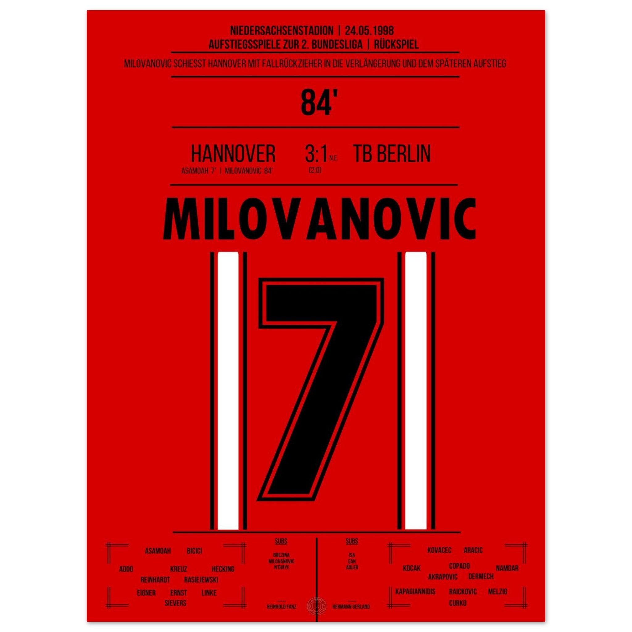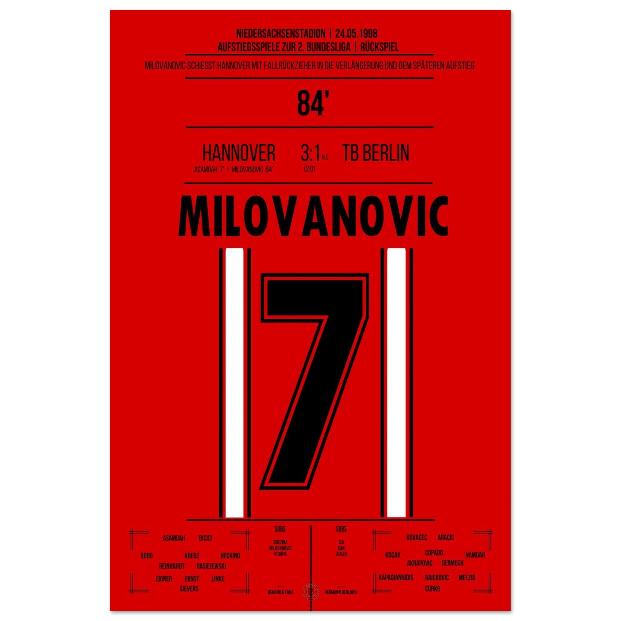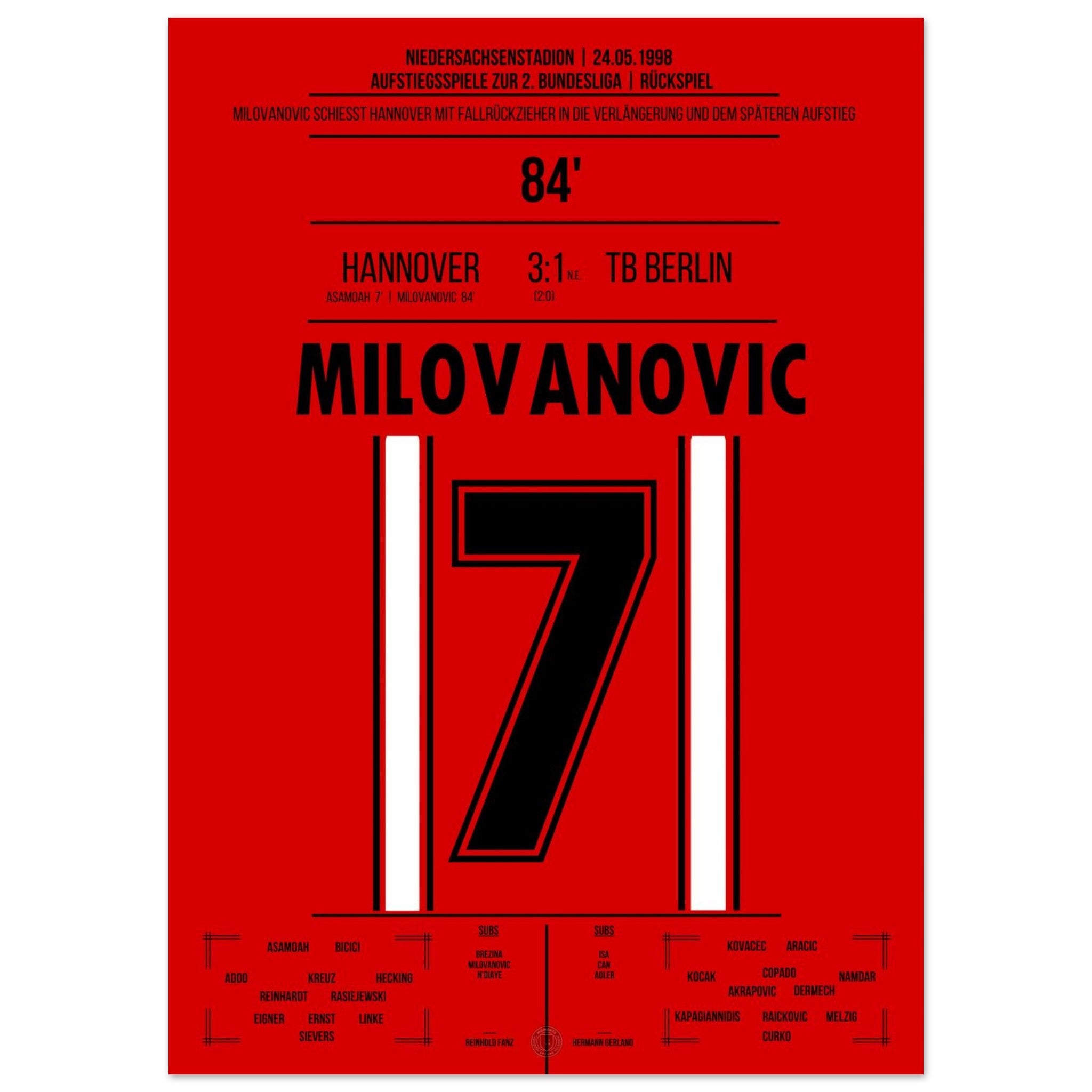 Milovanovic's bicycle kick during Hannover's return to the 2. Bundesliga in 1998.