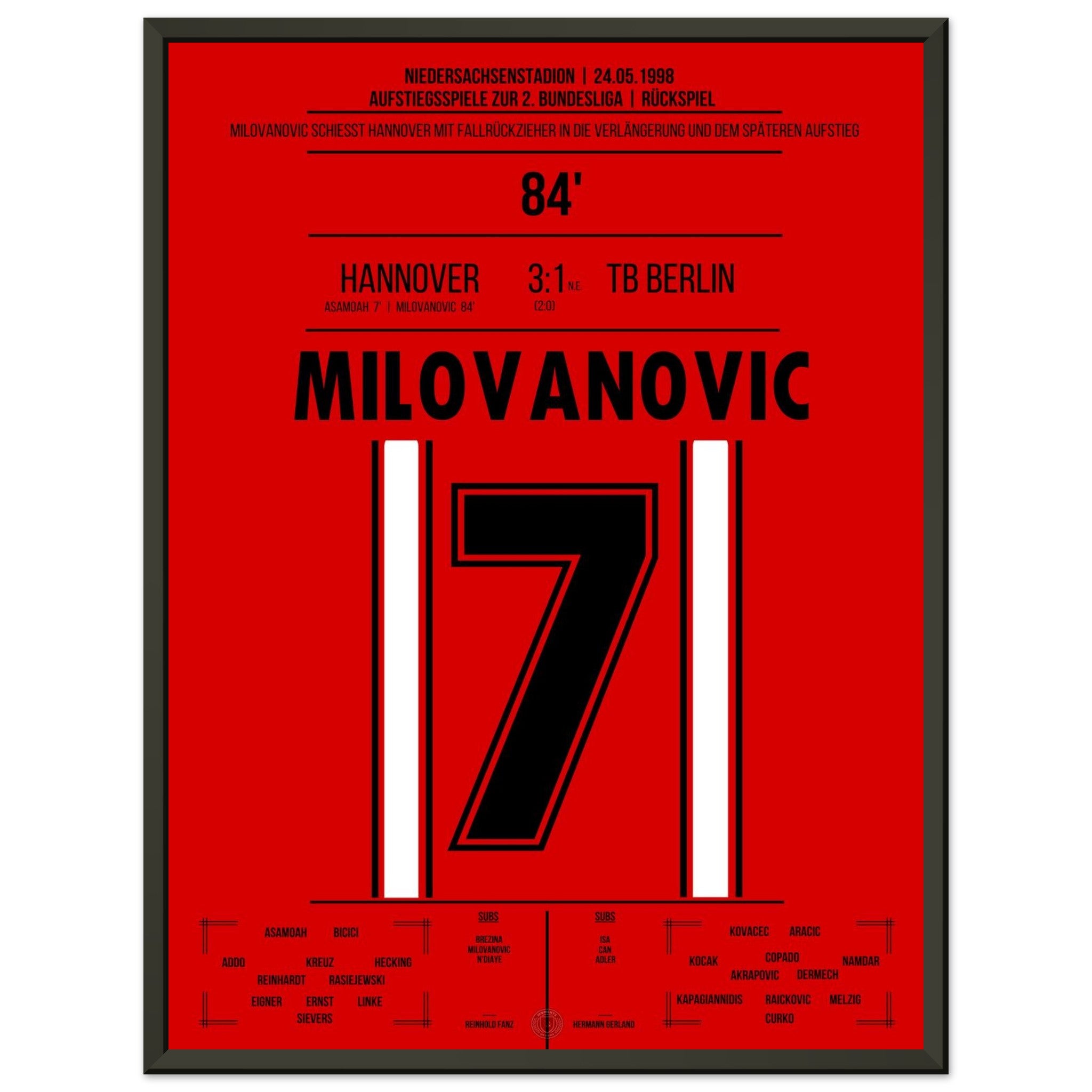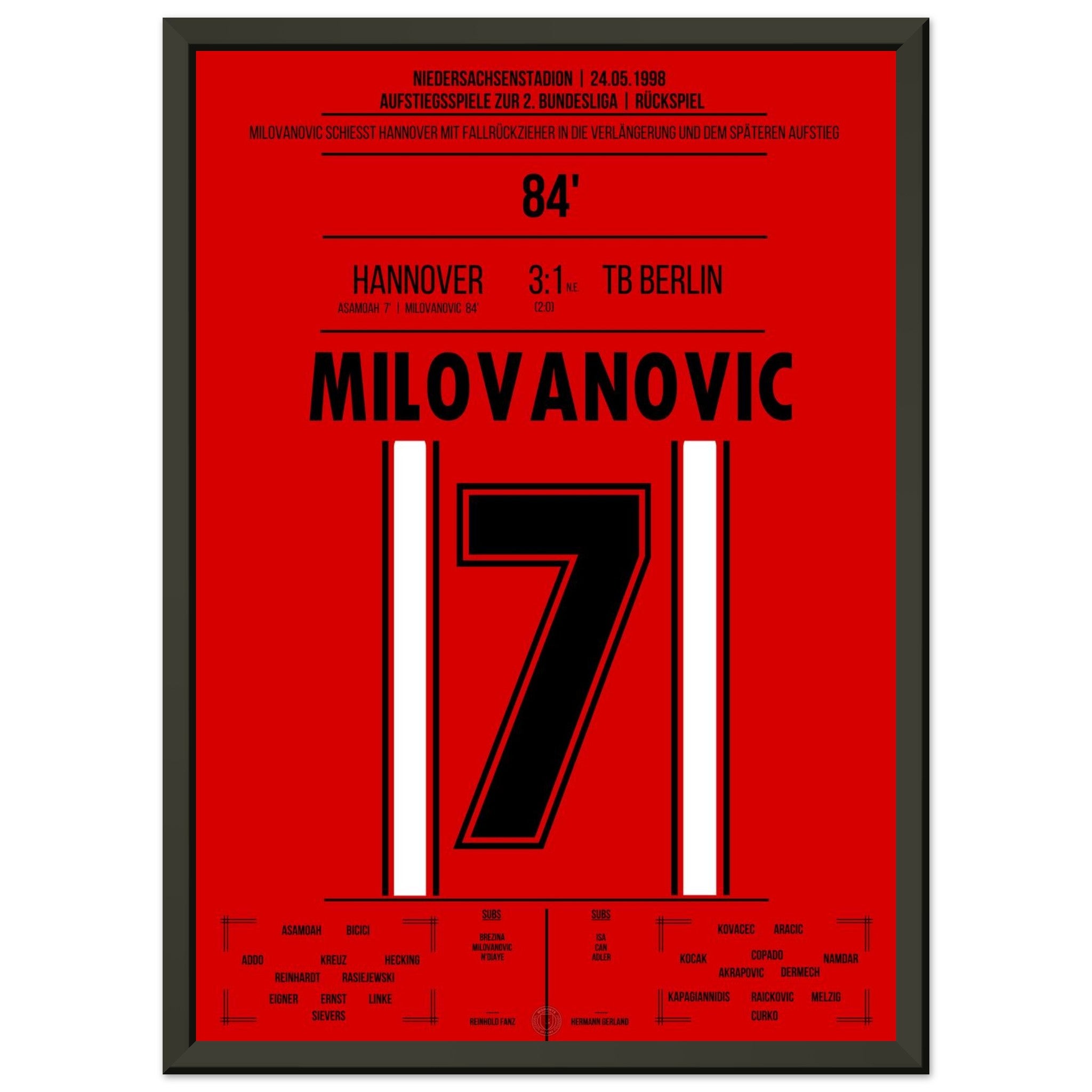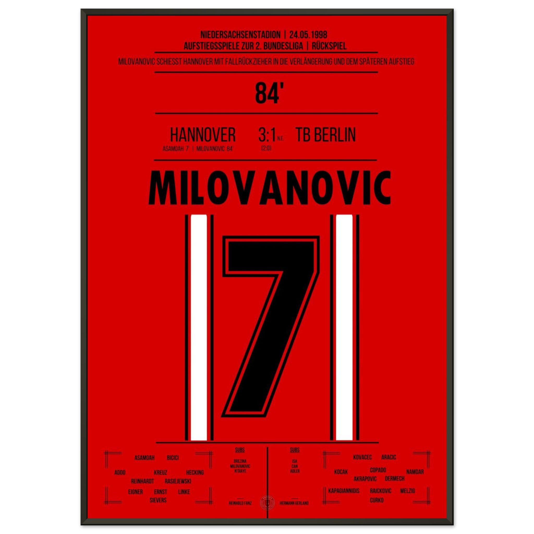 Milovanovic's bicycle kick during Hannover's return to the 2. Bundesliga in 1998.