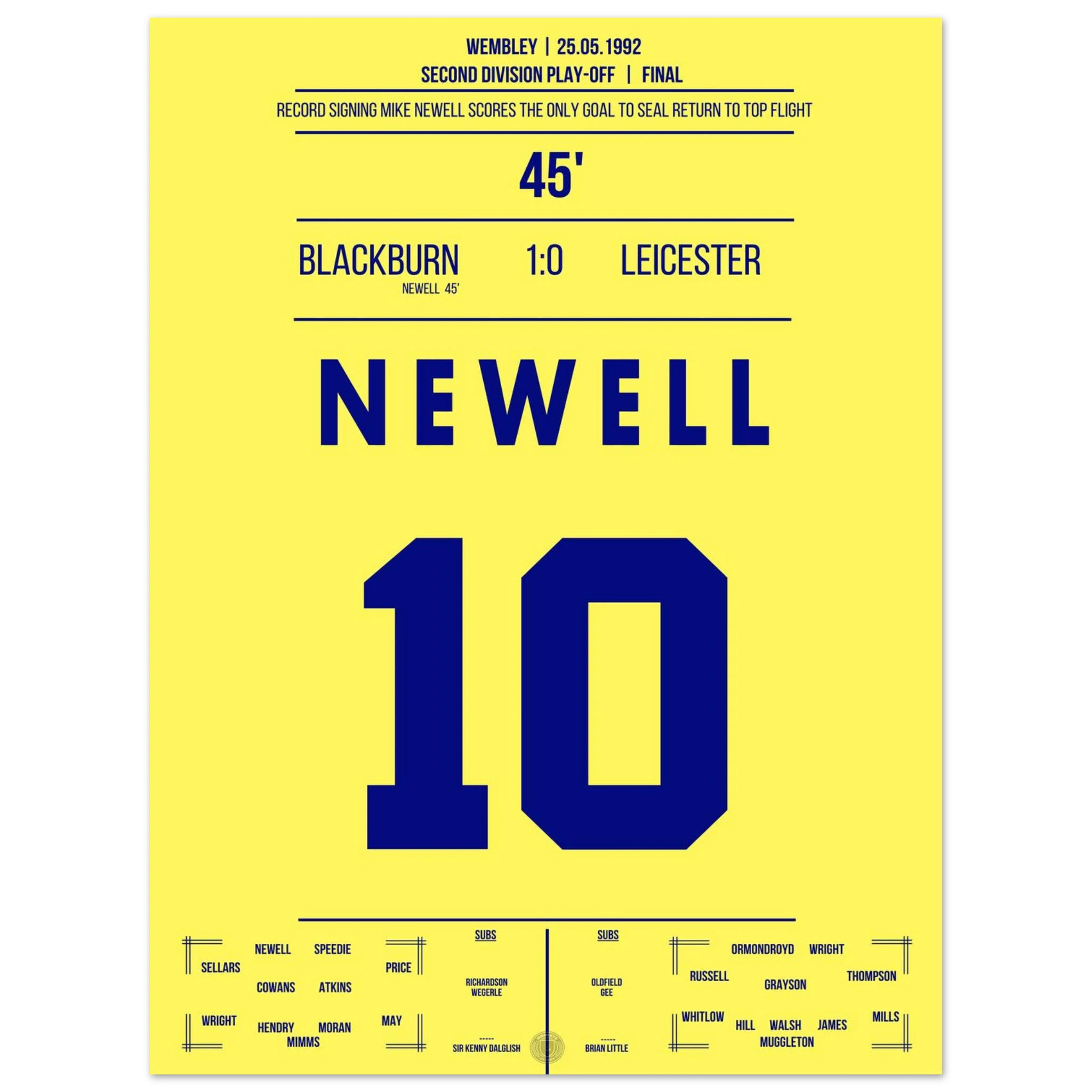 Dieses Poster feiert den Augenblick, der den Traum vom großen Fußball in Blackburn wahr werden ließ – ein Tor, das alles veränderte.