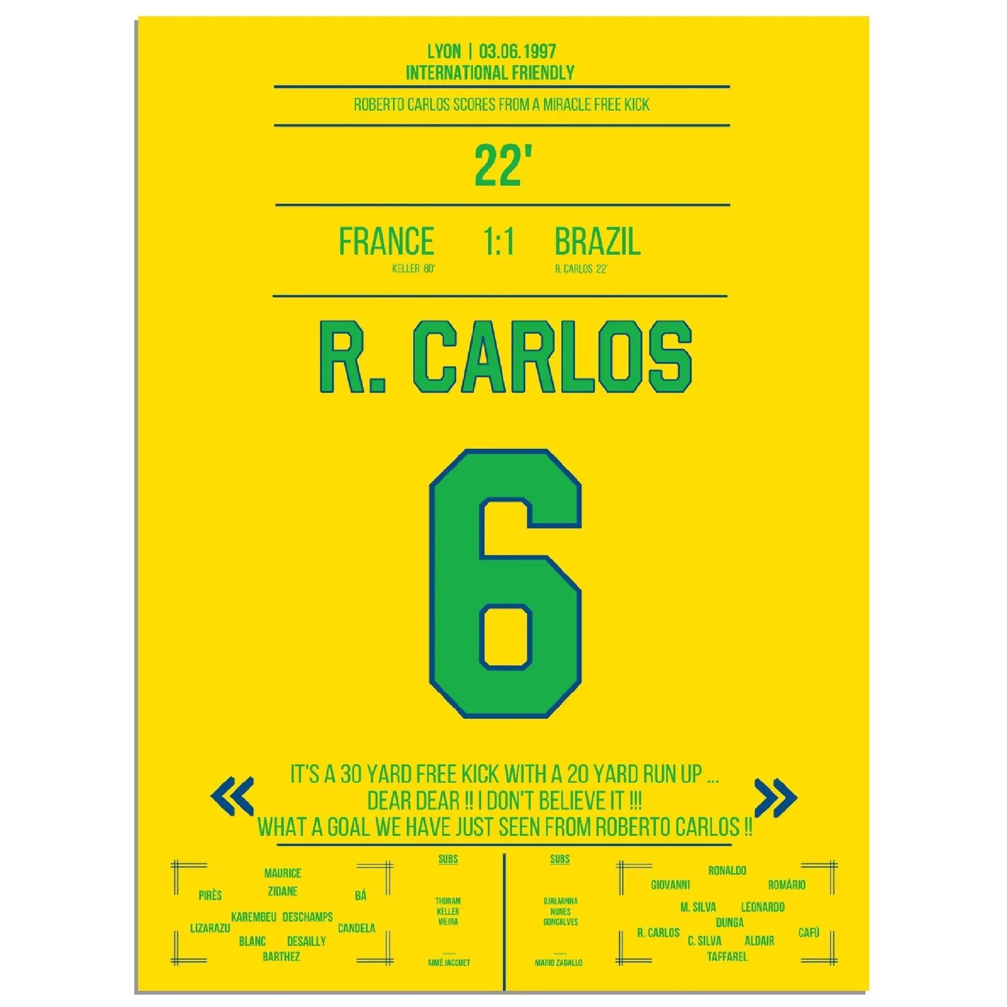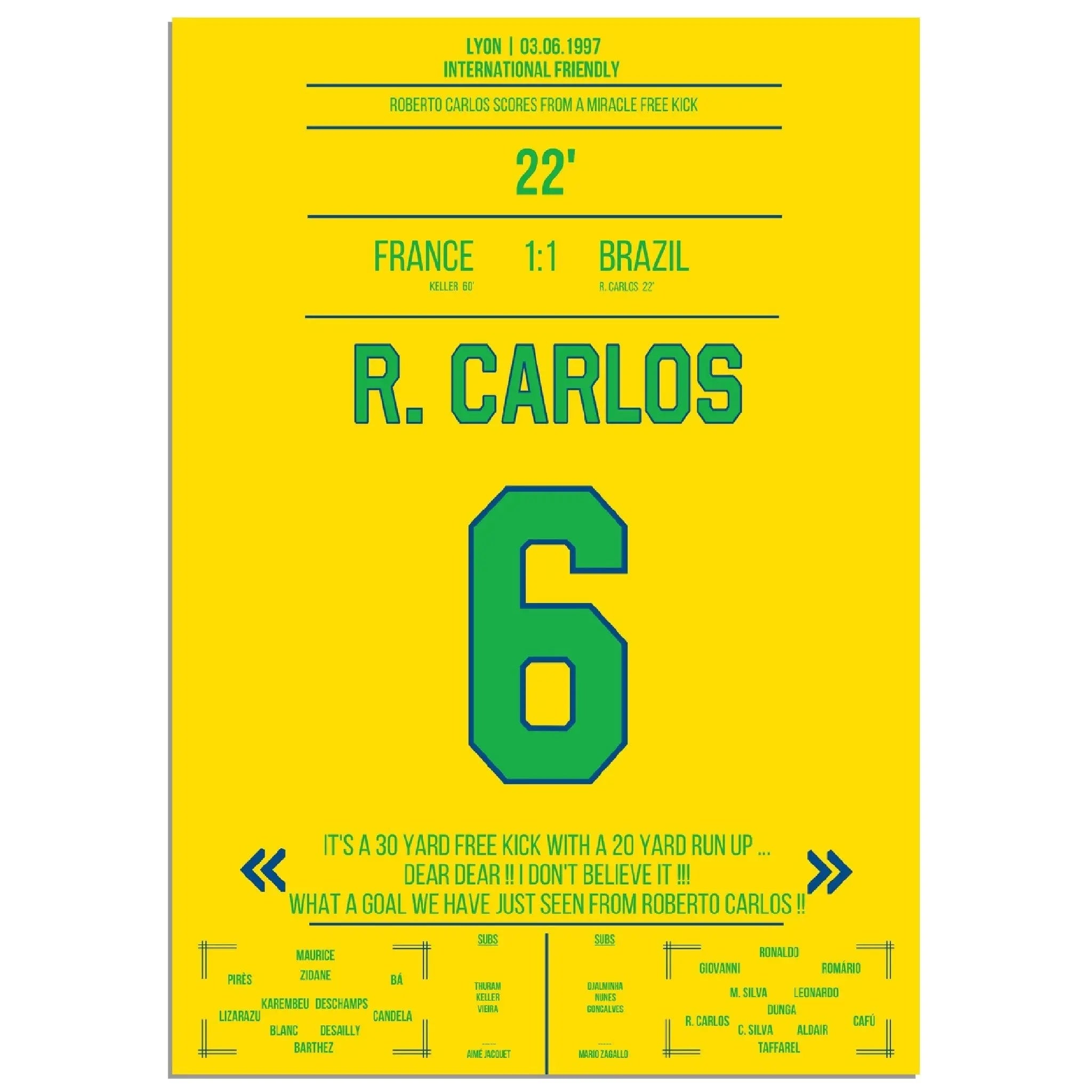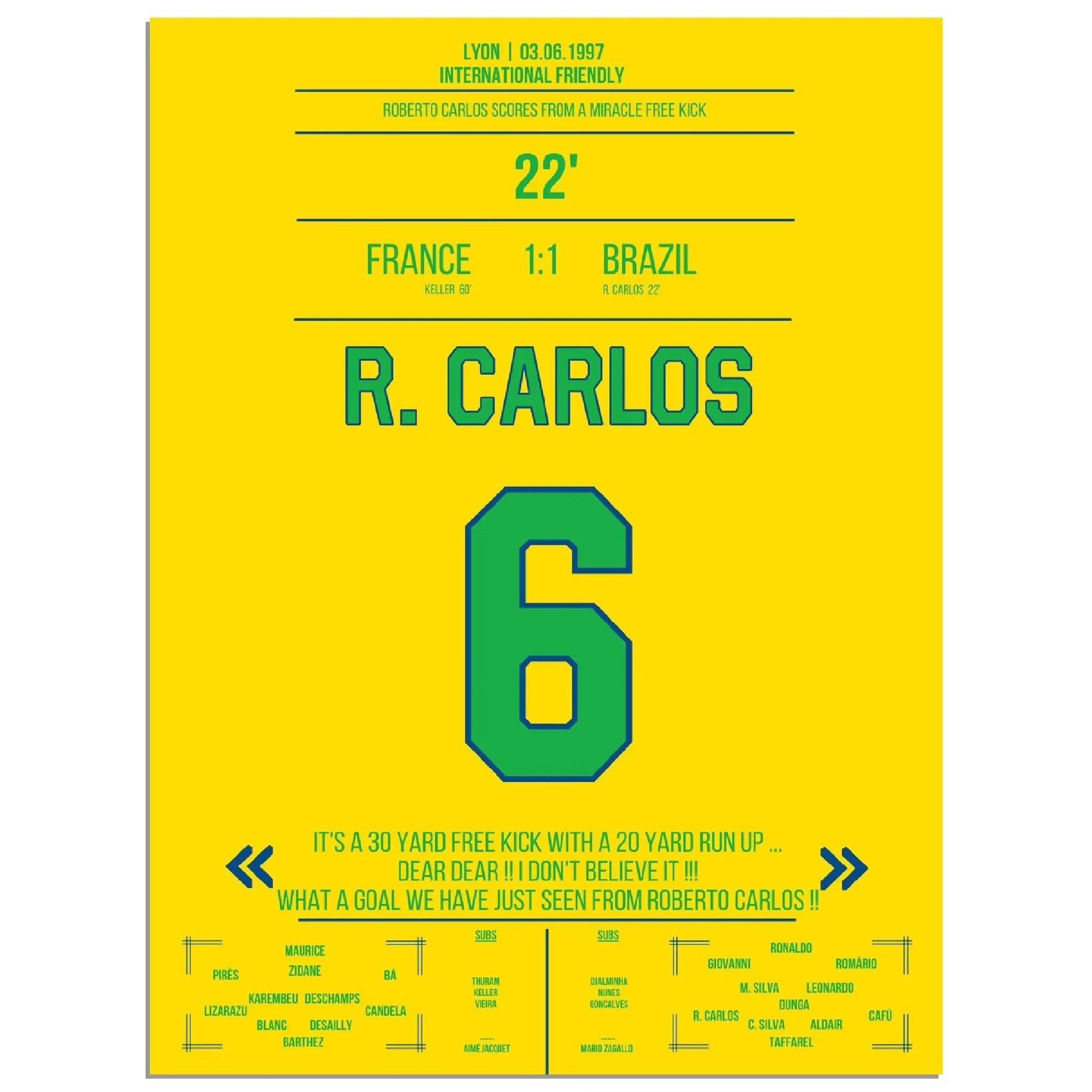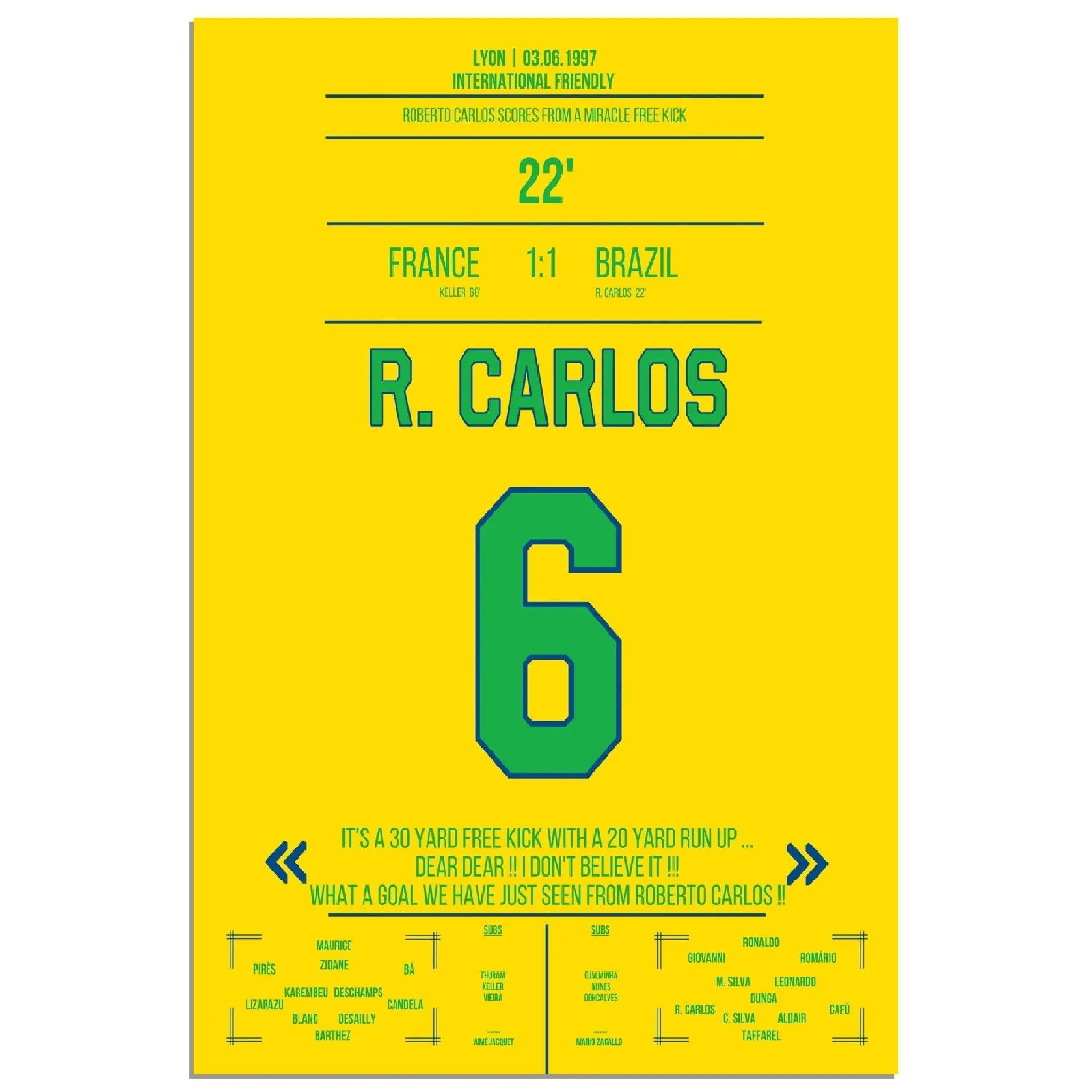 Roberto Carlos' magical free kick against France
