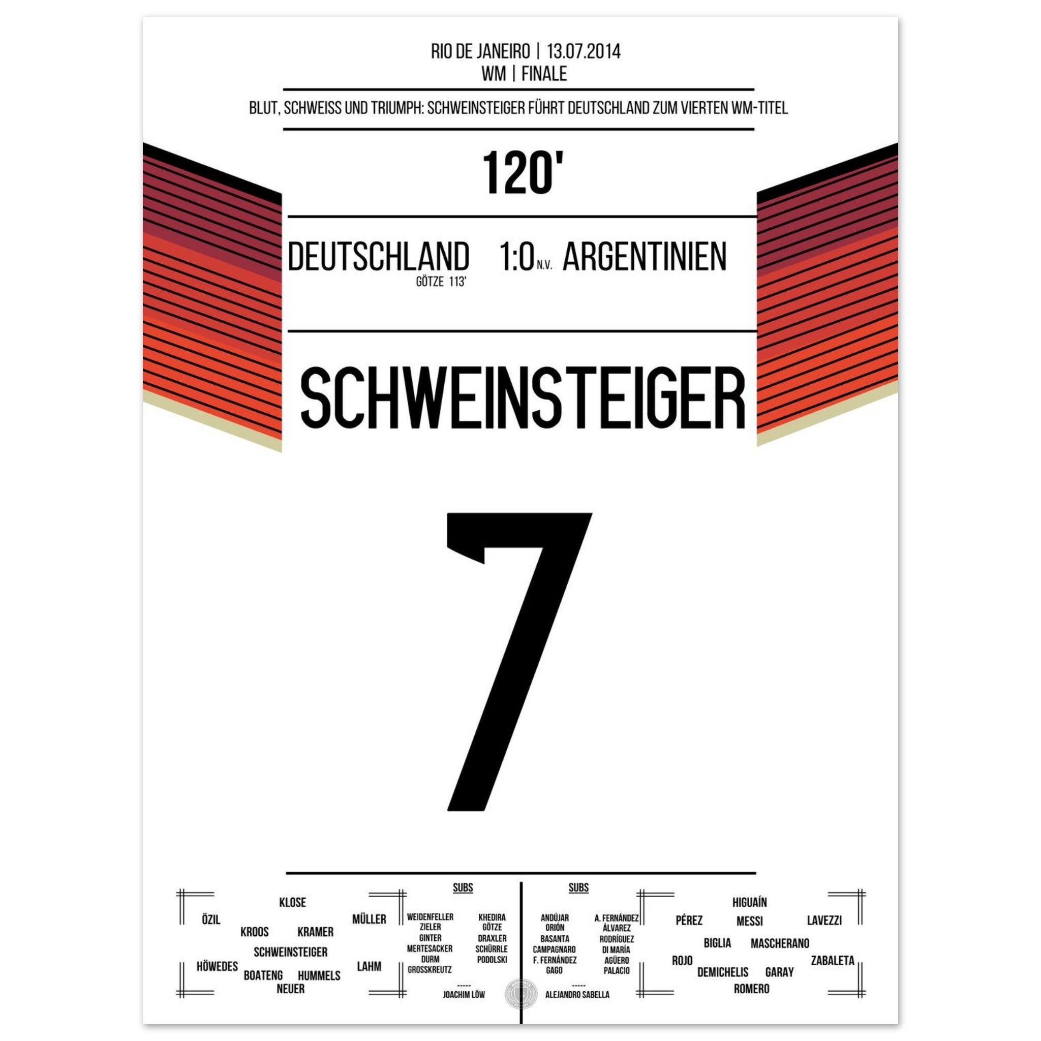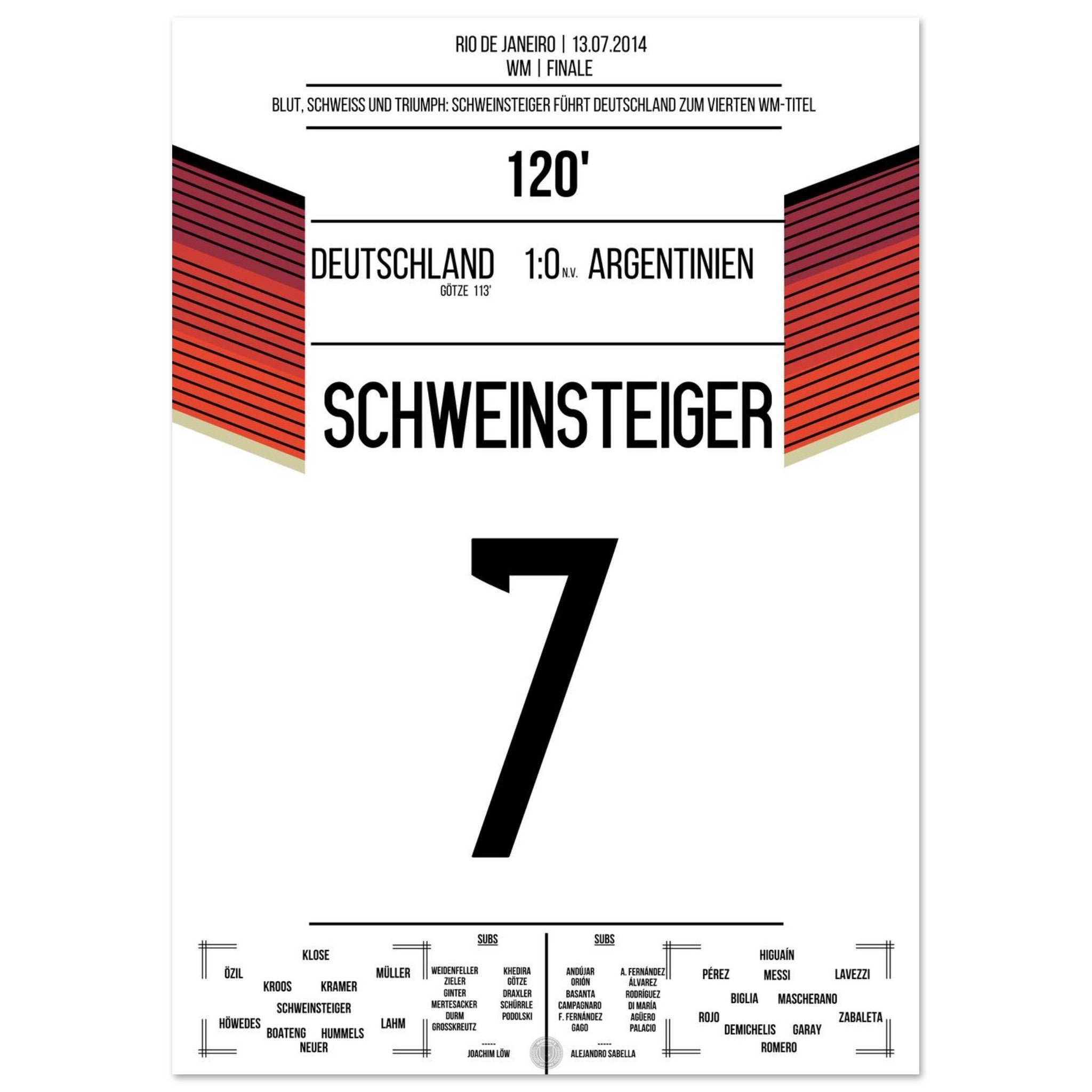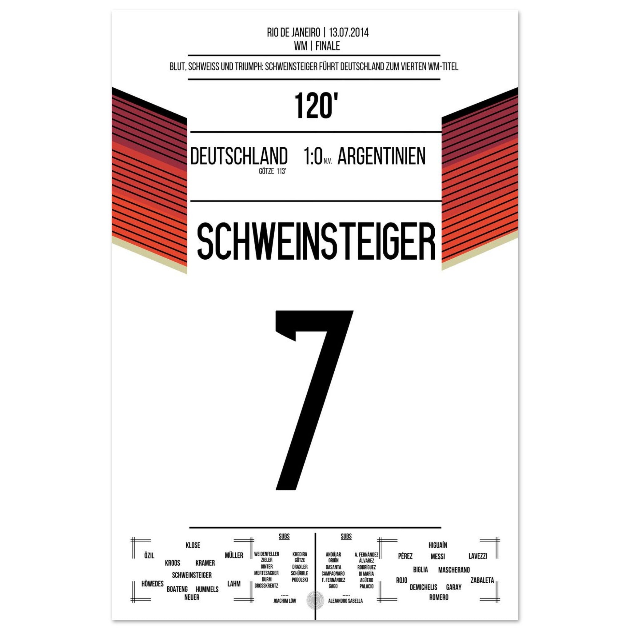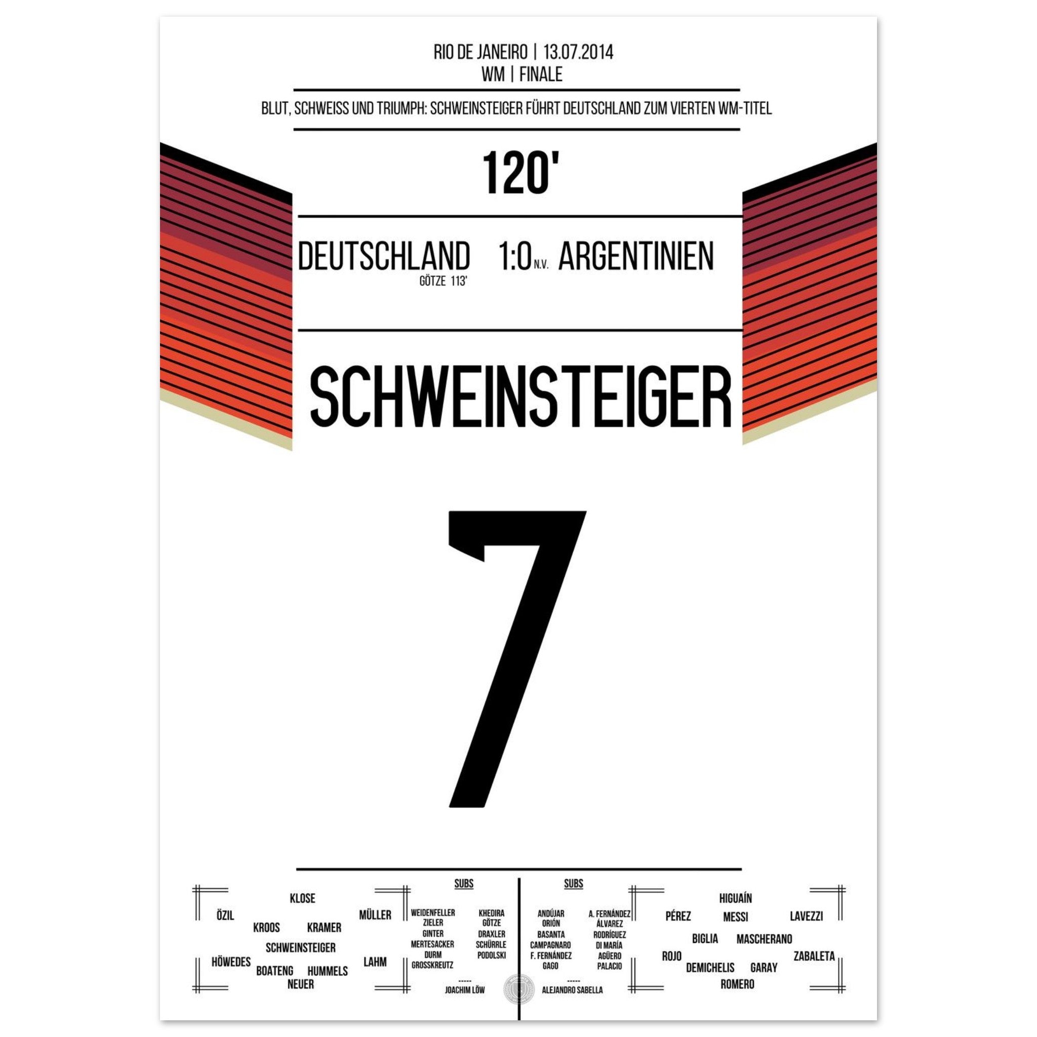 Schweinsteiger leads Germany, bleeding, to the World Championship title in 2014.