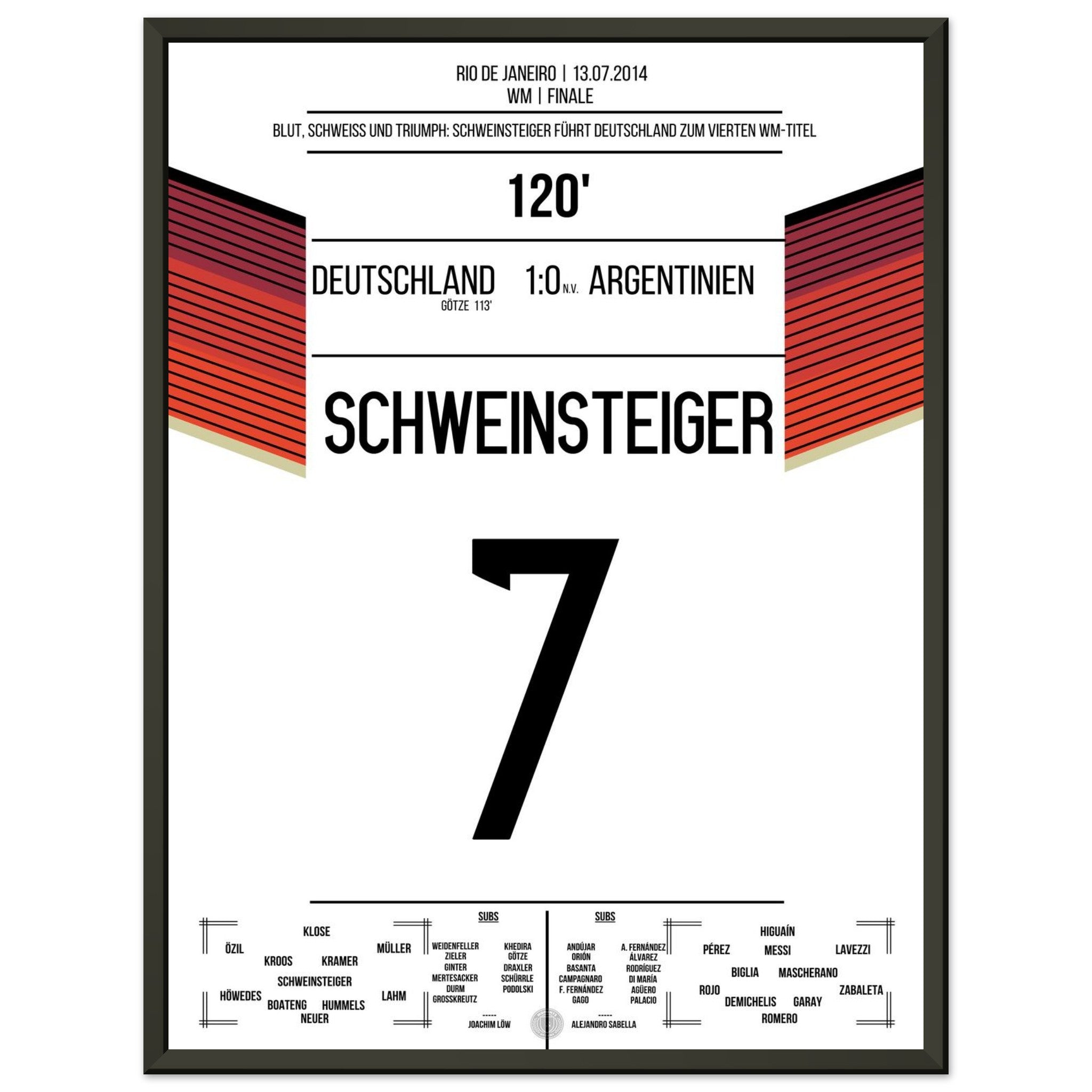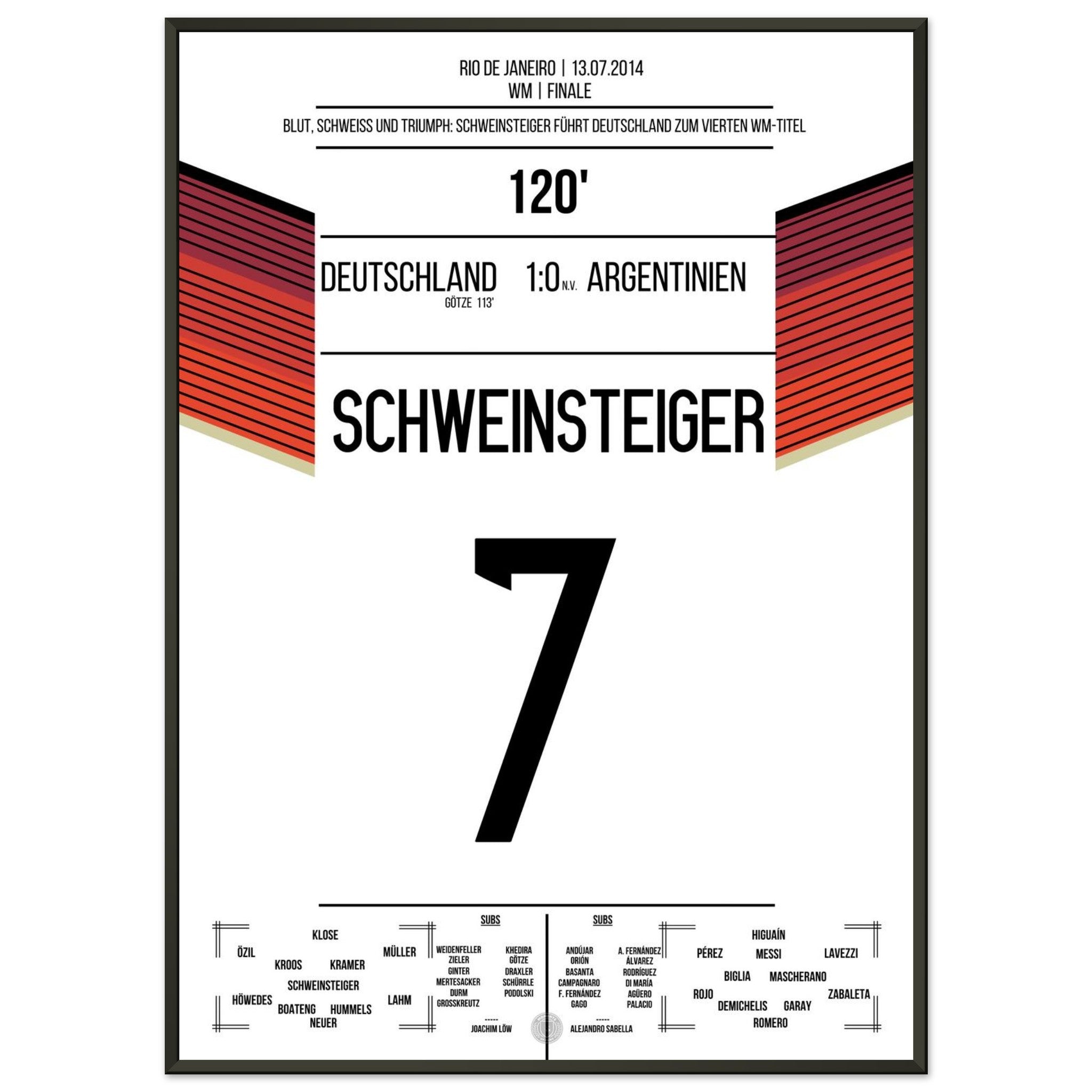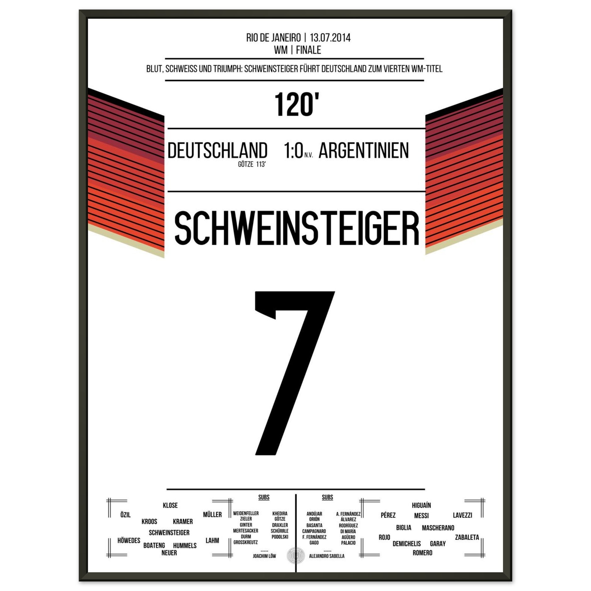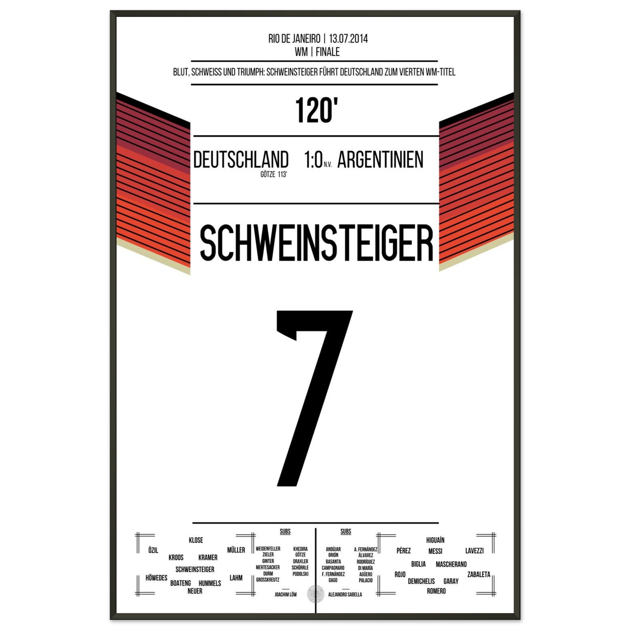 Schweinsteiger leads Germany, bleeding, to the World Championship title in 2014.