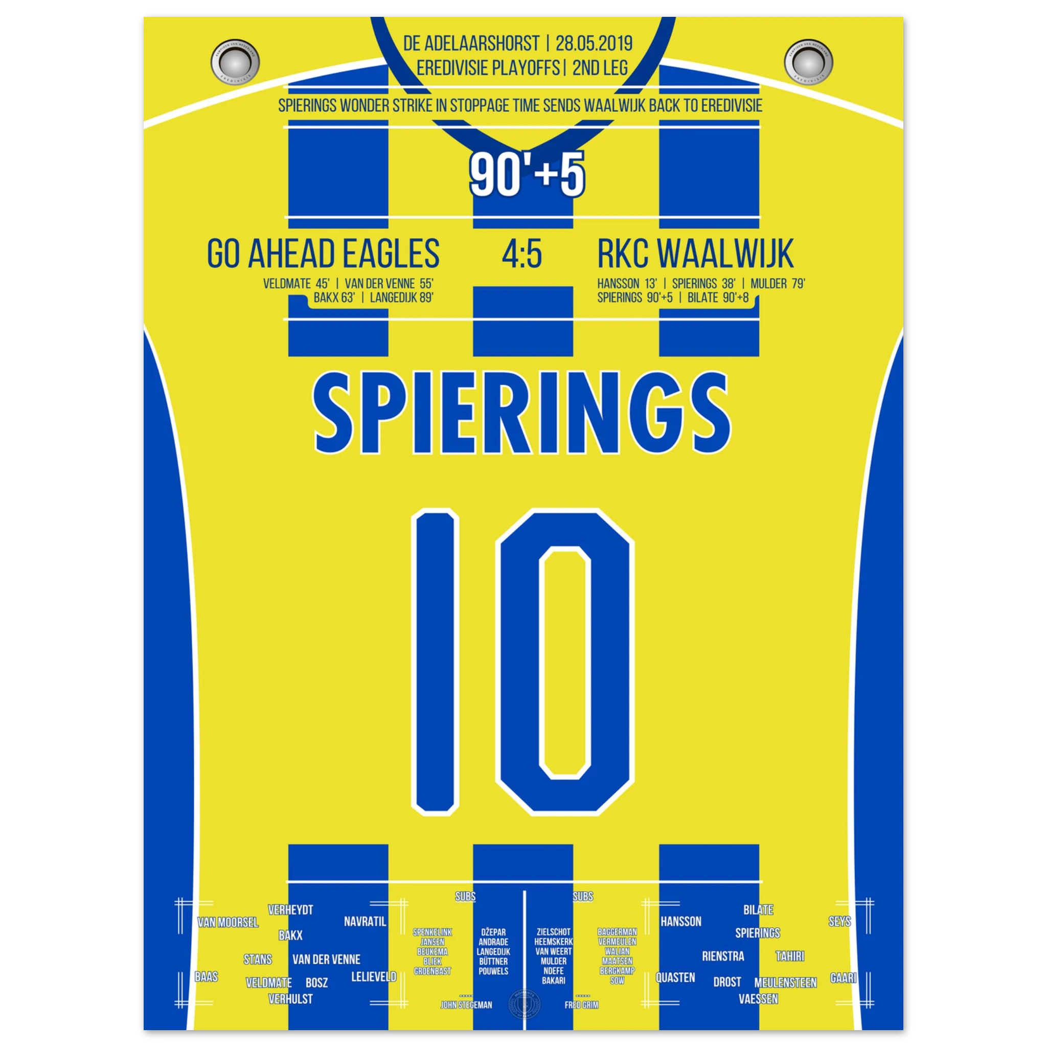 Spierings shoots Waalwijk into the 1st league in a dramatic playoff final.