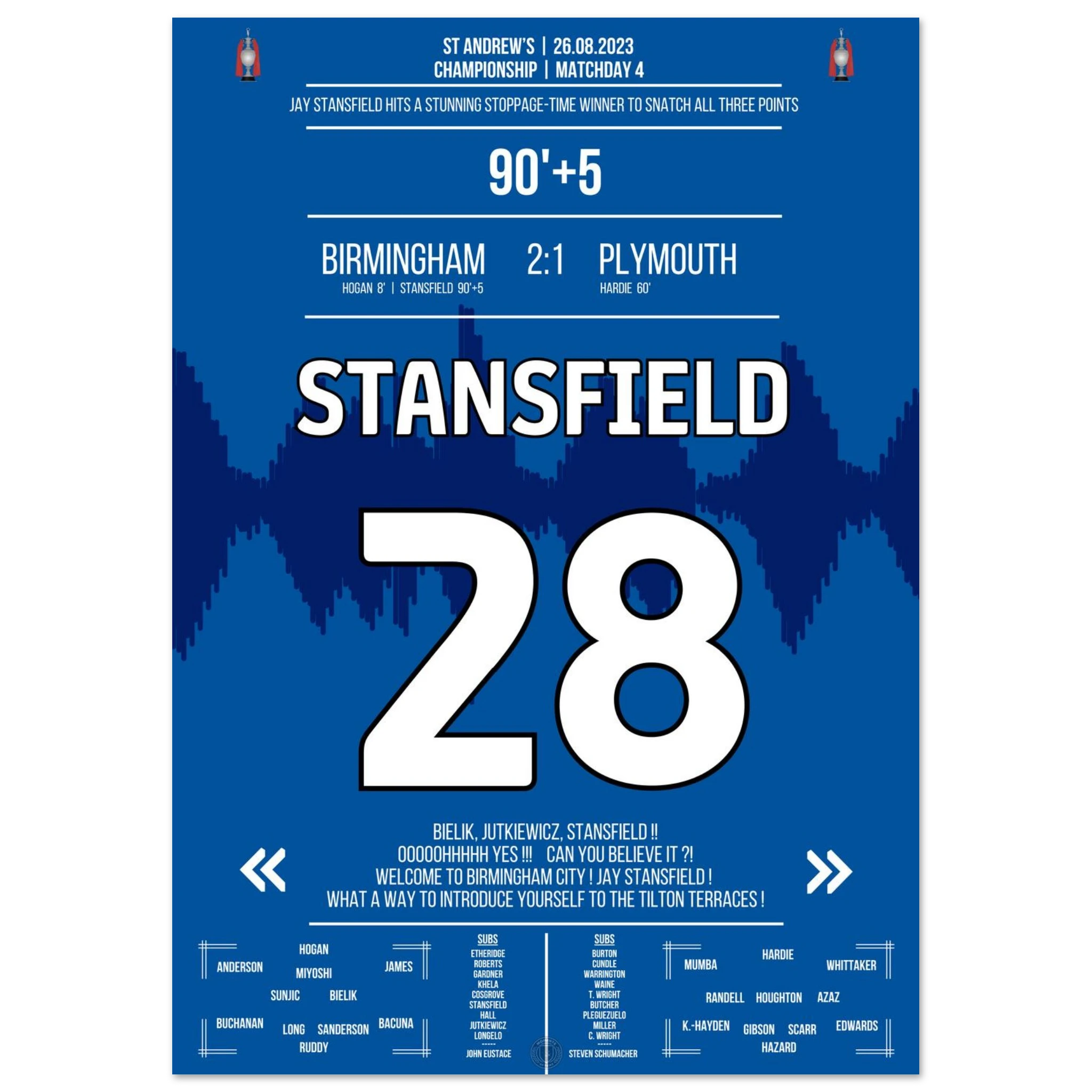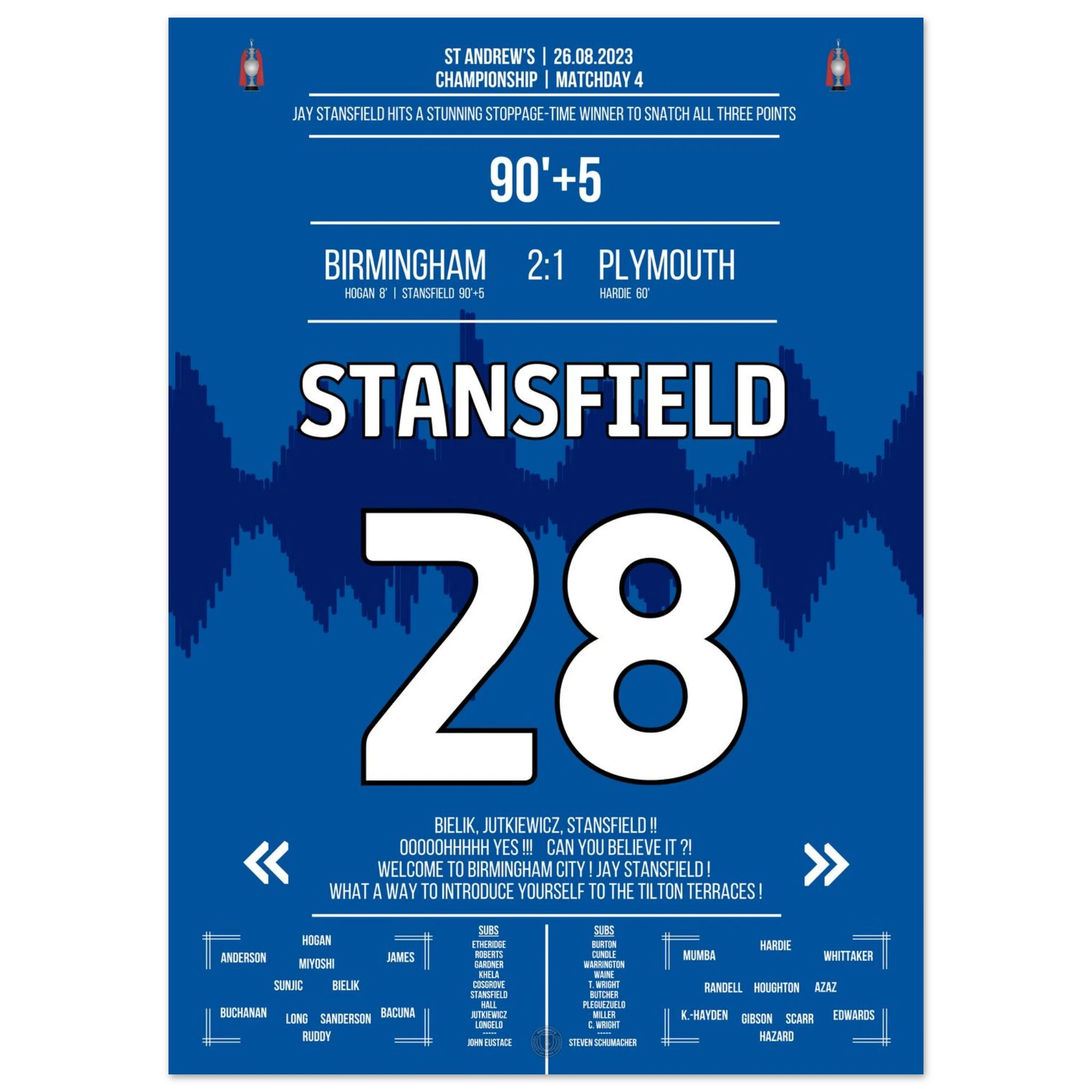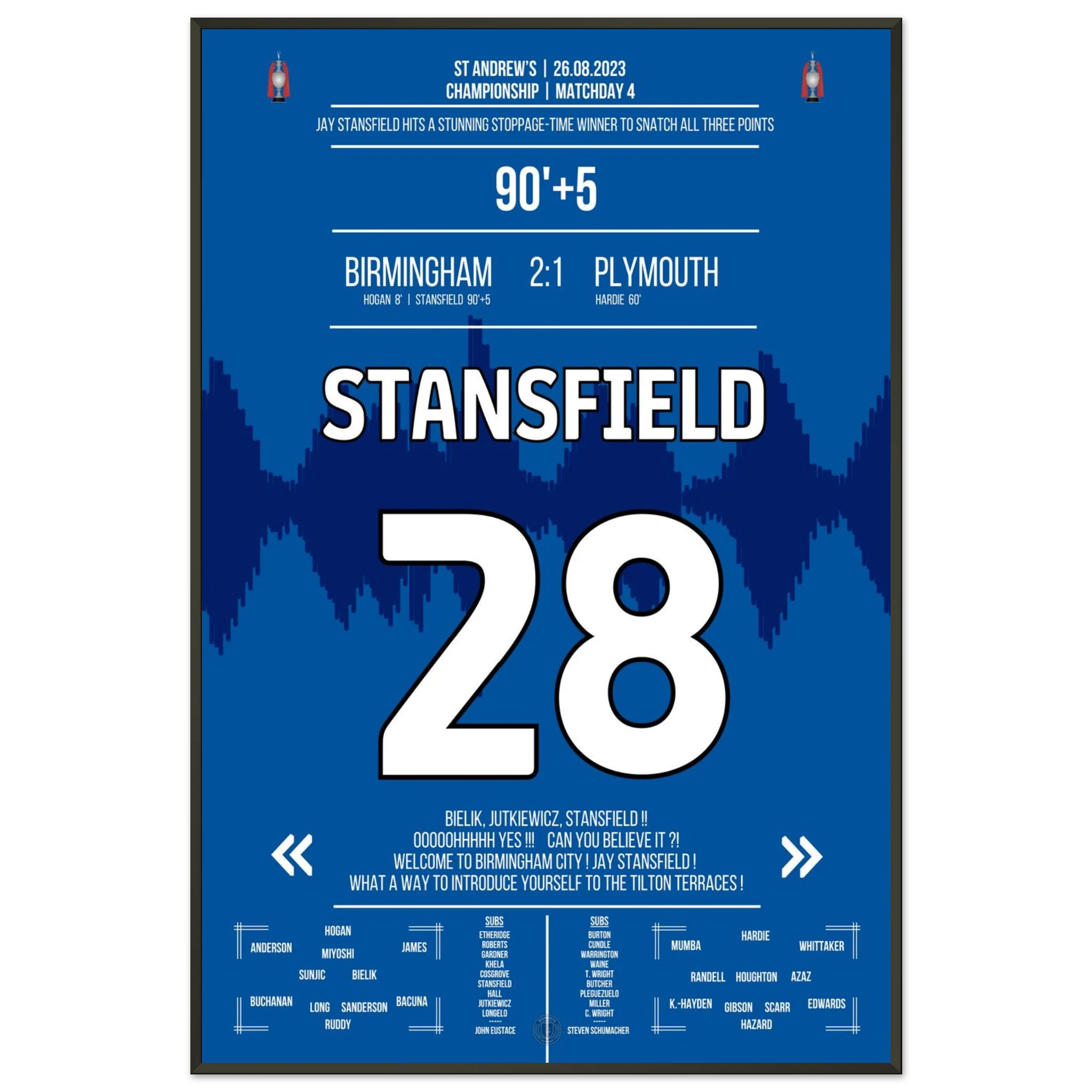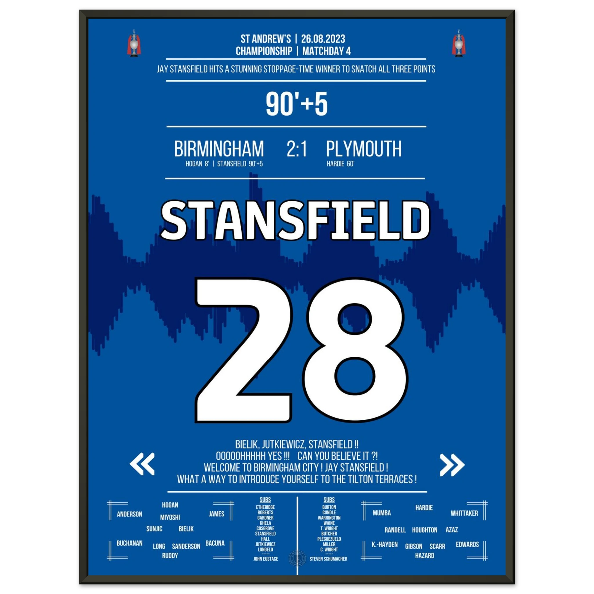 Stansfield scores a late winner in stoppage time to secure victory for Birmingham.