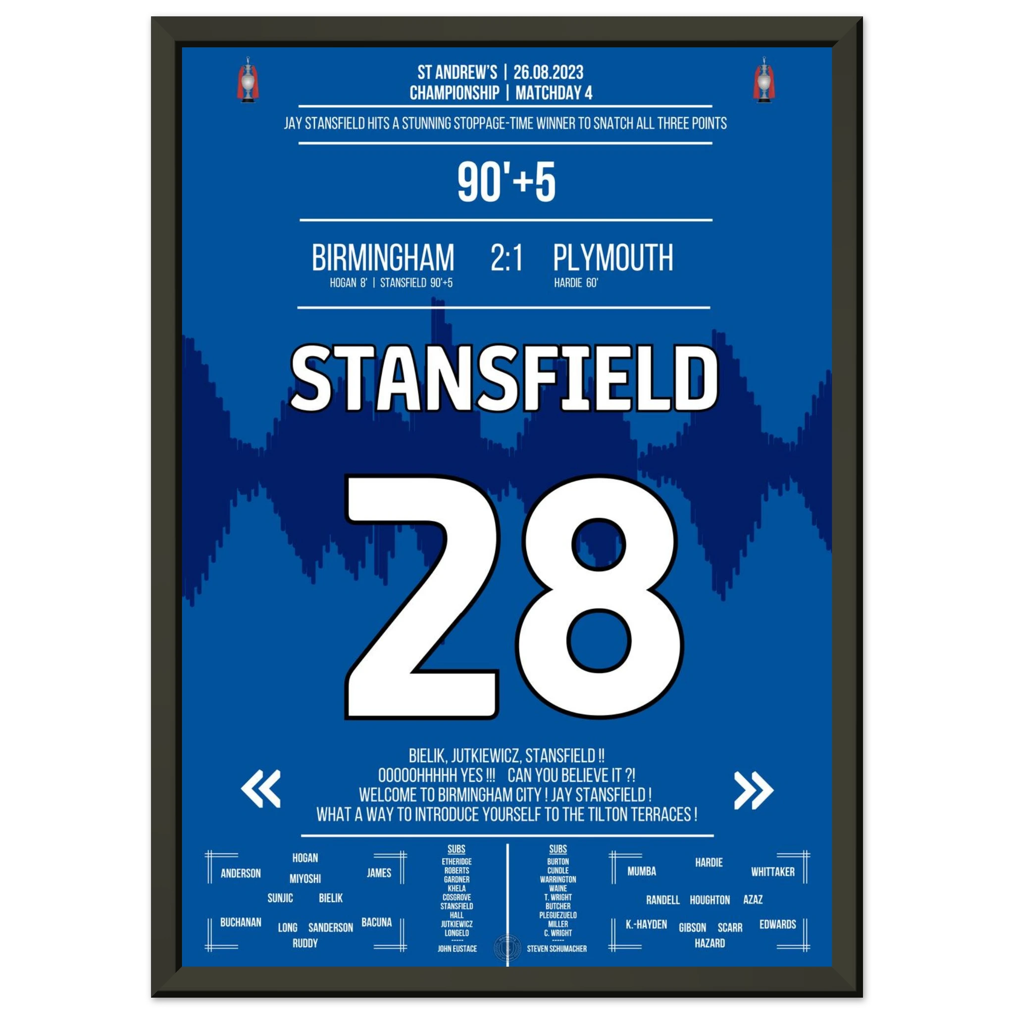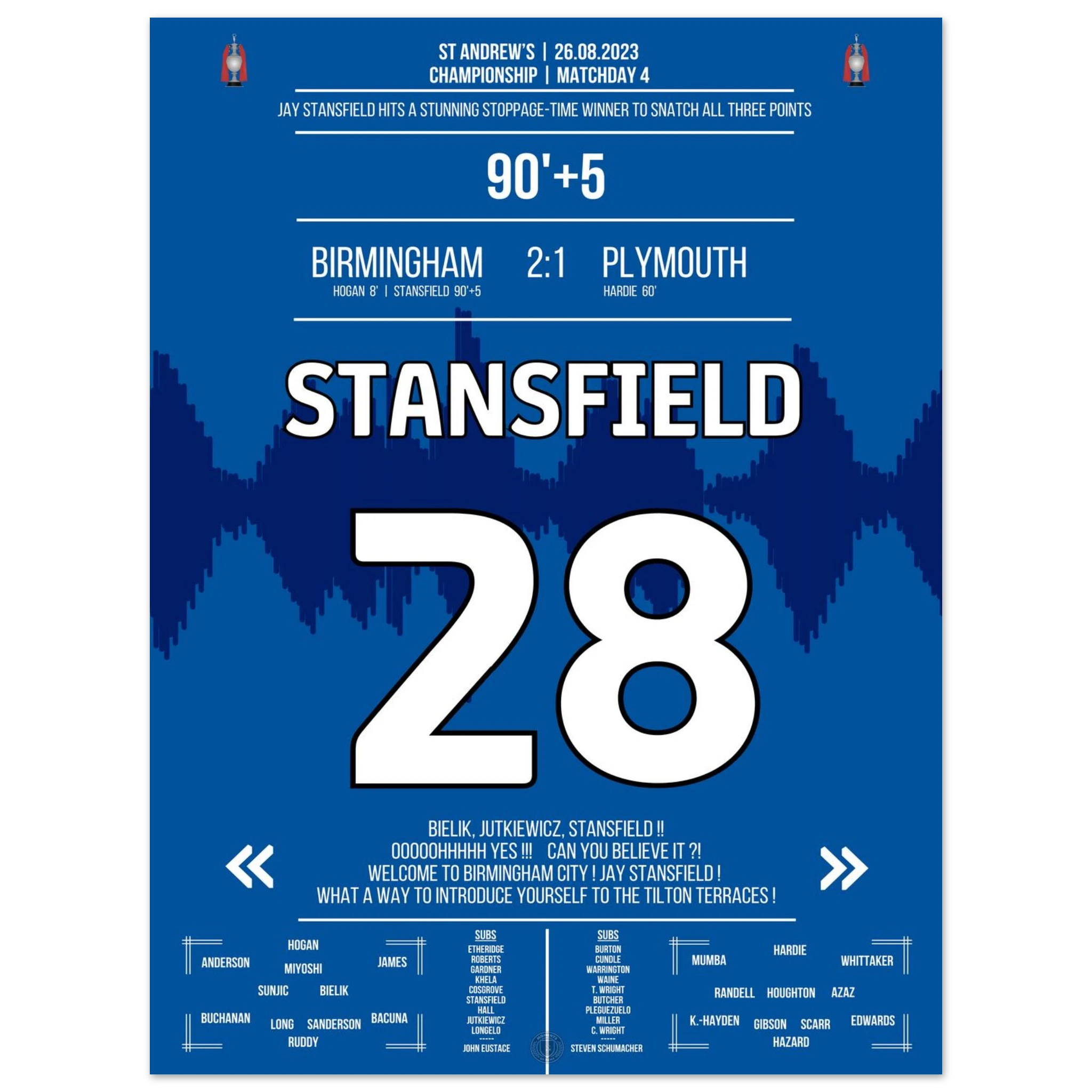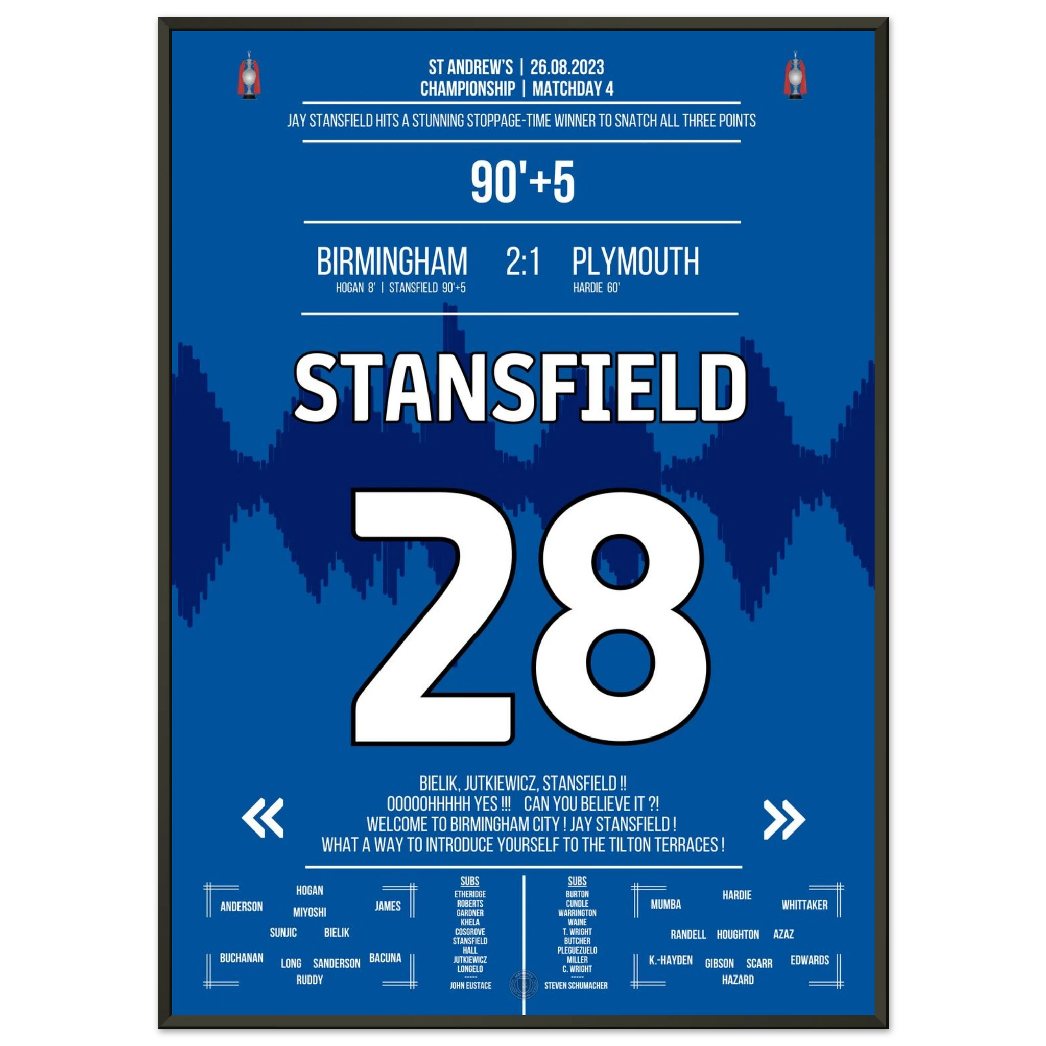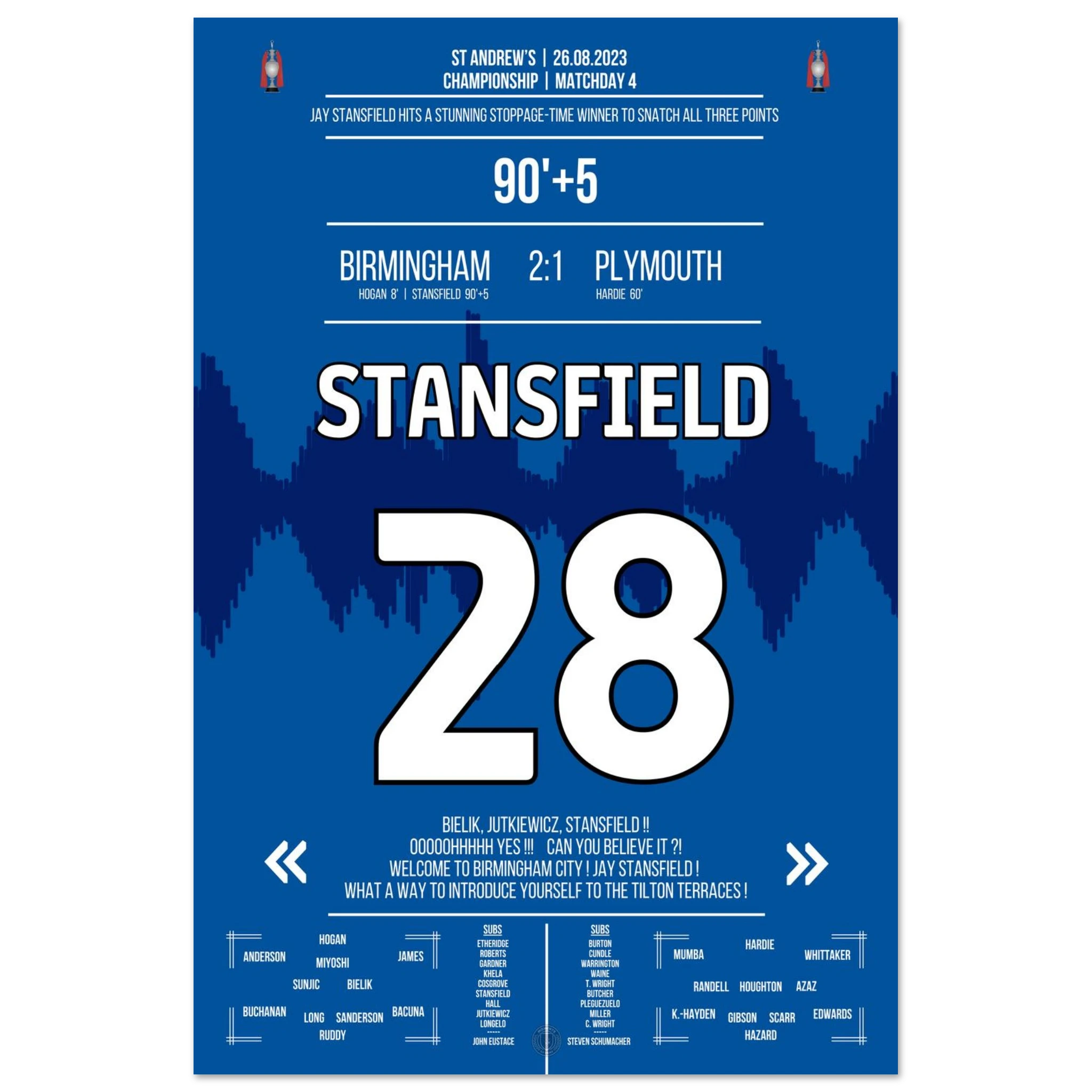 Stansfield scores a late winner in stoppage time to secure victory for Birmingham.