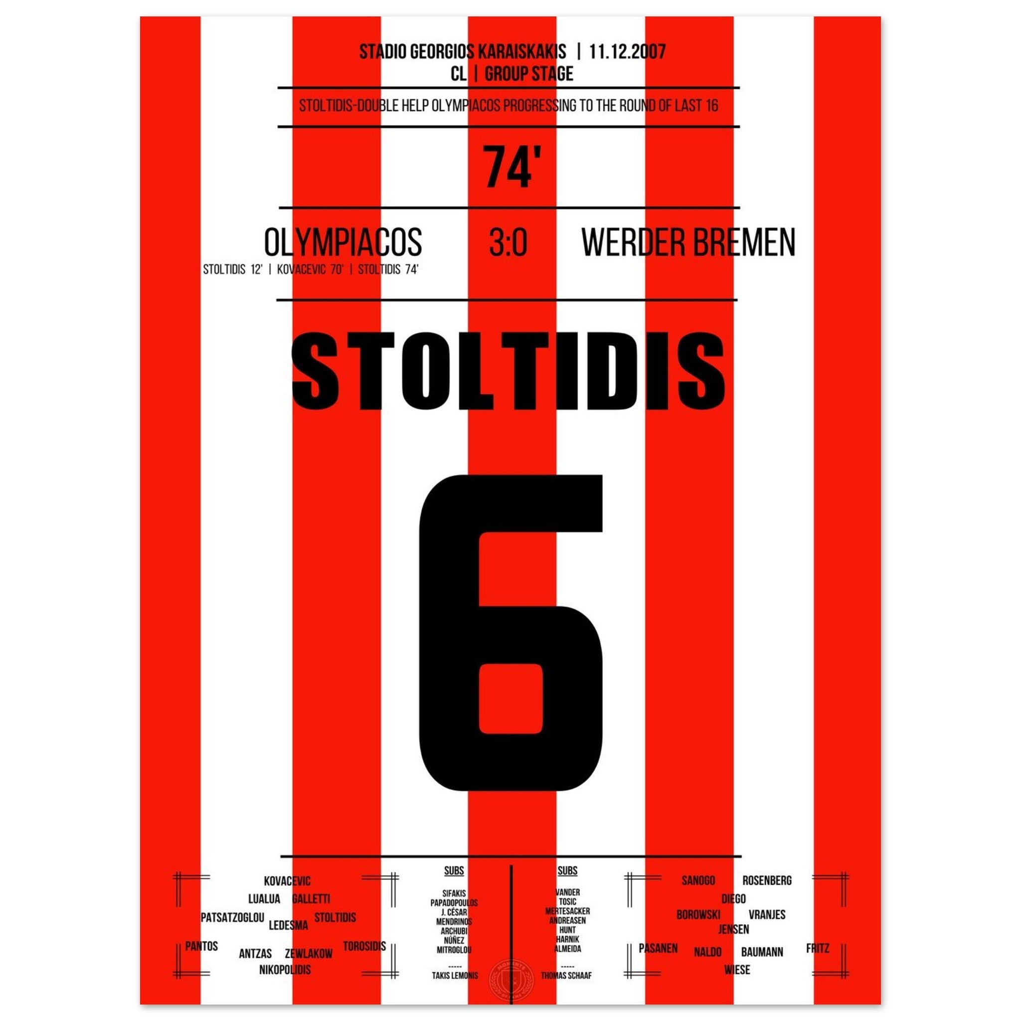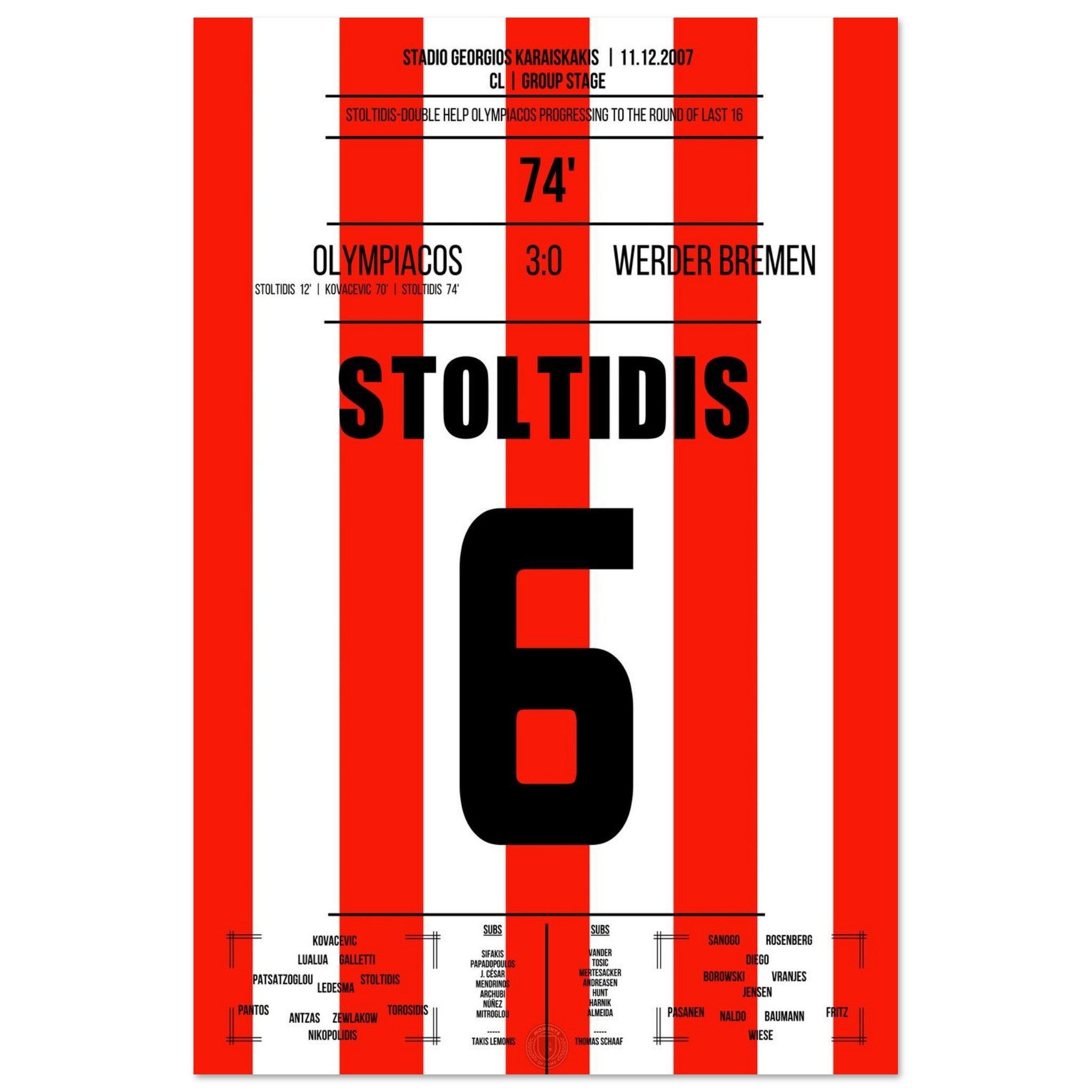 Stoltidis scores twice and shoots Olympiakos into the round of 16.