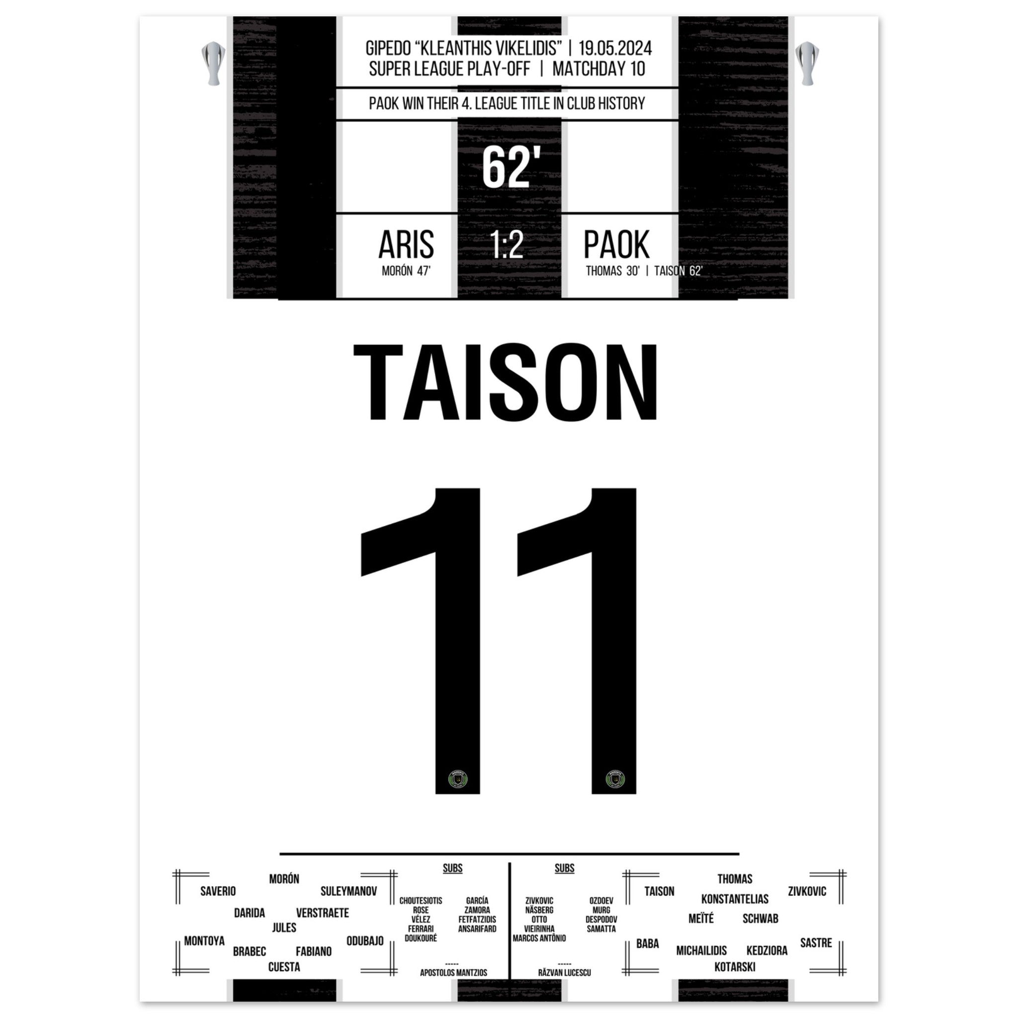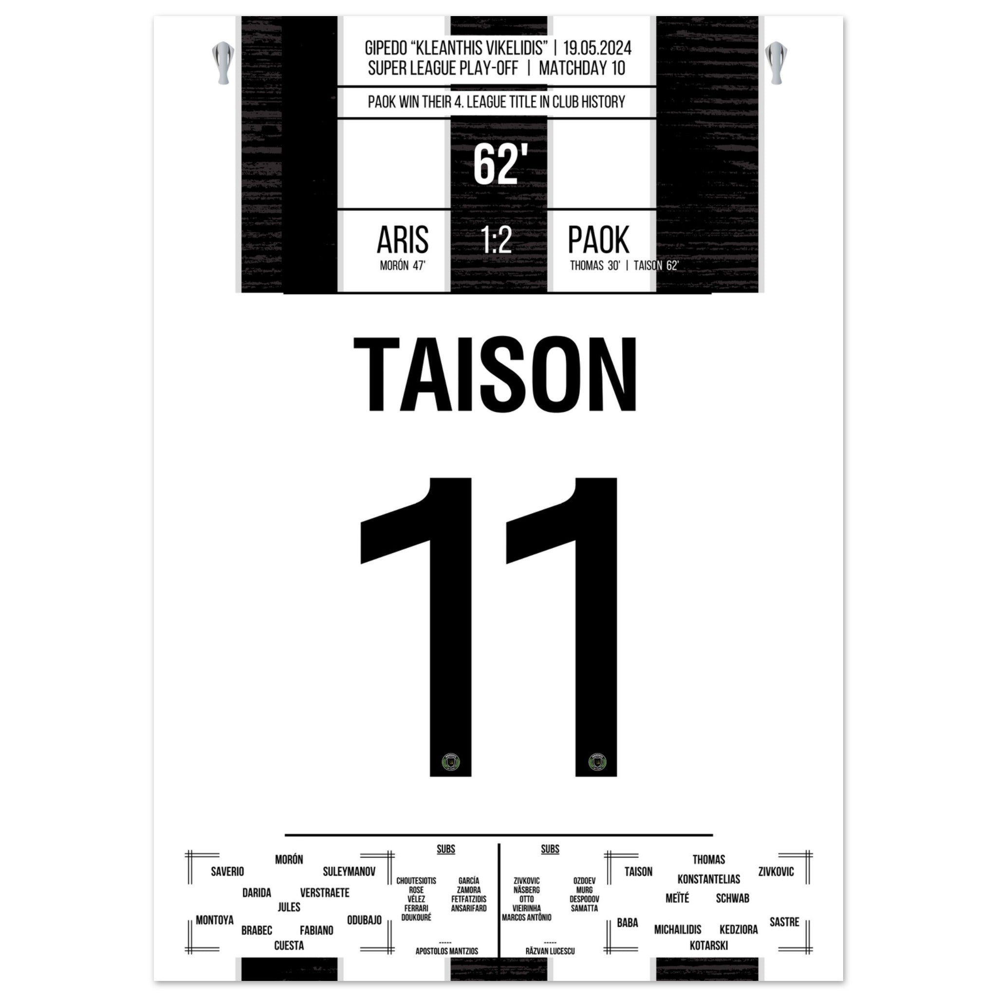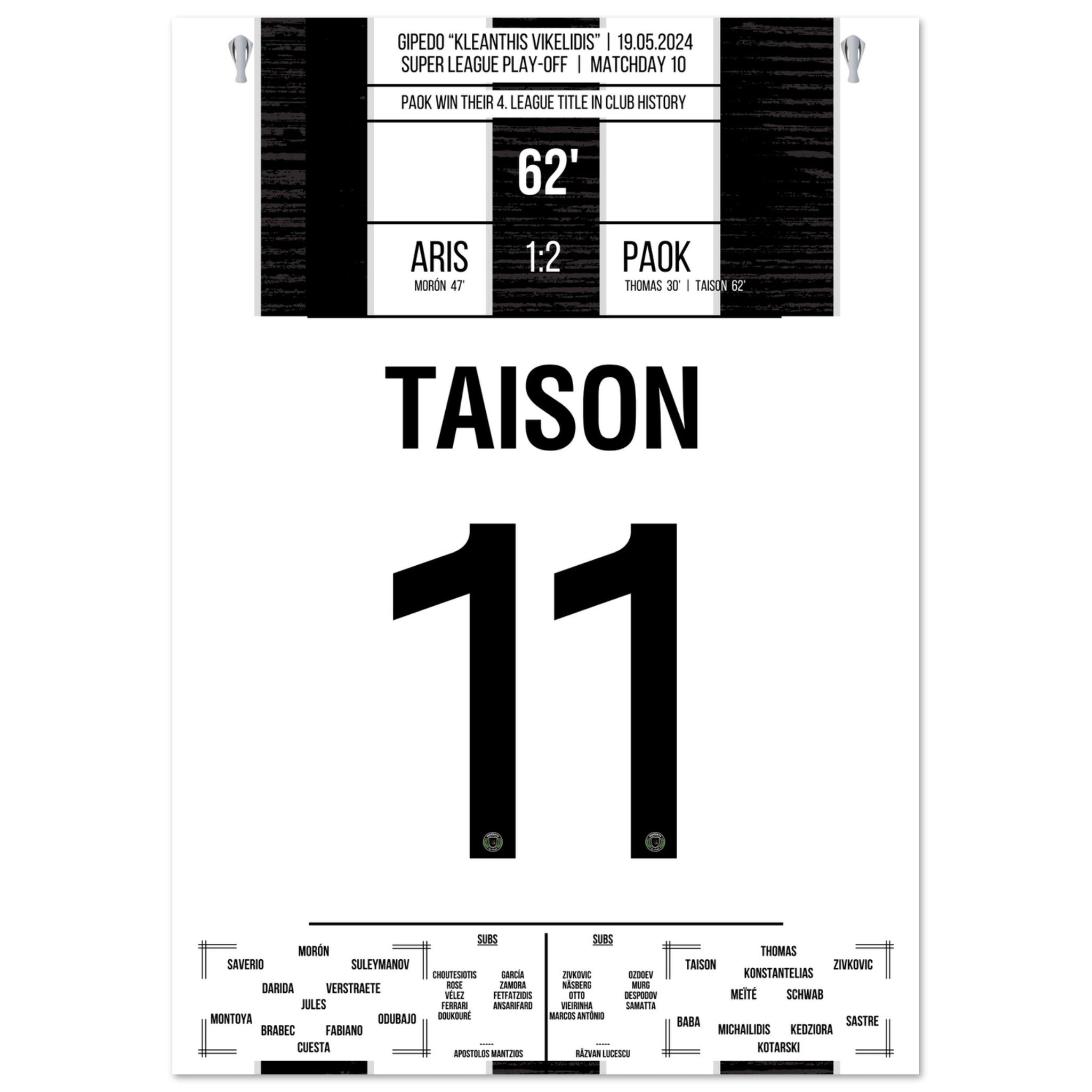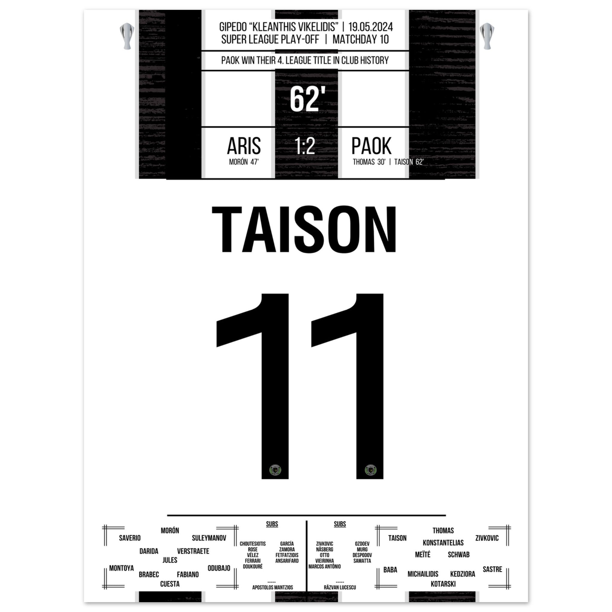 Taison scores PAOK's fourth championship in the club's history.
