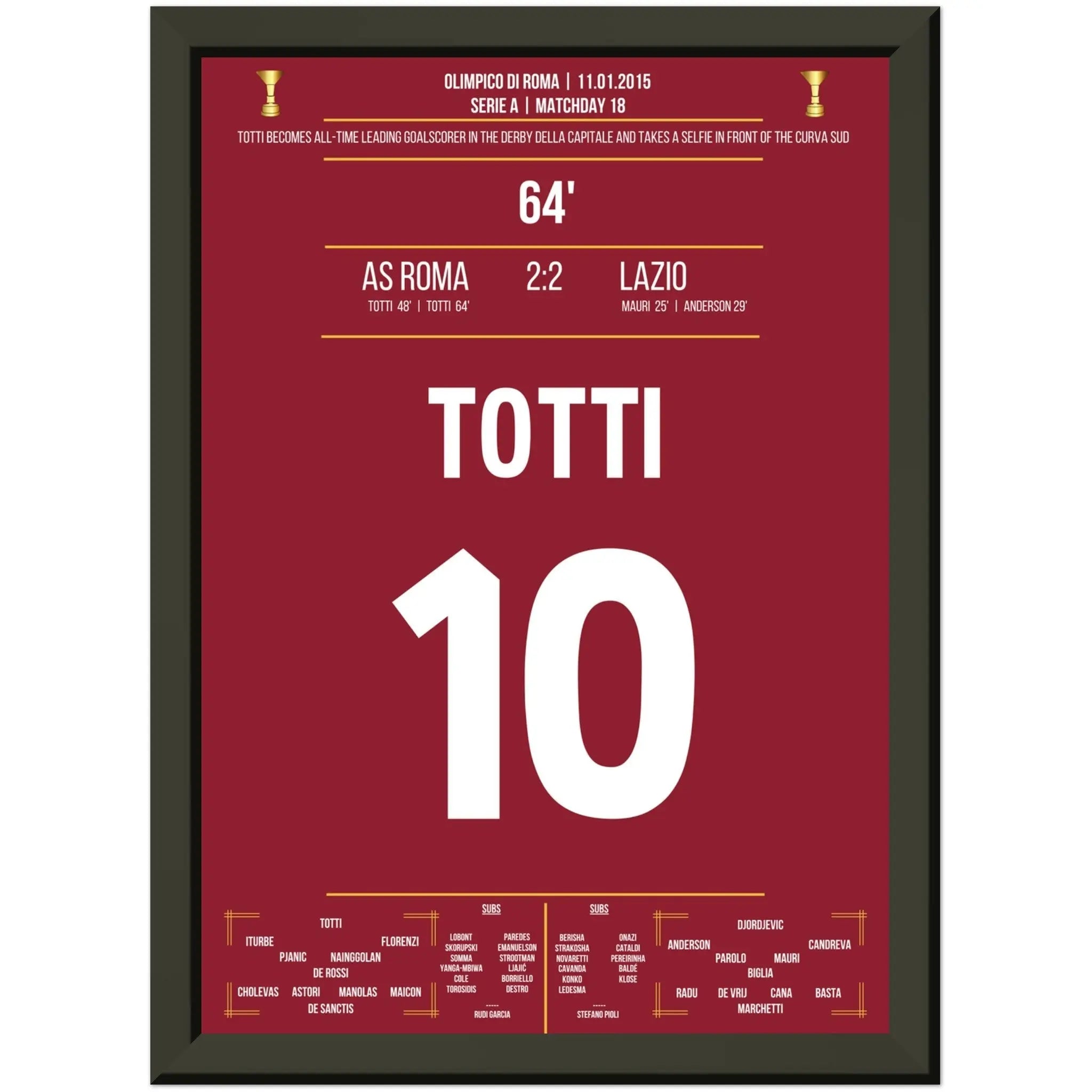 Totti's record goal in the Roman derby and his selfie celebration against Lazio in the Serie A match in 2015.
