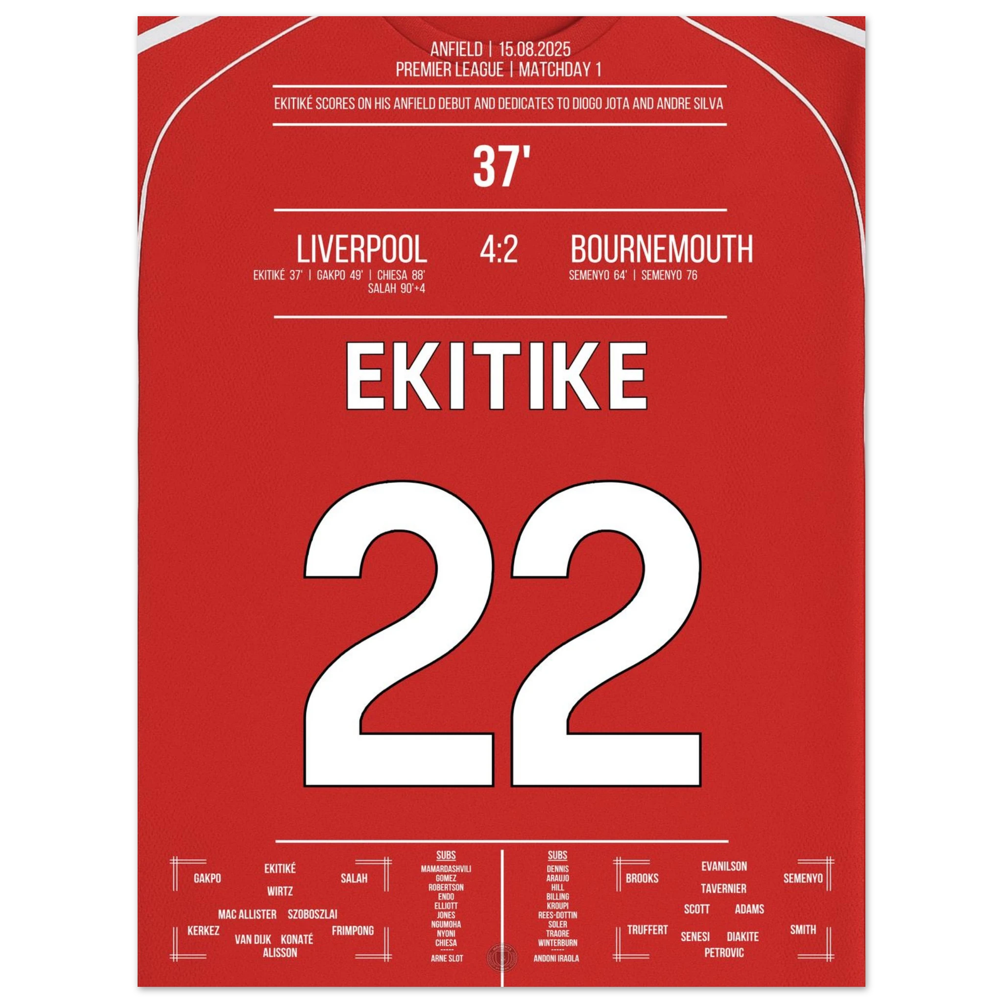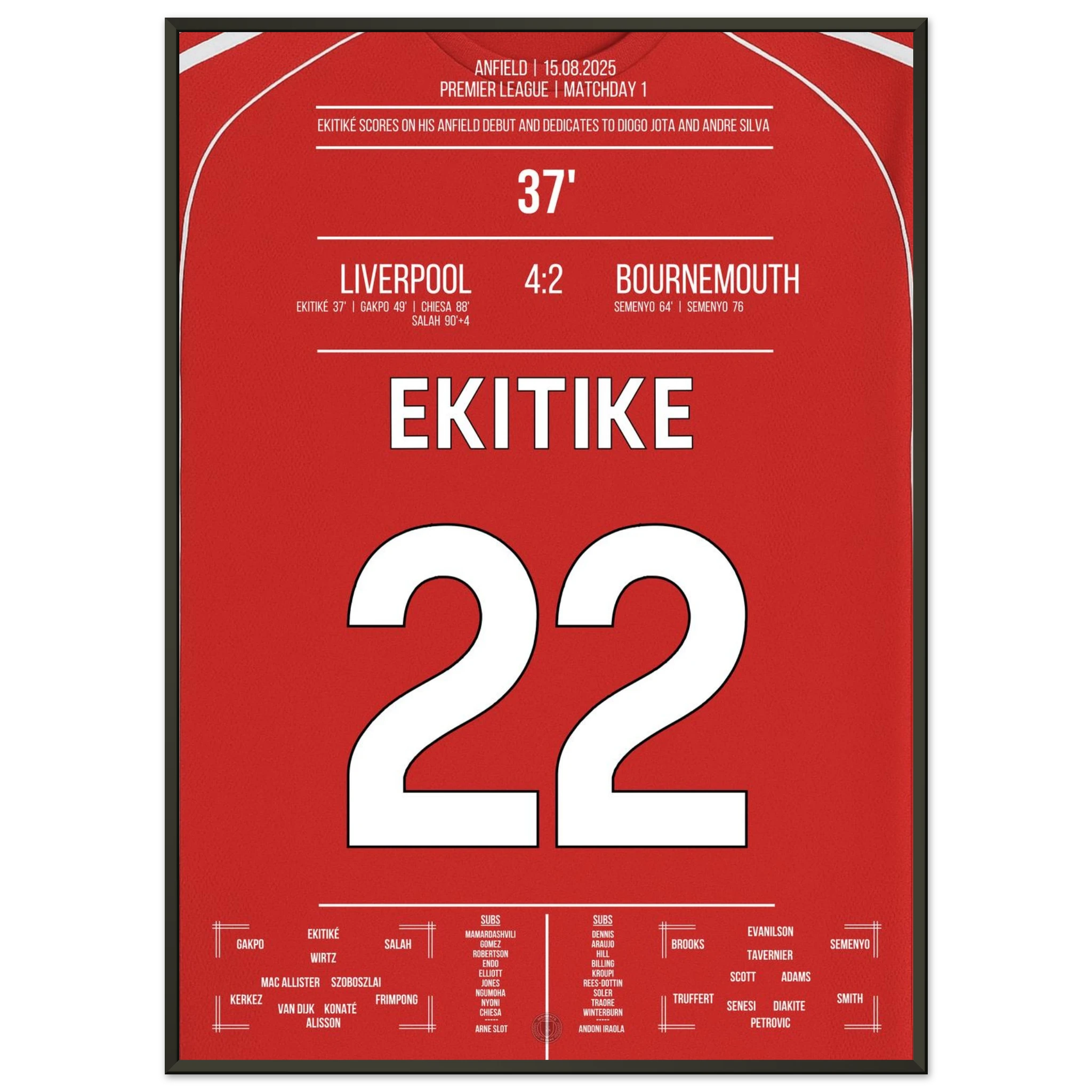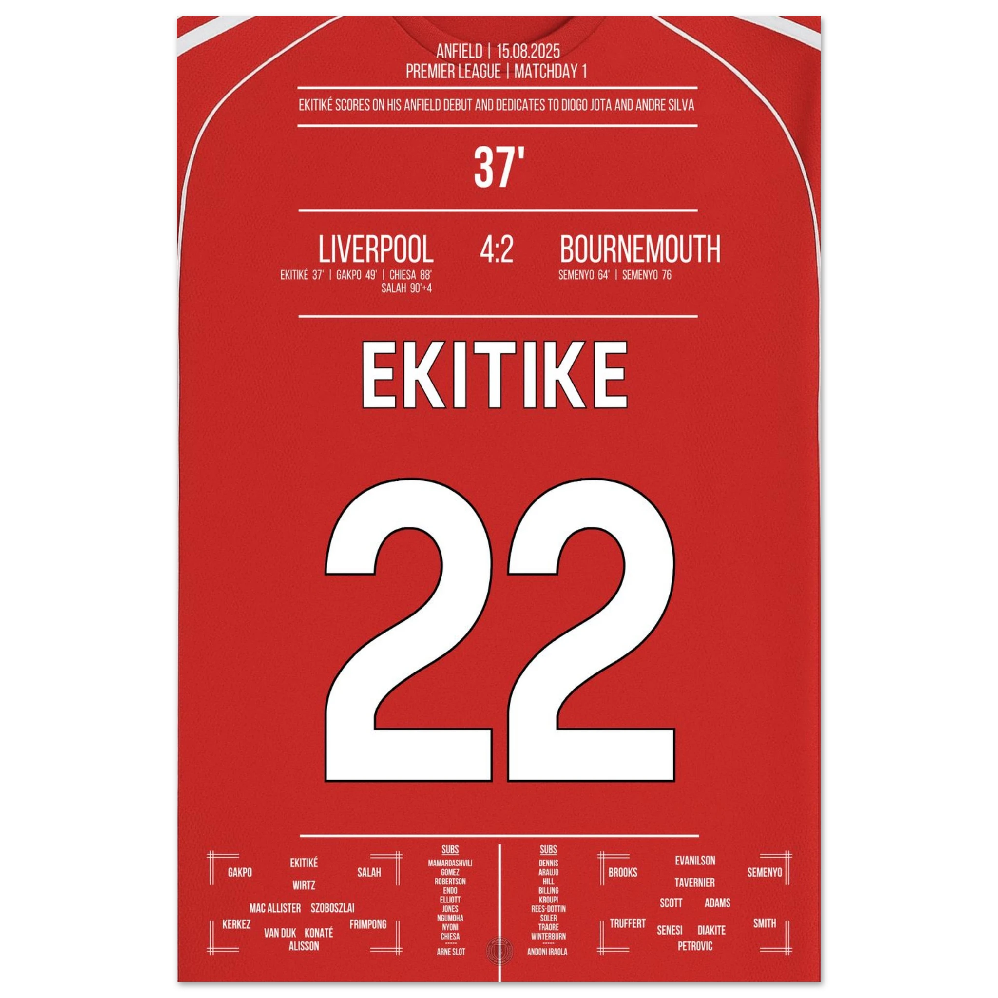 Am 15. August 2025 feiert Liverpool beim 4:2 gegen Bournemouth einen emotionalen und torreichen Auftakt in die Saison. Ekitike trifft bei seinem Debüt, Chiesa wird mit dem späten Siegtreffer zum Helden – und Salah setzt mit dem 4:2 den glanzvollen Schlusspunkt in Anfield. Ein würdiger Sieg in Gedenken an Diogo Jota und seinen Bruder Andre Silva.