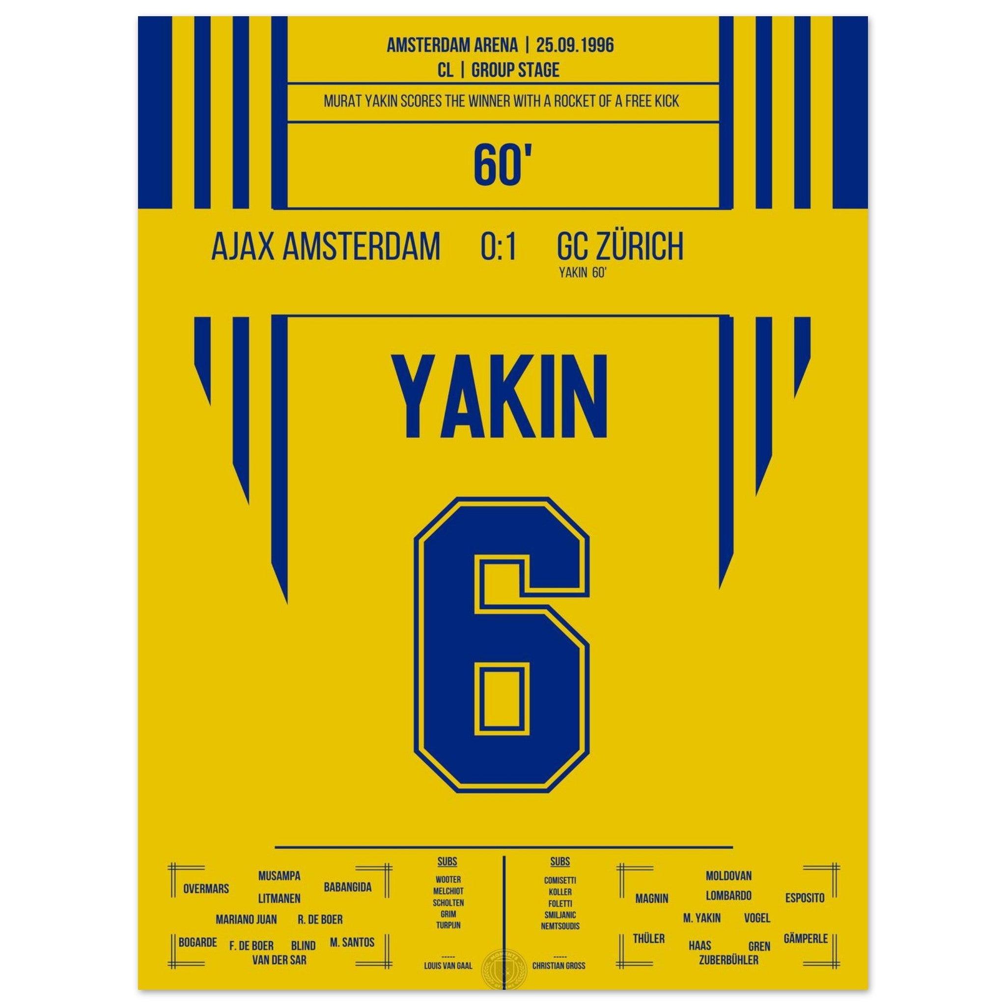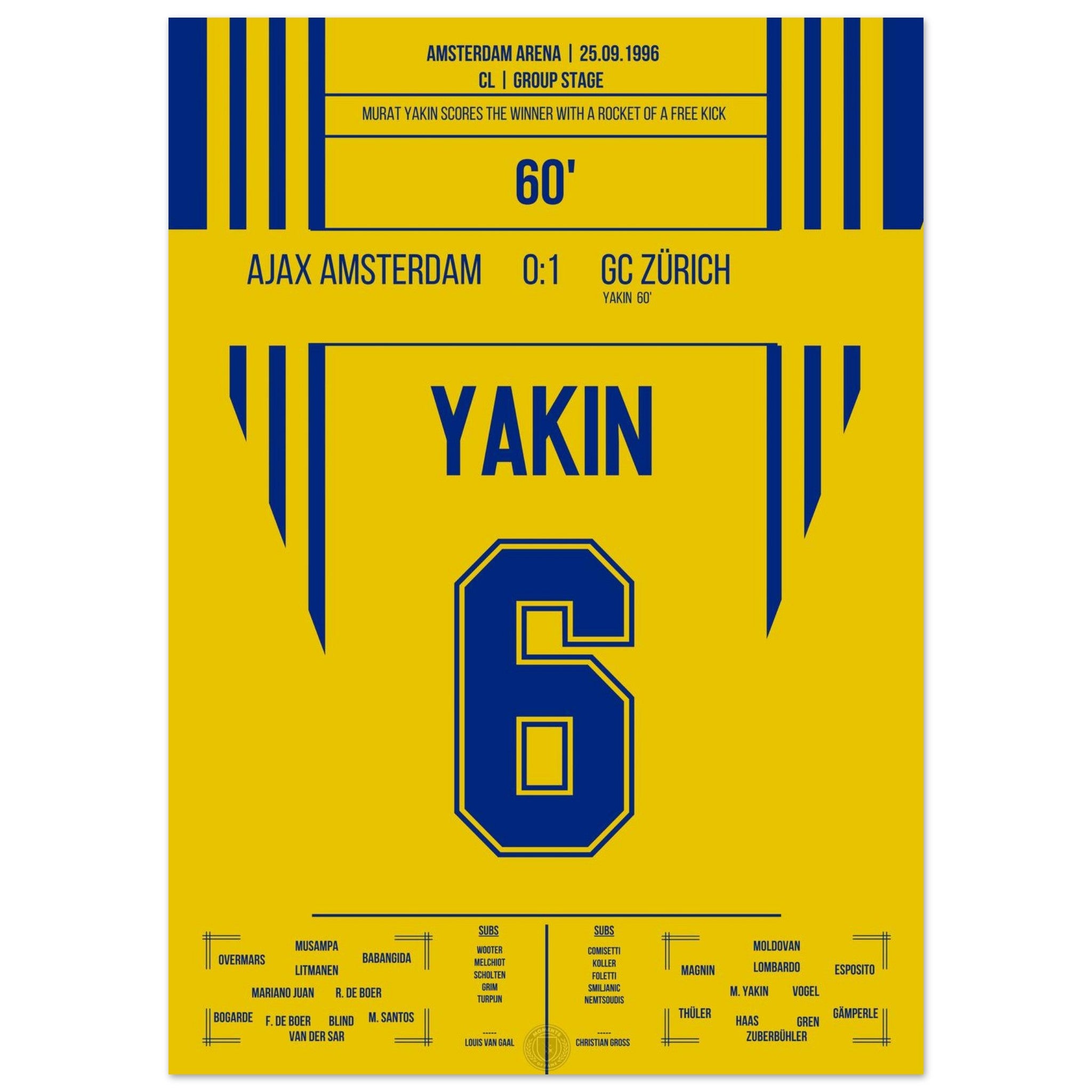 Yakin's free-kick rocket to victory at Ajax 1996