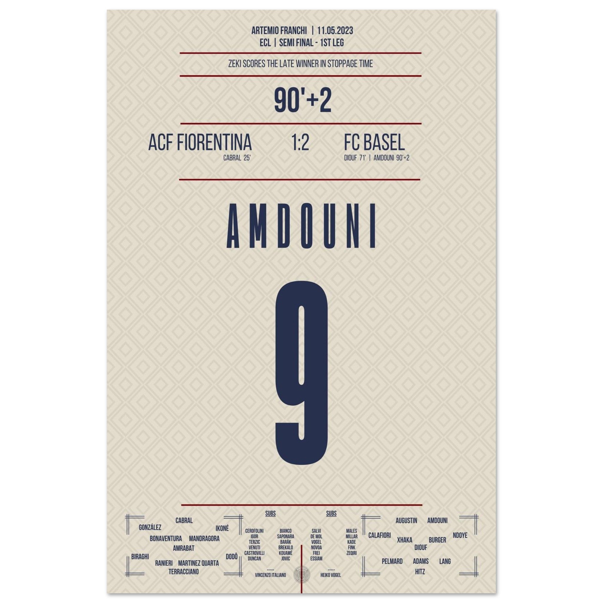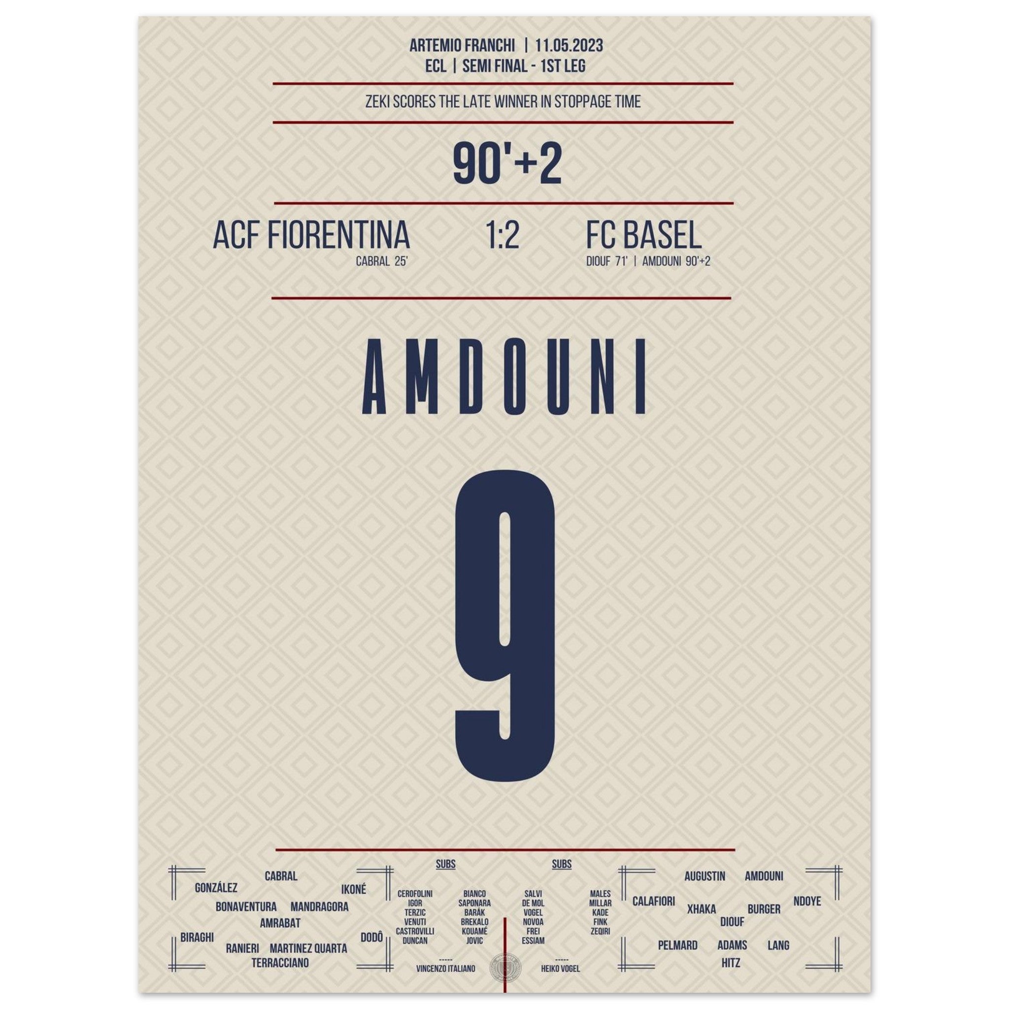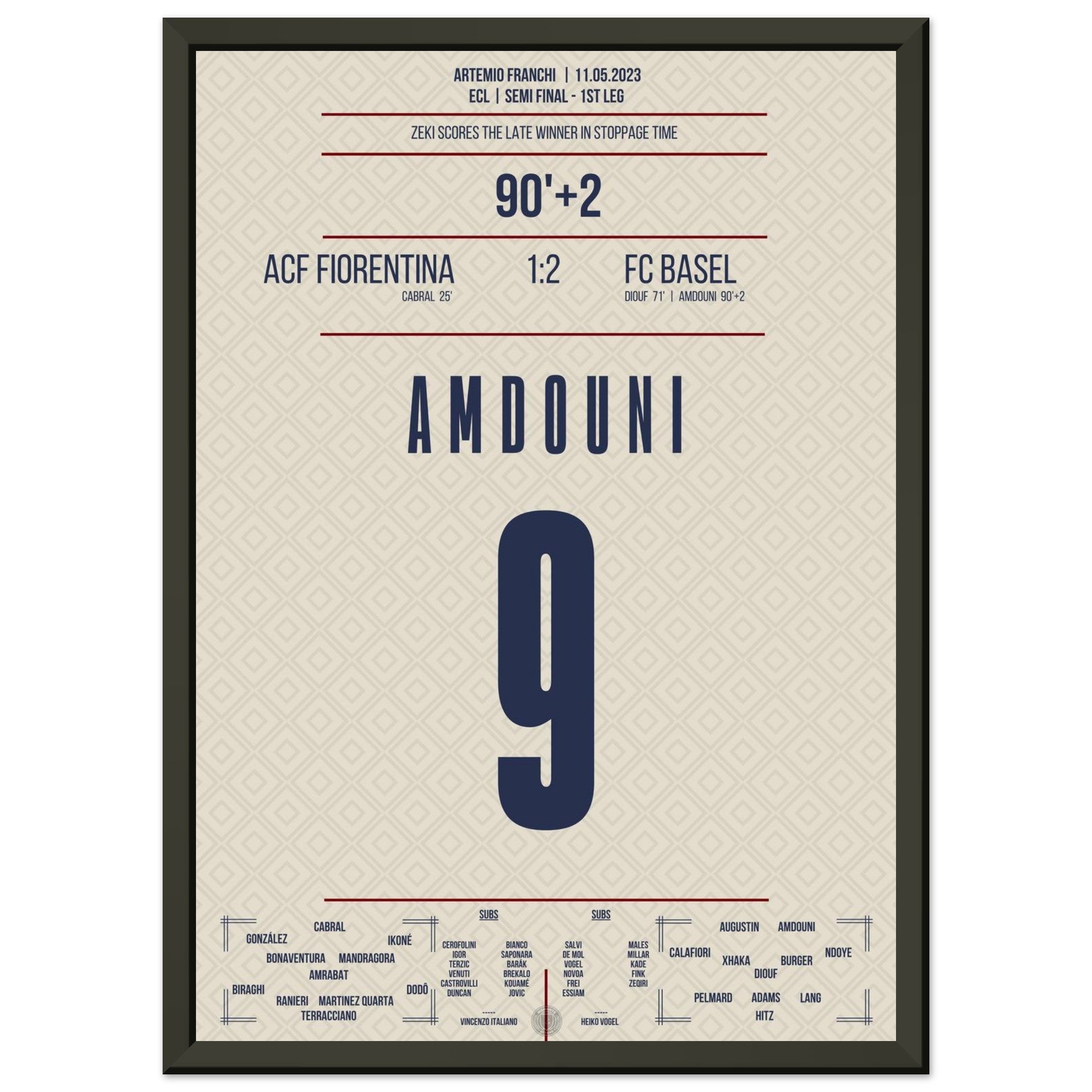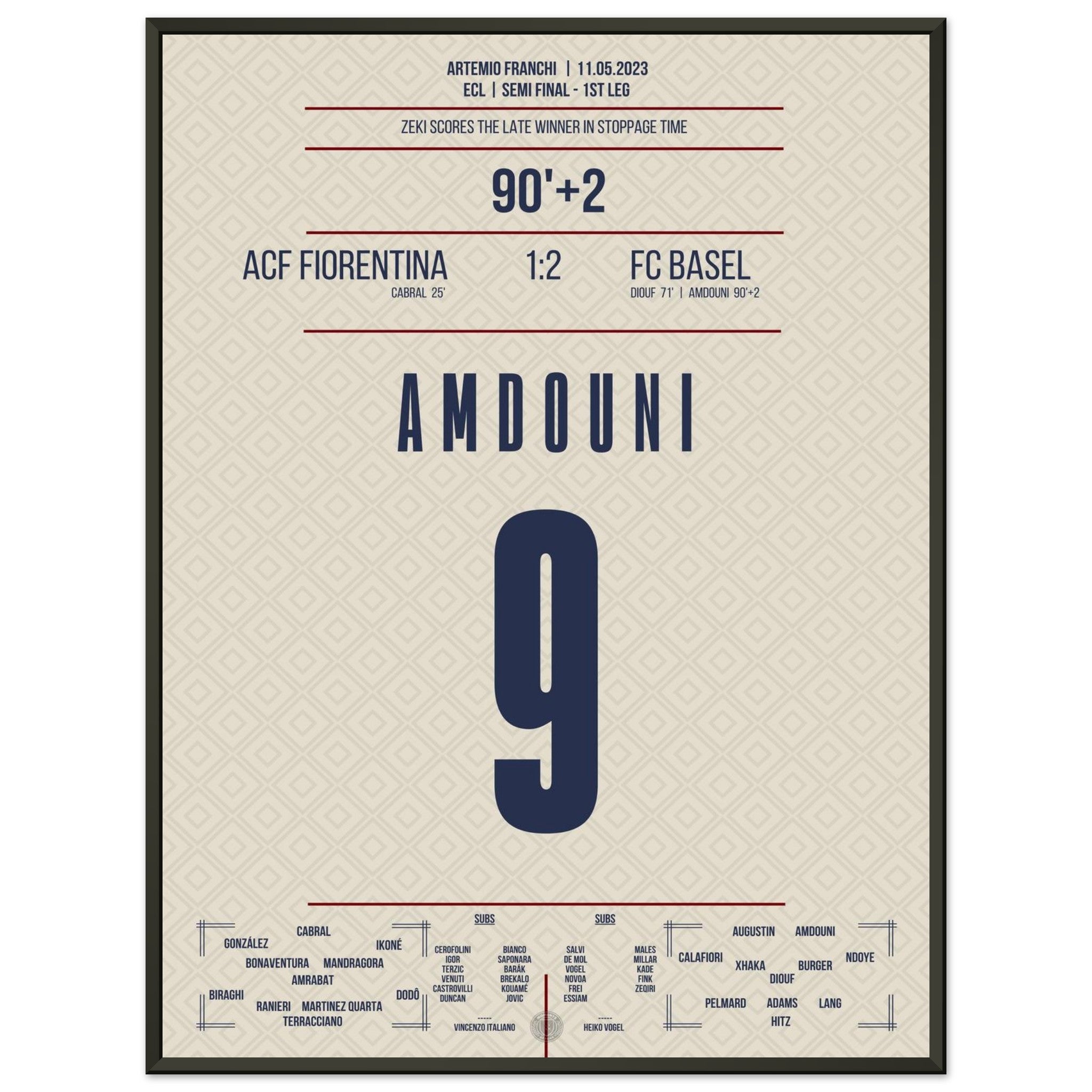 Zeki Amdouni scores in stoppage time to secure victory in the semifinal first leg against Fiorentina.