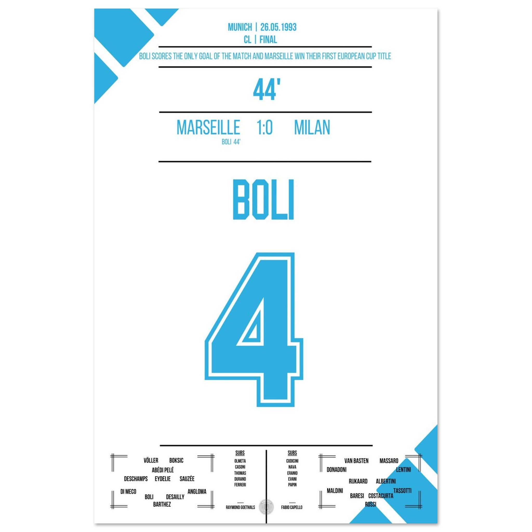 👉 Unser Poster erinnert an Bolis goldenen Kopfball und den größten Triumph Marseilles – für alle, die Fußballgeschichte fühlen wollen.