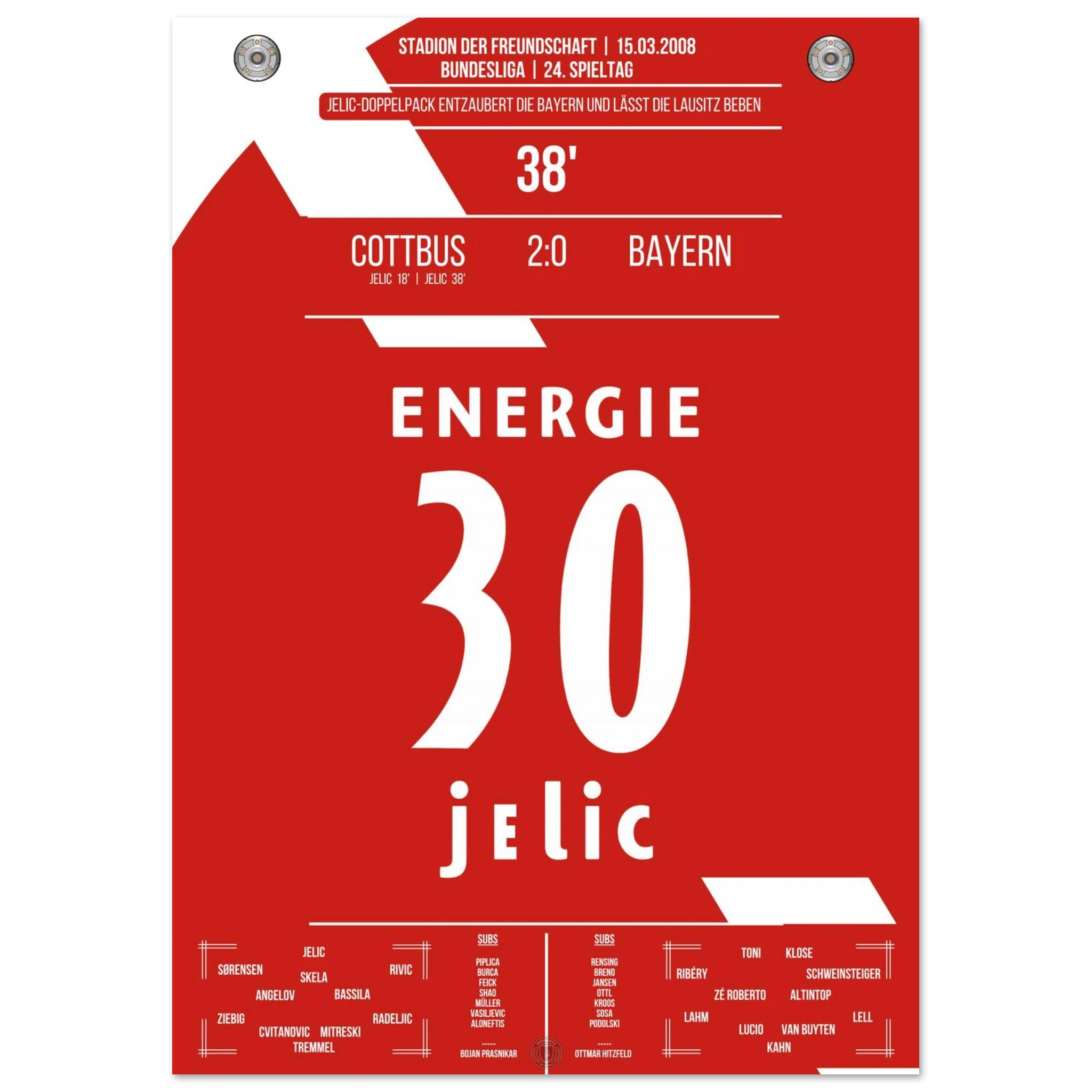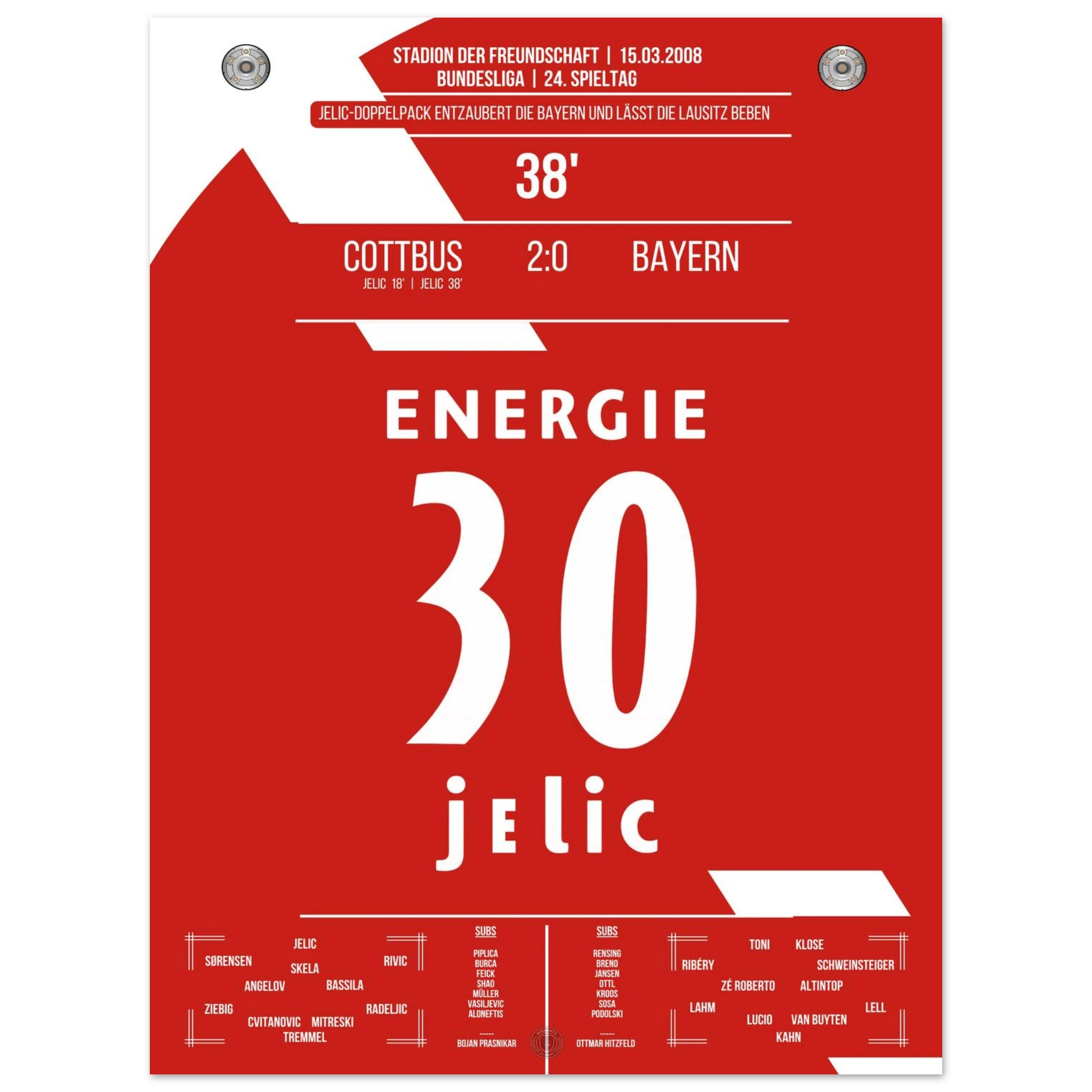 15. März 2008 – Cottbus vs. Bayern 2:0 – Jelic schockt den Rekordmeister: