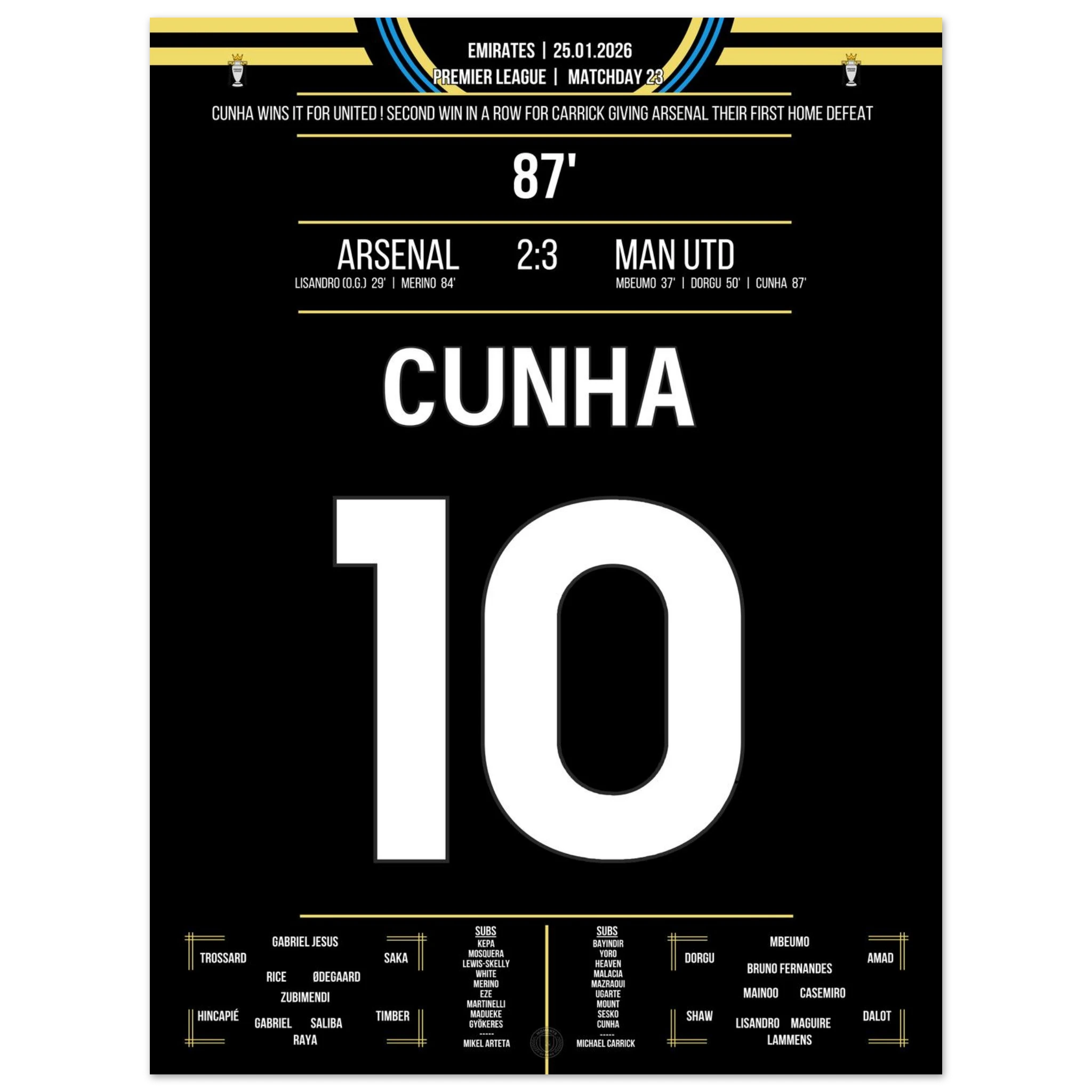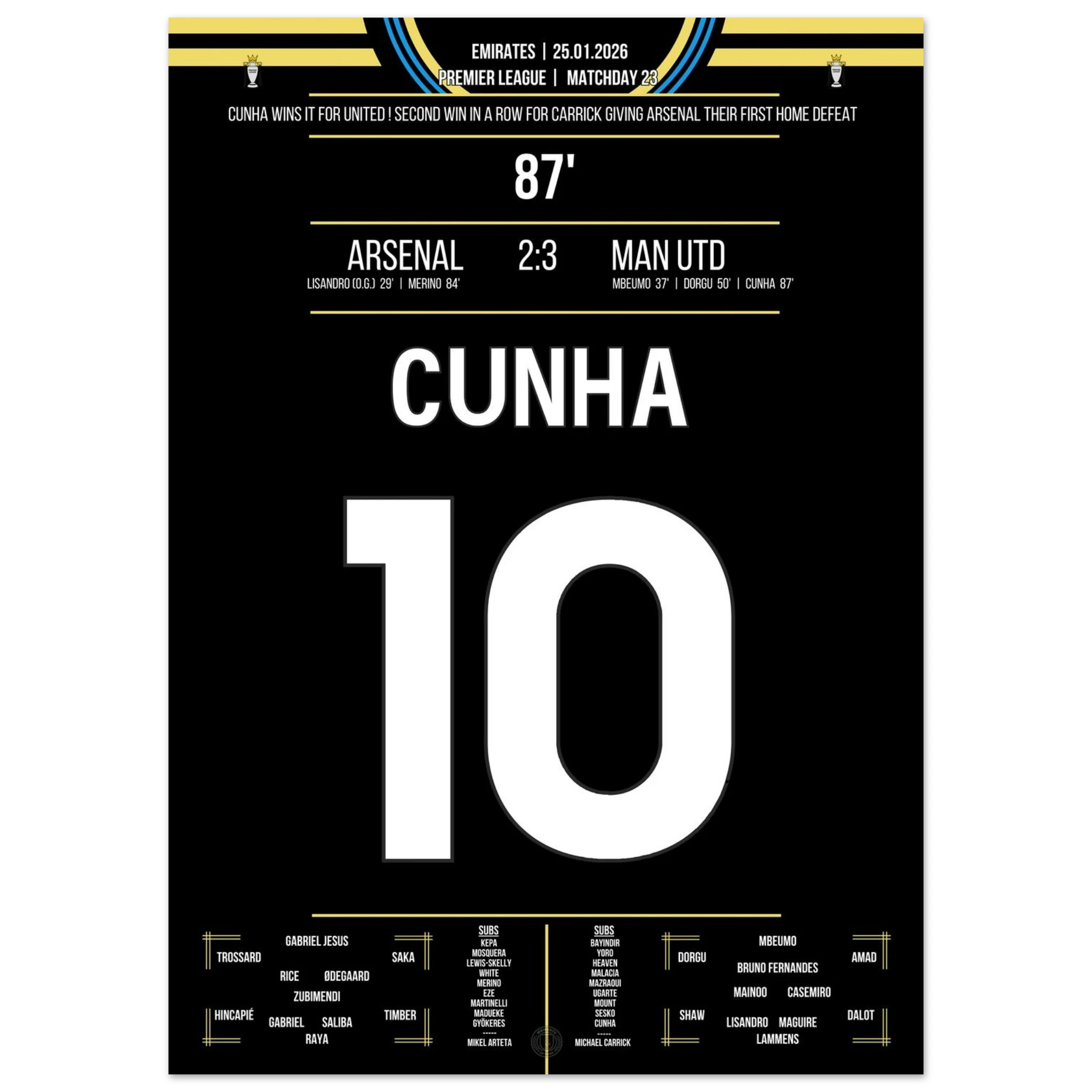 25. Januar 2026 – Arsenal vs. Man United 2:3 – Spätes Drama im Emirates! ⚽🔴