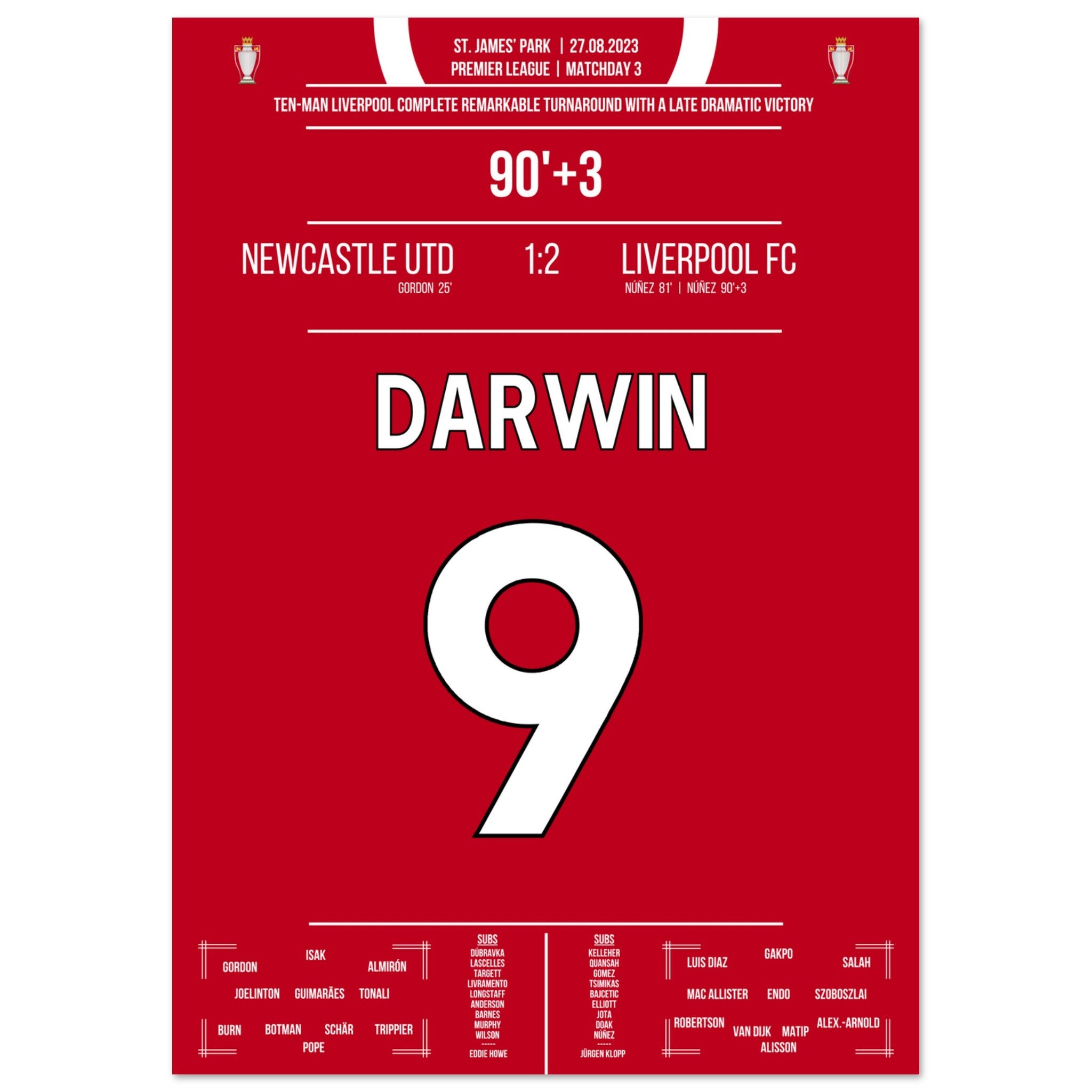 Darwin Nunez' später Doppelpack zum Sieg bei Newcastle 2023