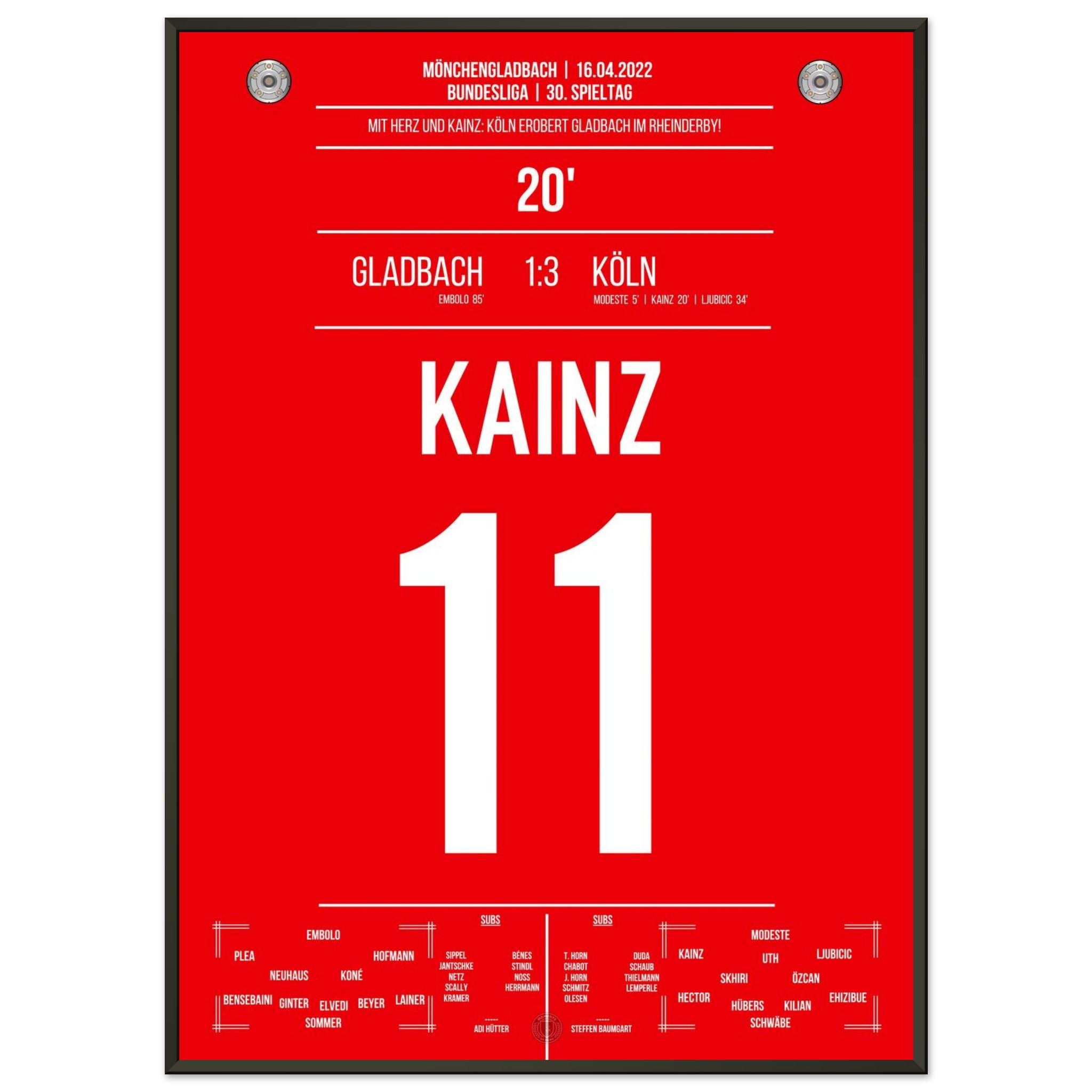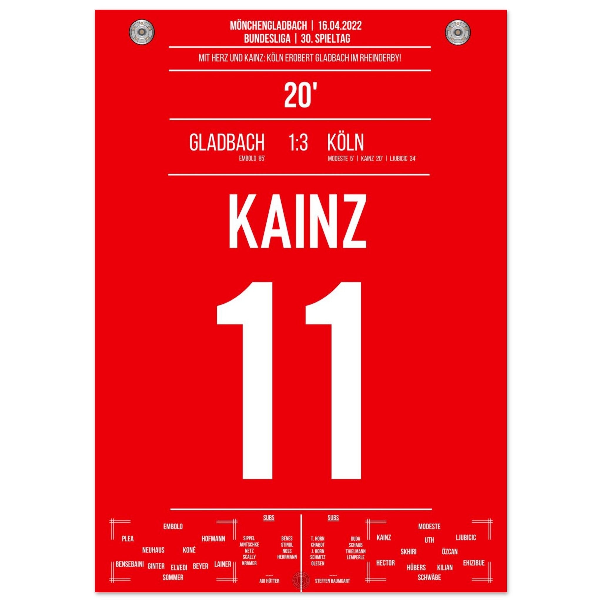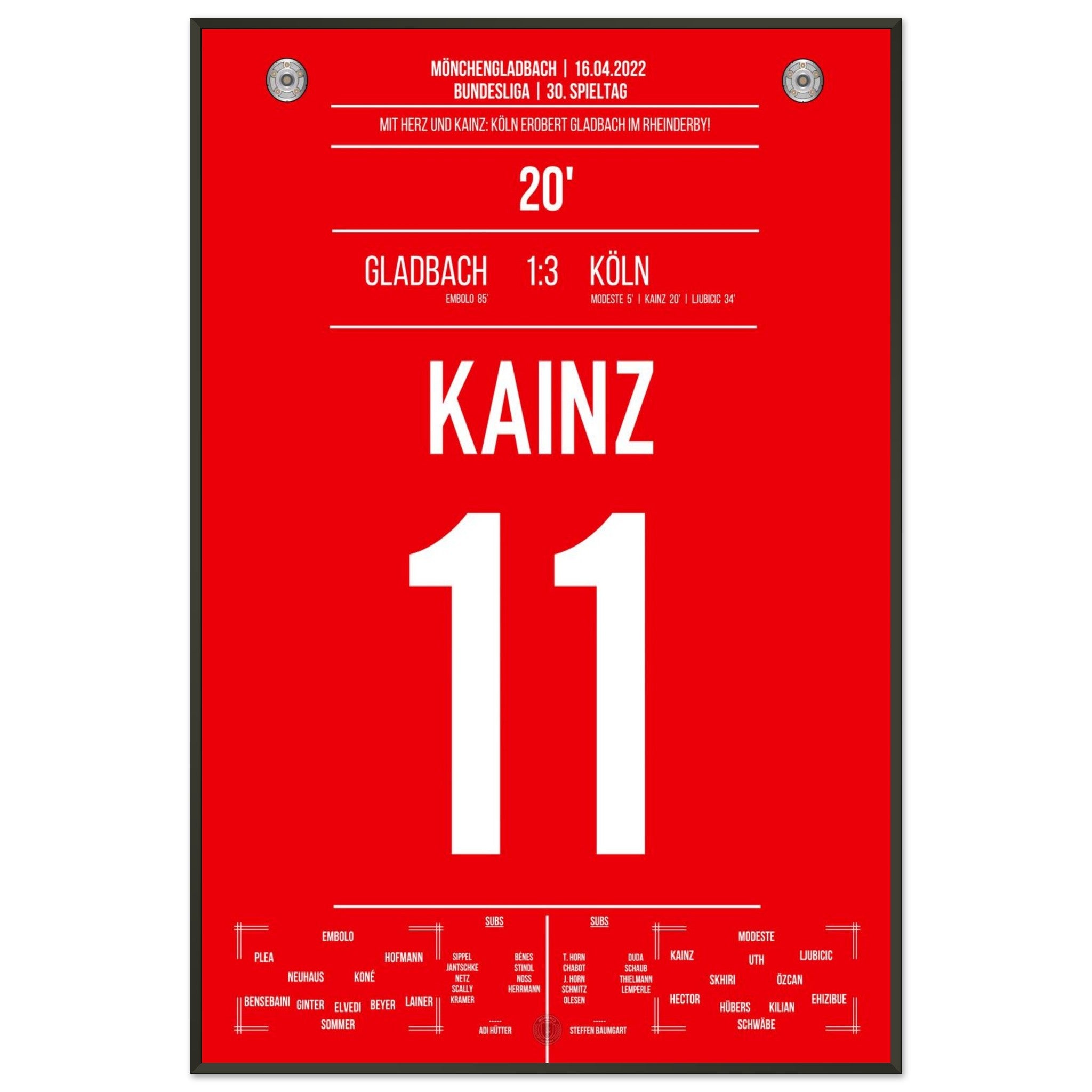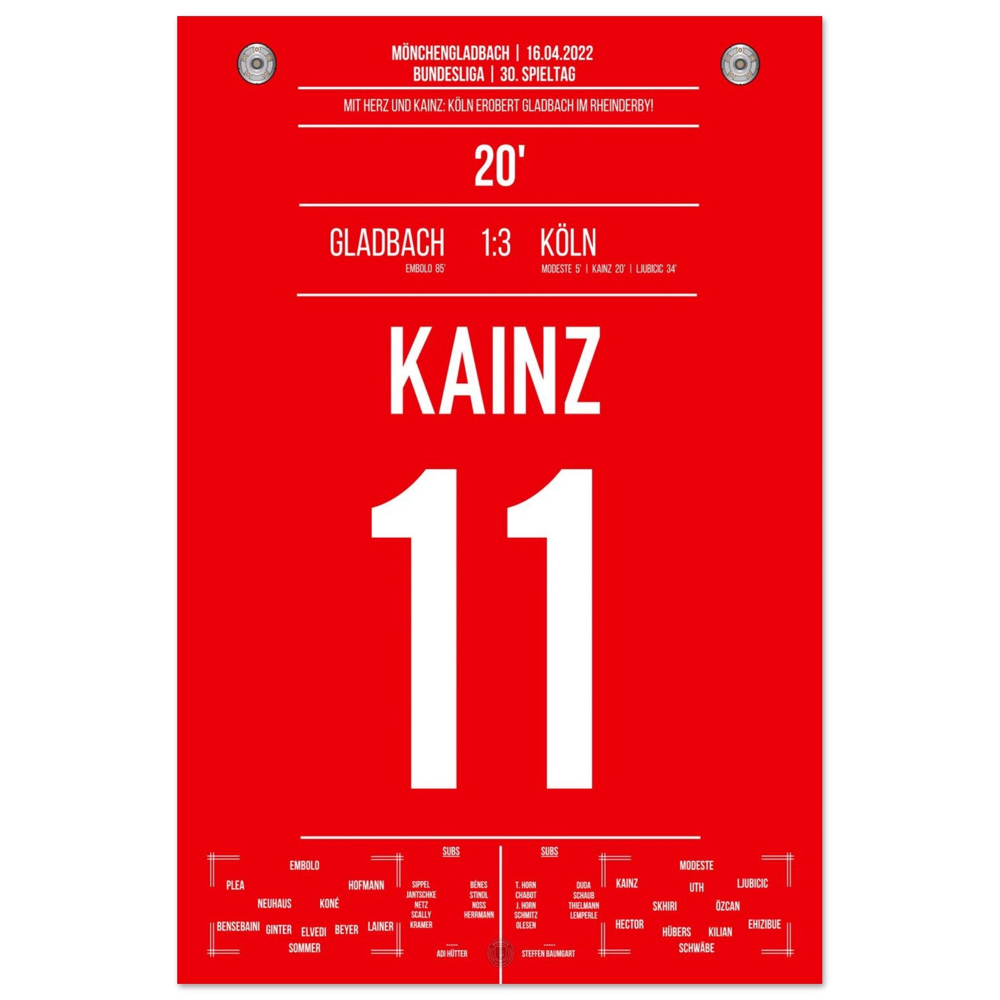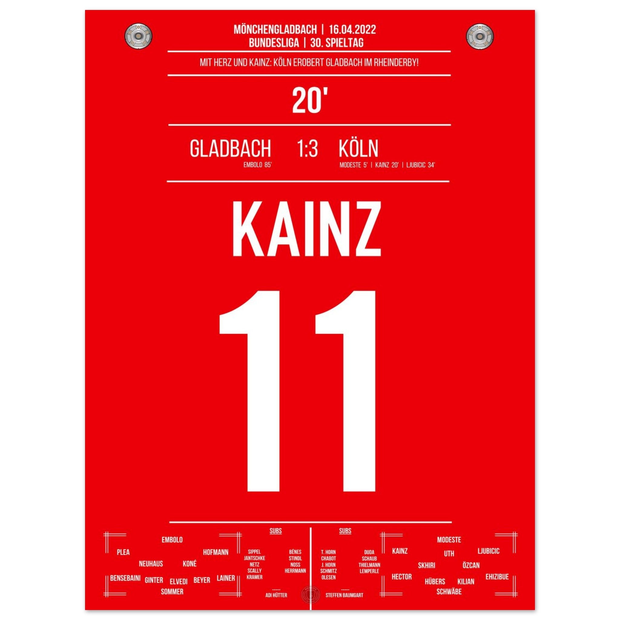 16. April 2022 – Mönchengladbach vs. Köln 1:3: Der FC triumphiert im Derby mit einer leidenschaftlichen Leistung und drei Toren – ein Auswärtssieg, der den Gästeblock zum Beben bringt. Emotion, Rivalität und pure Ekstase. Unser Poster verewigt diesen denkwürdigen Derbysieg in Rot-Weiß.