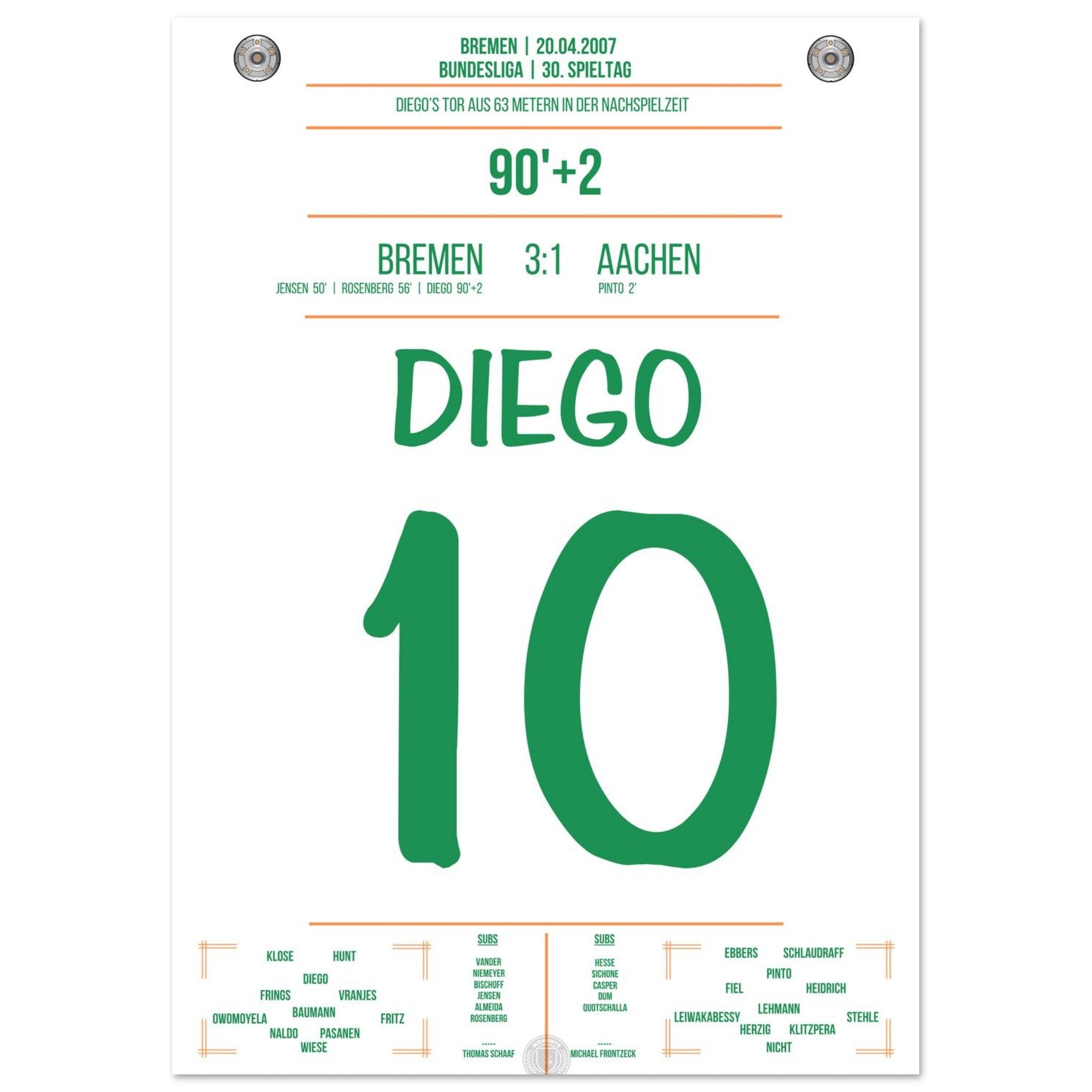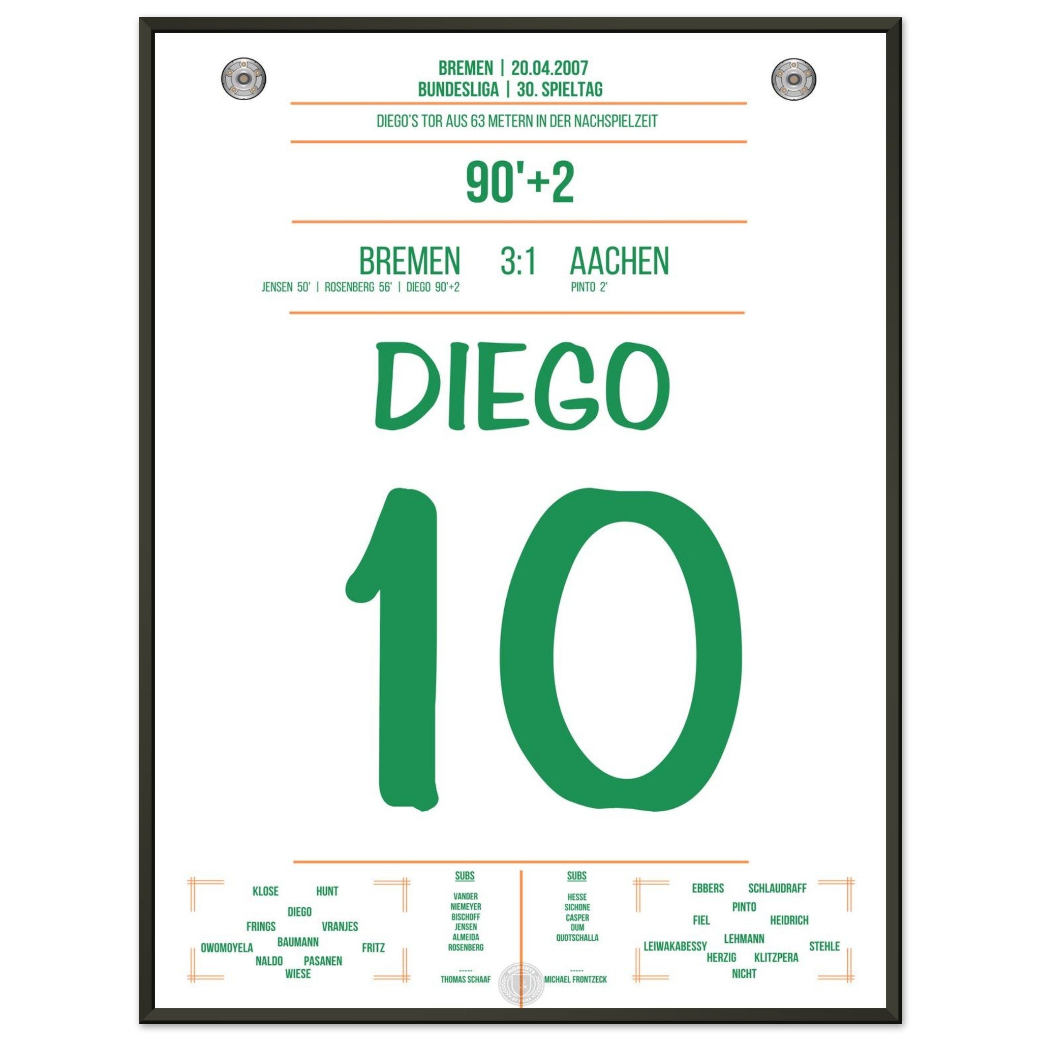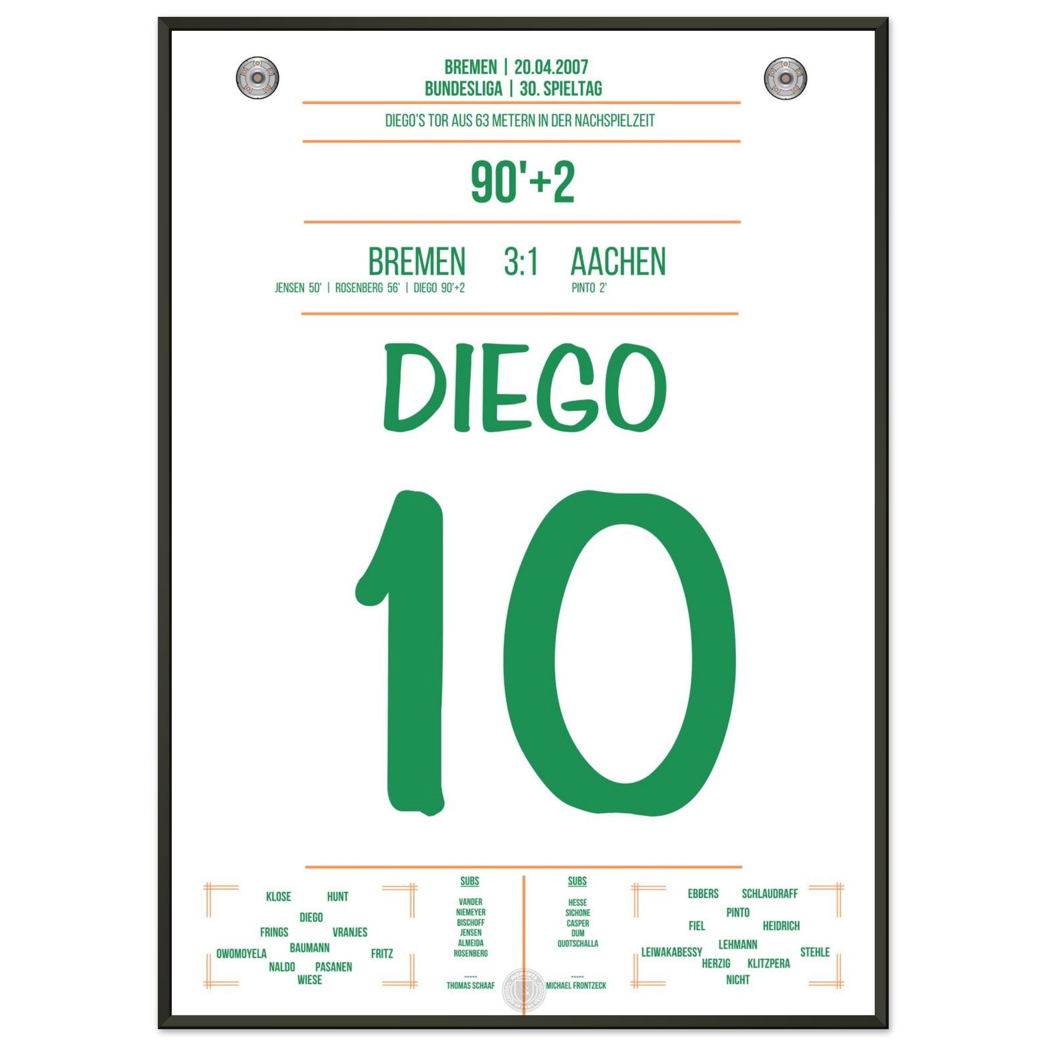 Diego erzielt in der 90.+2. Minute ein spektakuläres Tor aus der eigenen Hälfte. Ein Geniestreich, der für Staunen sorgt und als eines der schönsten Tore der Bundesliga-Geschichte in Erinnerung bleibt!