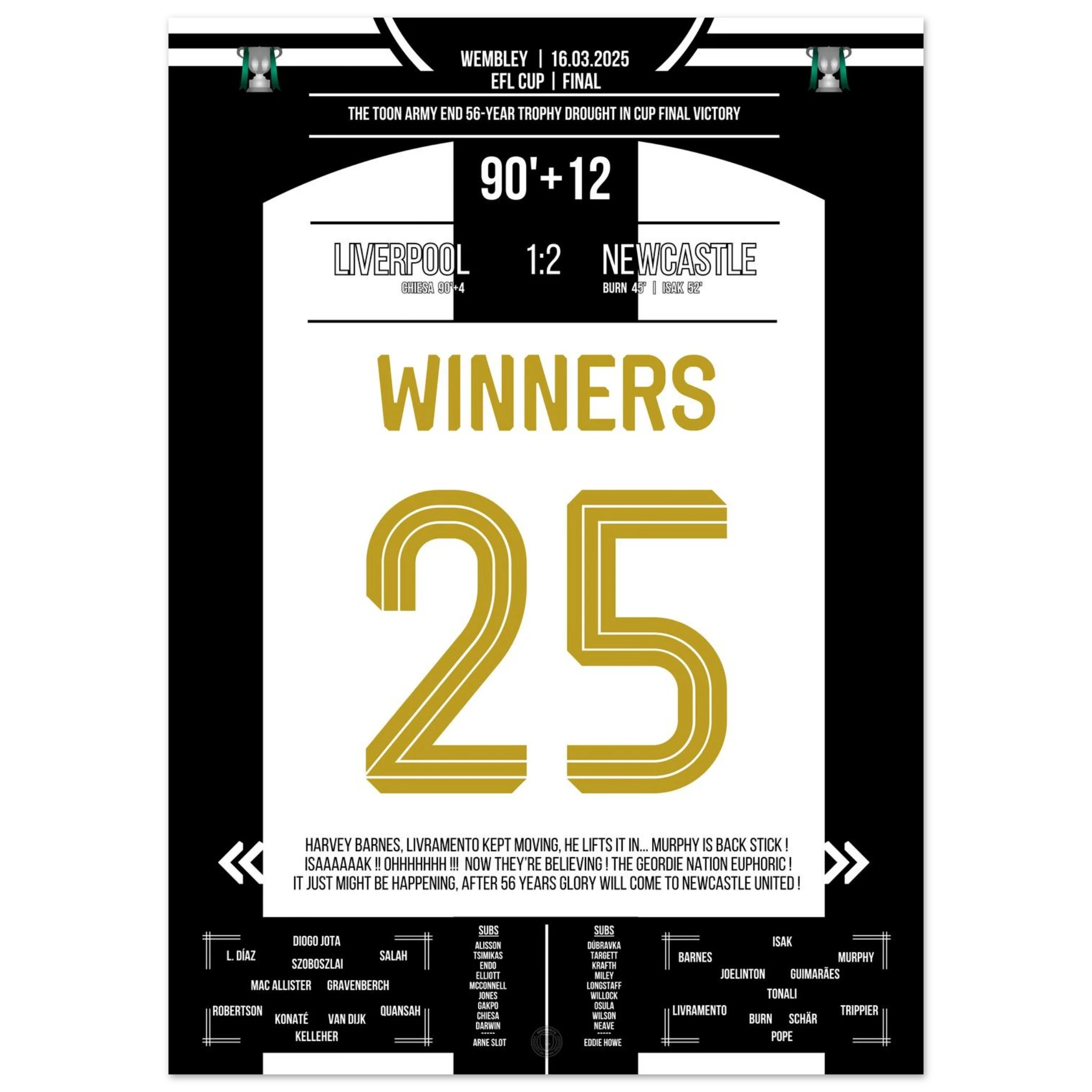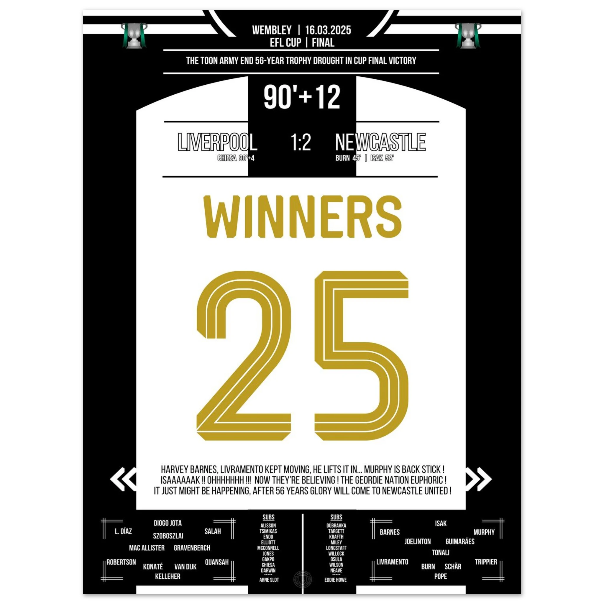 Hier ist unser Premium-Druck dieses unvergesslichen Fußballmoments für das ultimative Fan-Erlebnis. Auf schwerem, seidenmattem Papier gedruckt, glänzt das Kunstwerk mit intensiven Farben und subtilen Details.