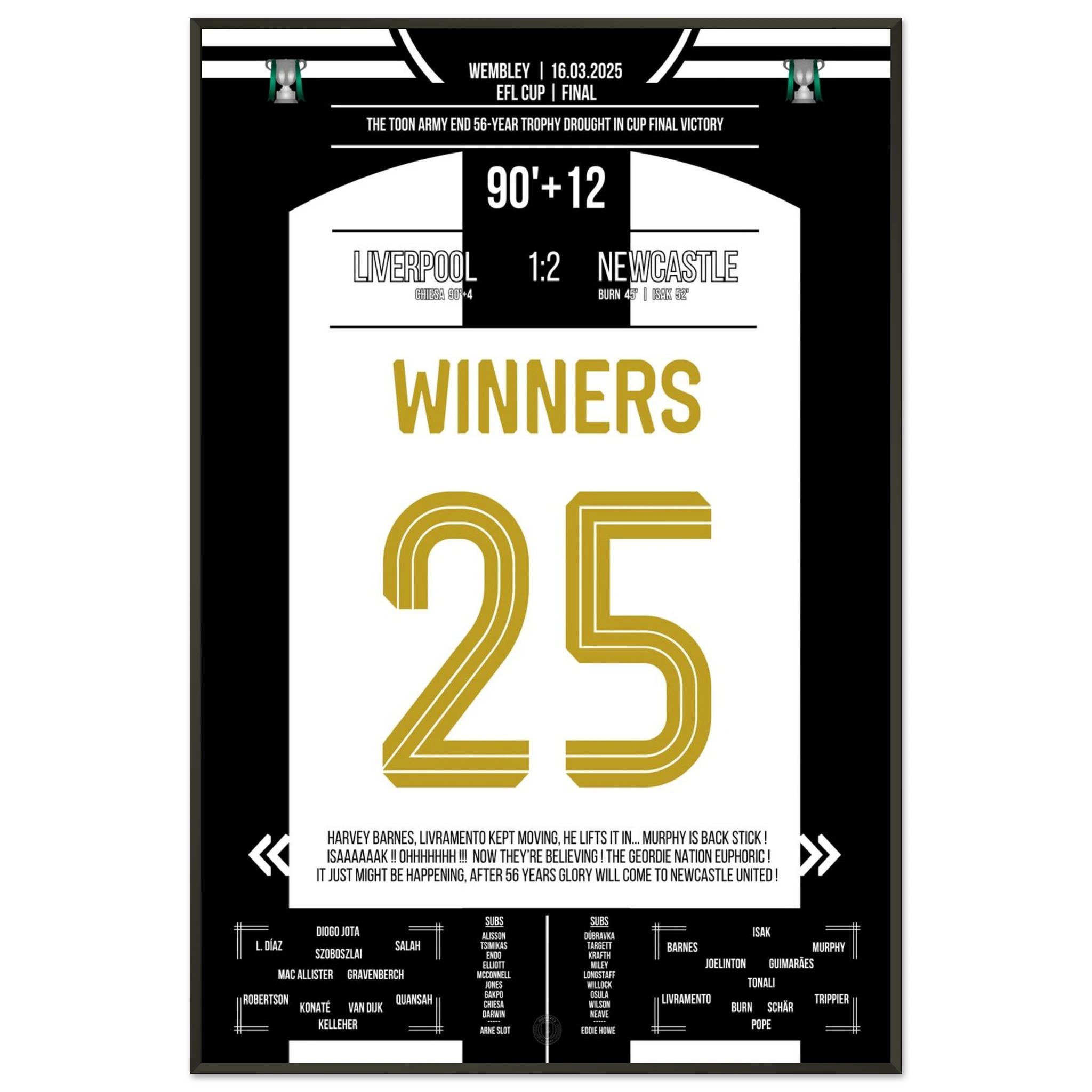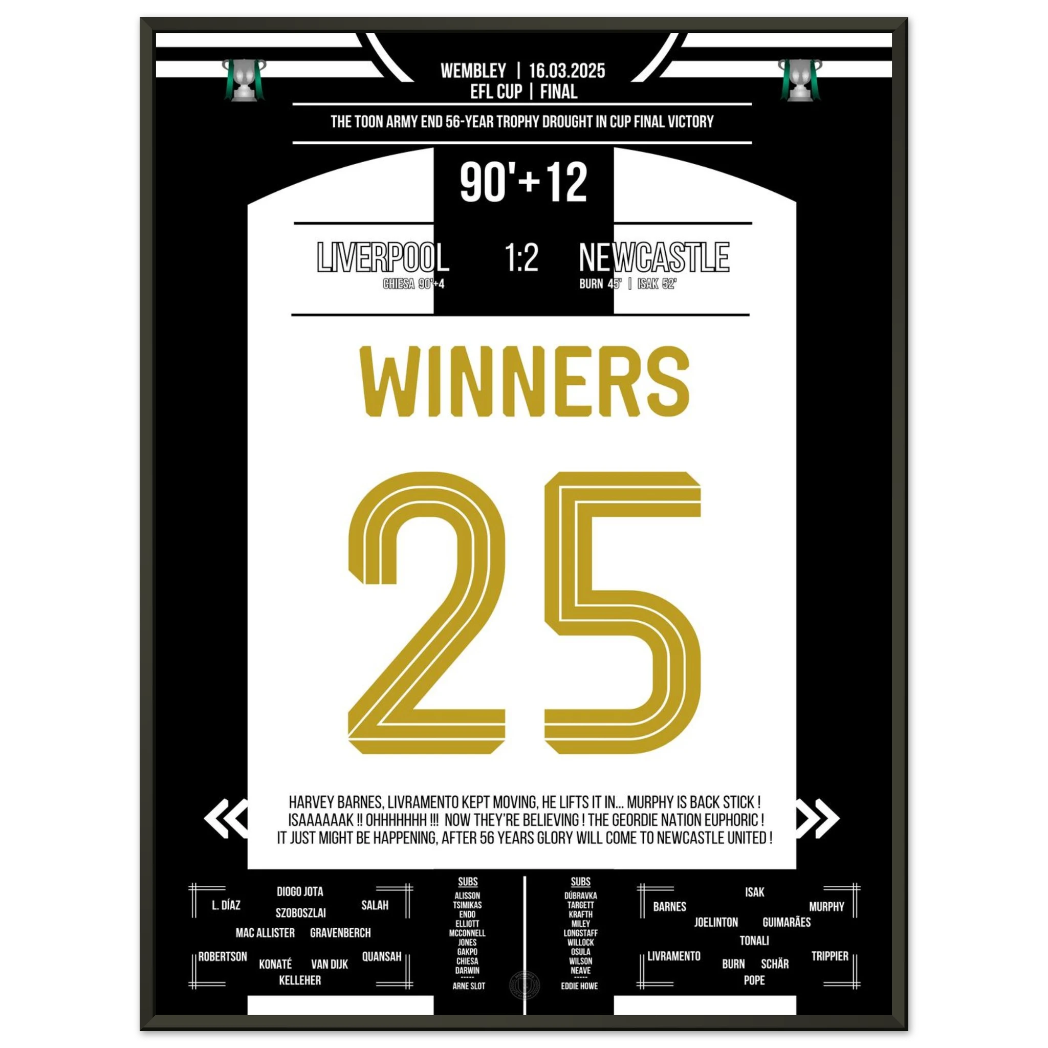 Jedes Poster und jeder Rahmen wird sicher verpackt versandt, sodass sie in einwandfreiem Zustand ankommen. Perfekt für die Sammlung jedes Fußballfans oder als ideales Geschenk!