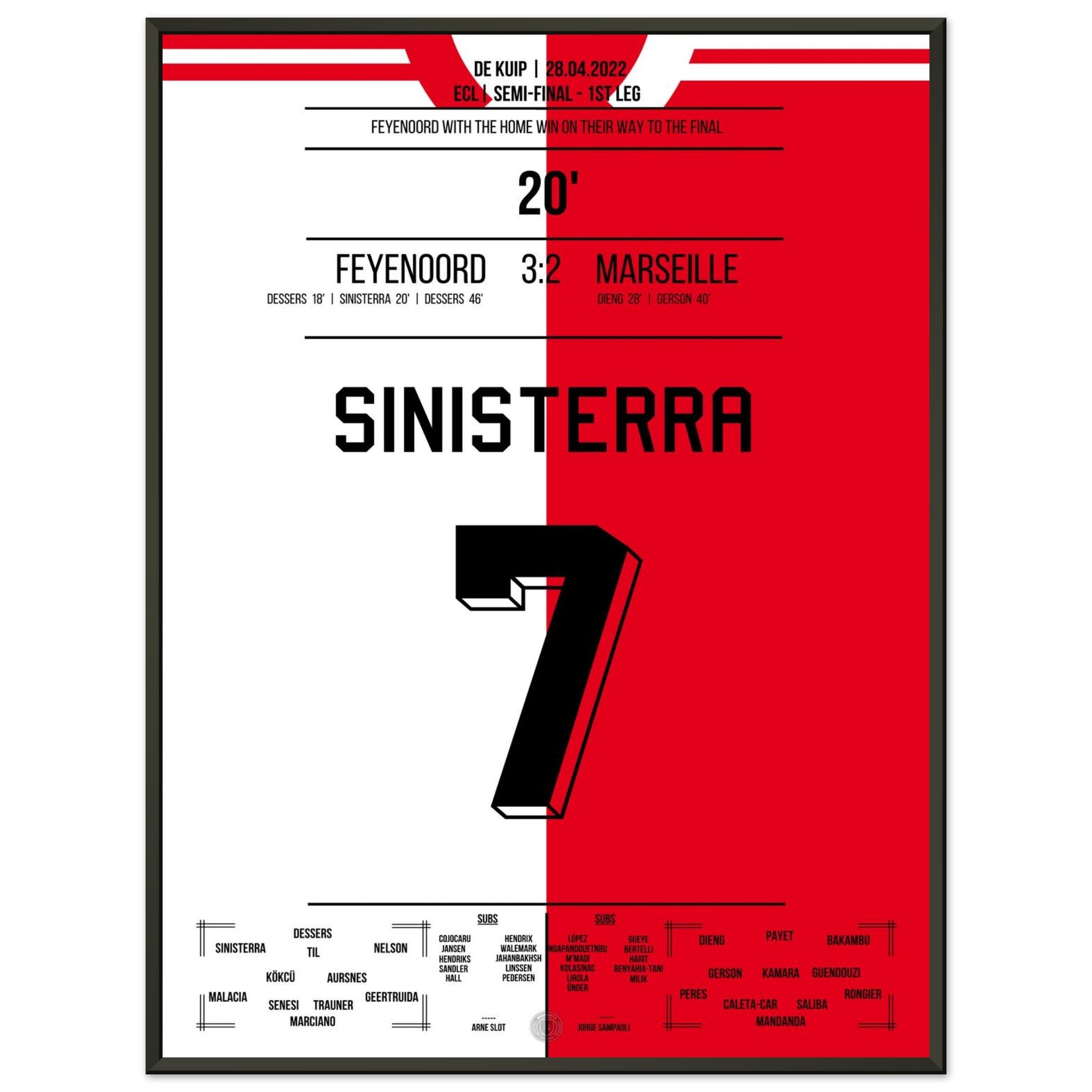 Sie können sicher sein, dass jedes Poster und jeder Rahmen in einer robusten Verpackung versandt wird, damit es in tadellosem Zustand ankommt. Es ist die perfekte Ergänzung für die Sammlung eines jeden Fußballfans oder das perfekte Geschenk für den eingefleischten Fußball-Fan ihres Freundes- oder Familienkreises.