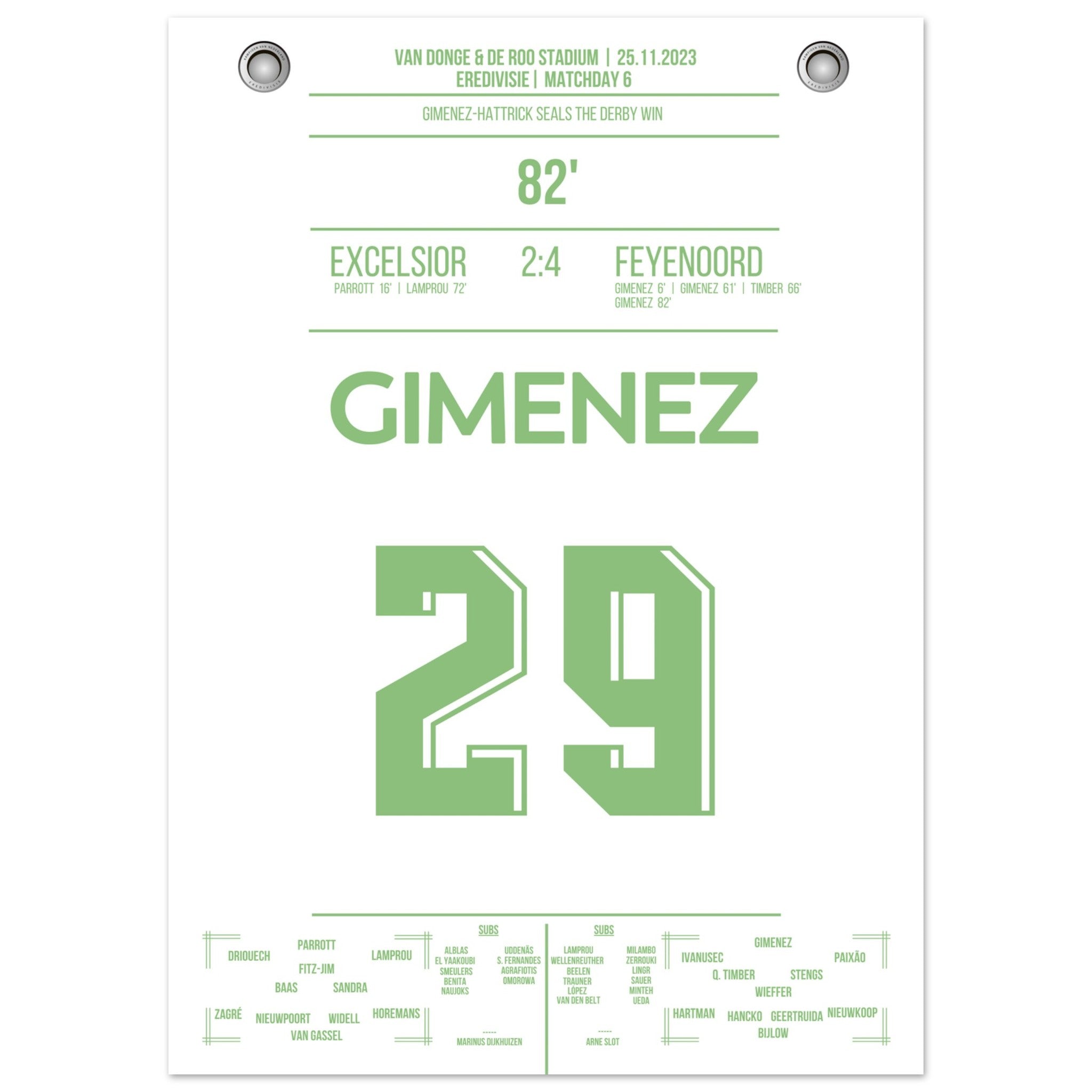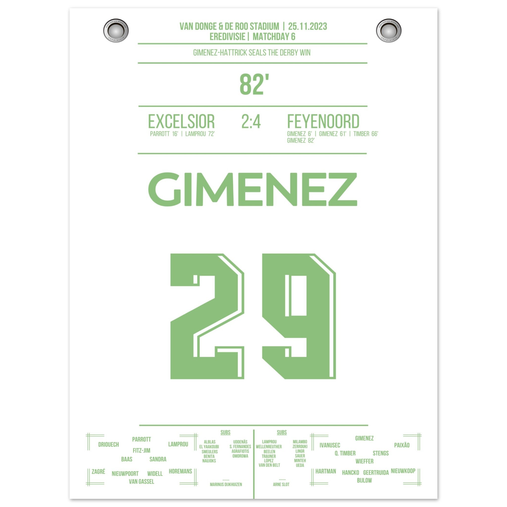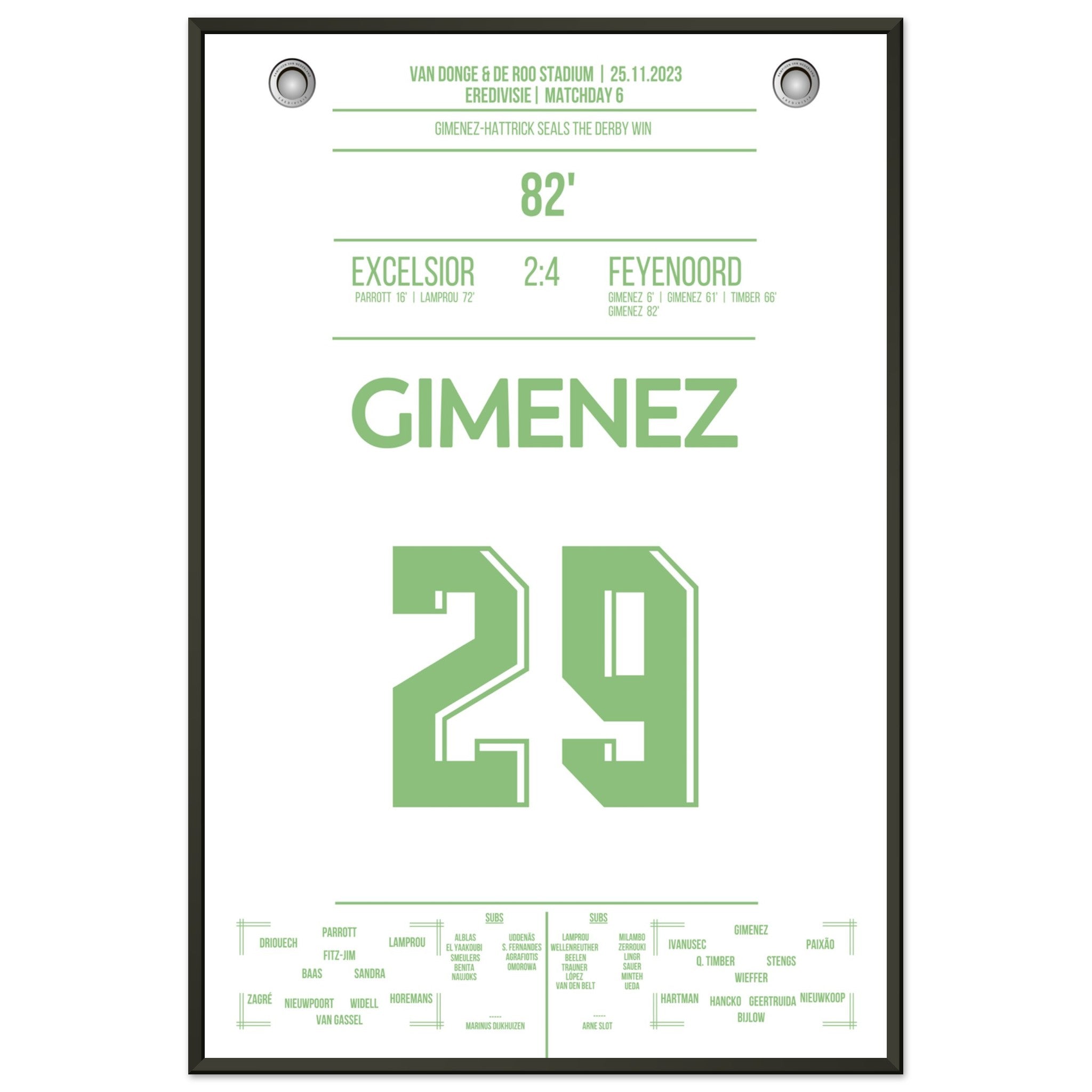 Gimenez-Hattrick beim Derby Sieg gegen Excelsior