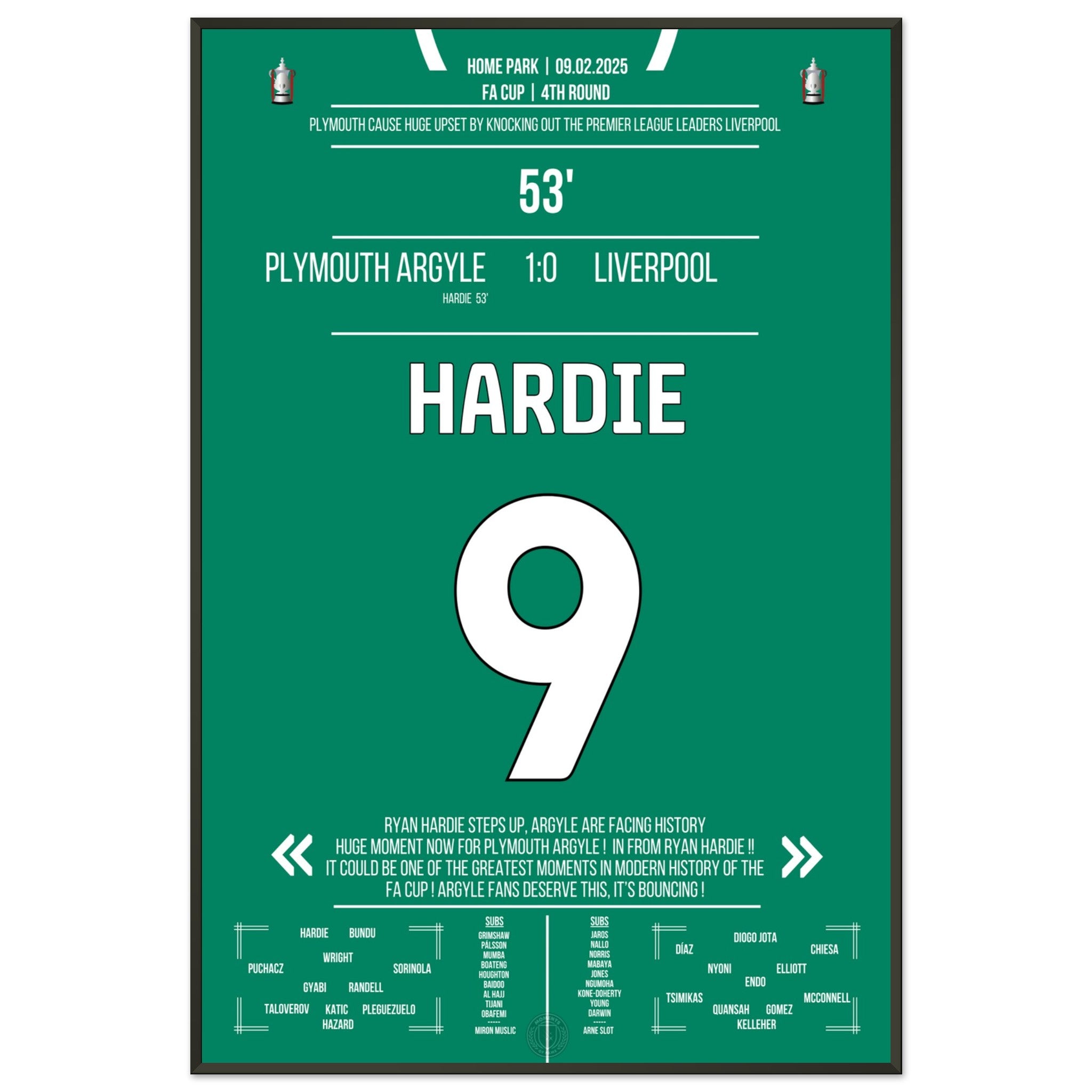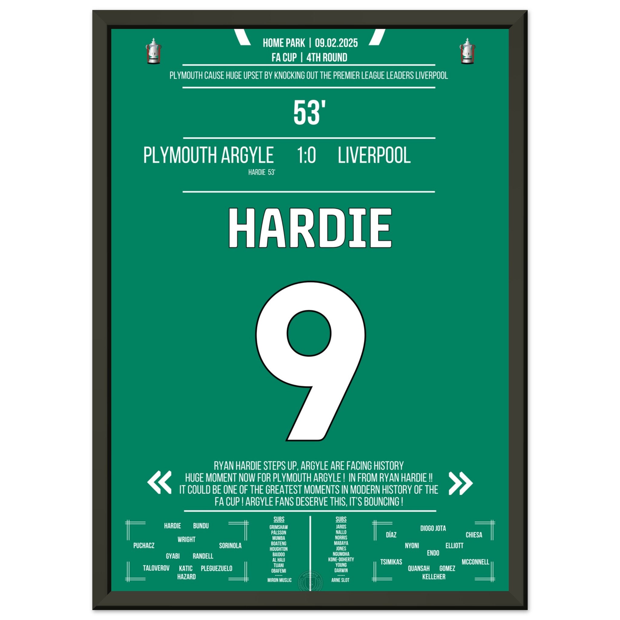 Jedes Poster und jeder Rahmen wird sicher verpackt versandt, sodass sie in einwandfreiem Zustand ankommen. Perfekt für die Sammlung jedes Fußballfans oder als ideales Geschenk!