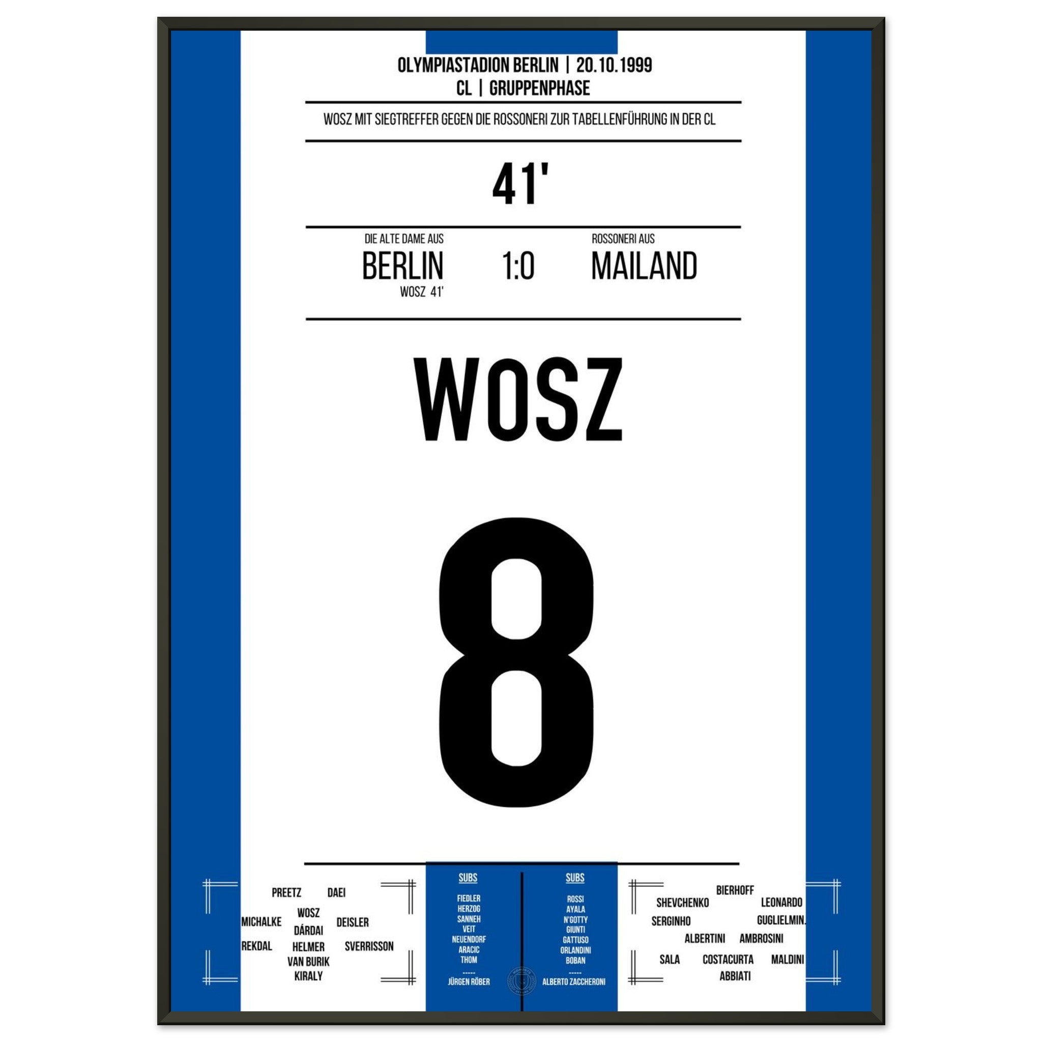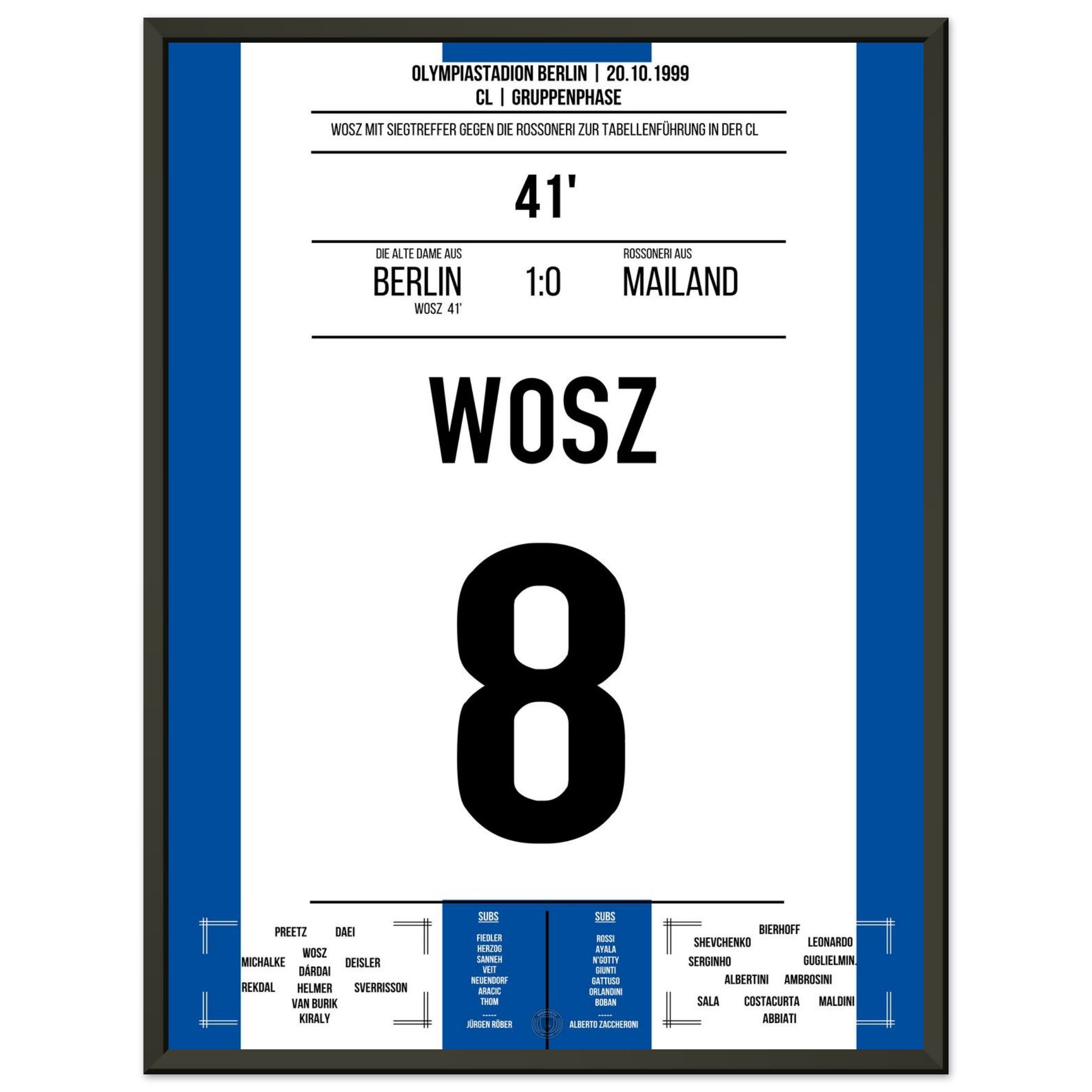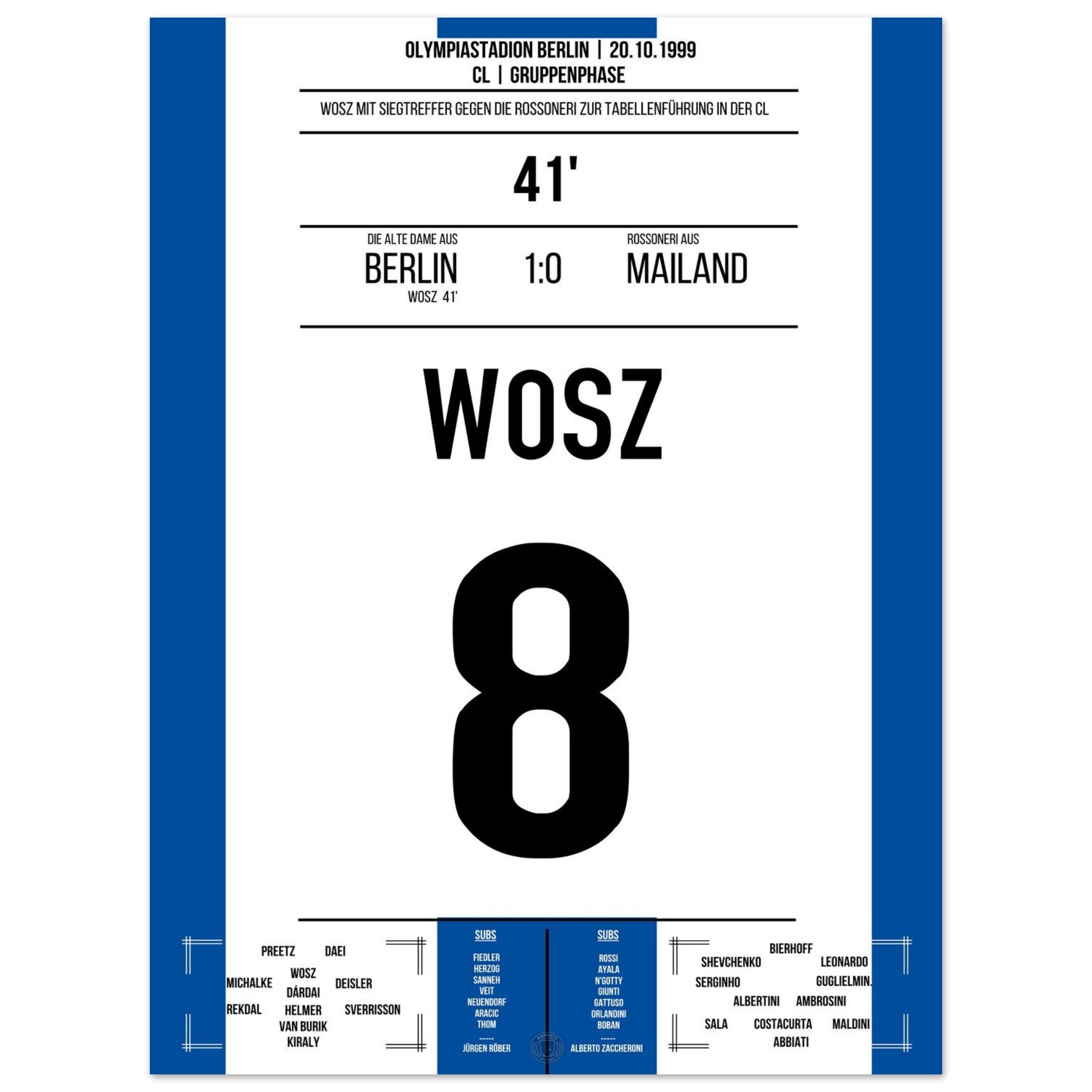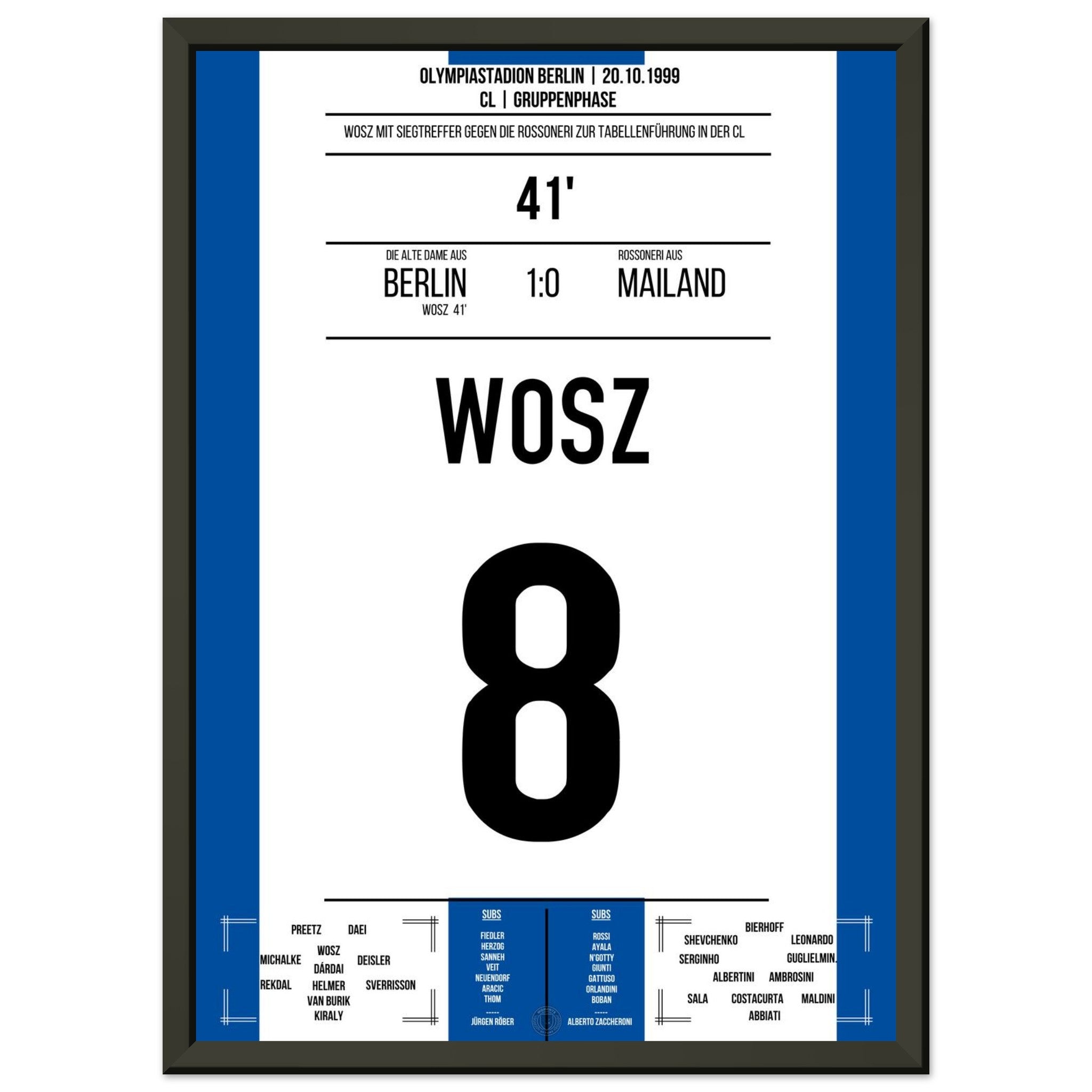 Wosz trifft in der 41. Minute und bringt die alte Dame auf die Siegerstraße. Mit einer leidenschaftlichen Vorstellung gelingt Berlin ein Sensationssieg gegen Mailand – ein Abend für die Vereinsgeschichte!