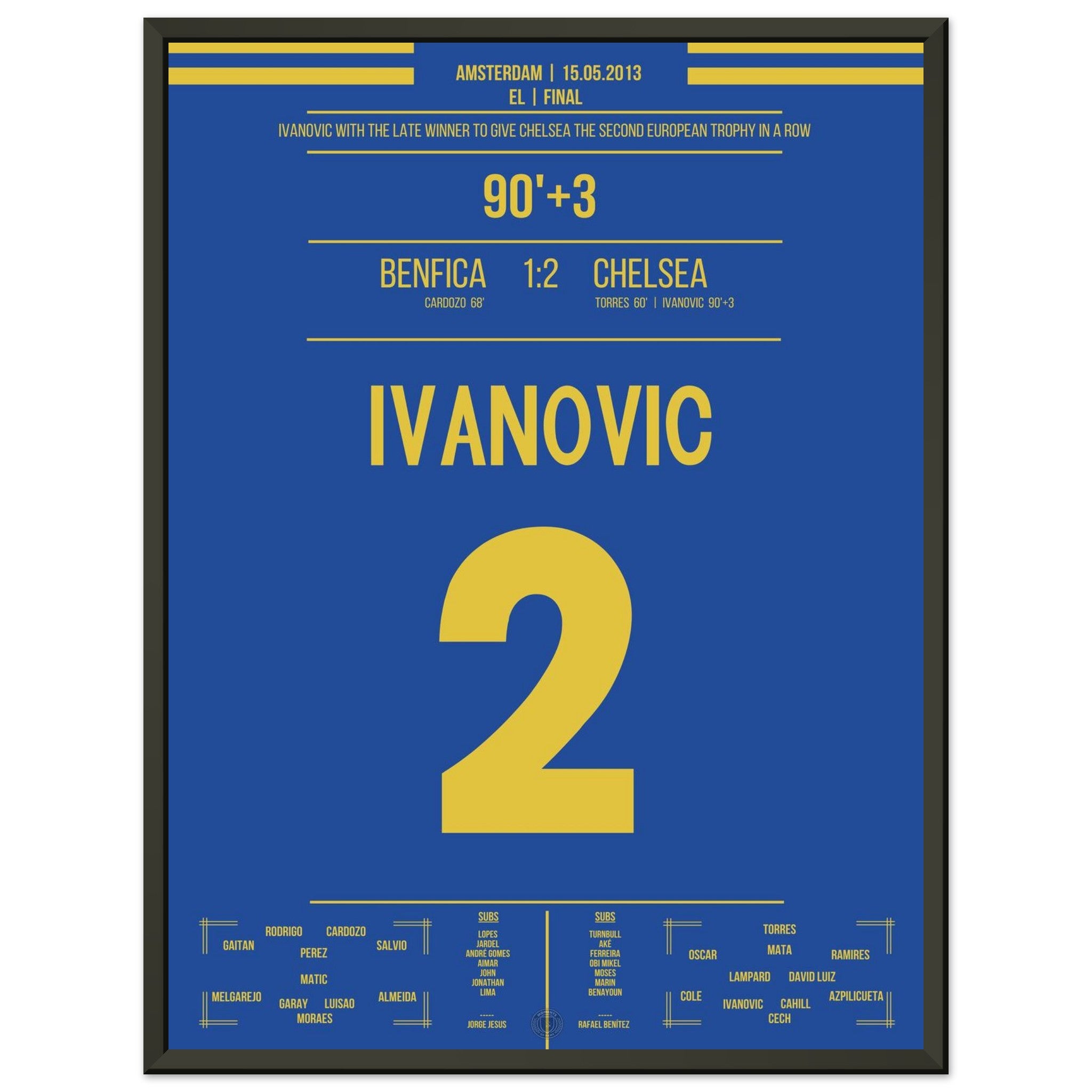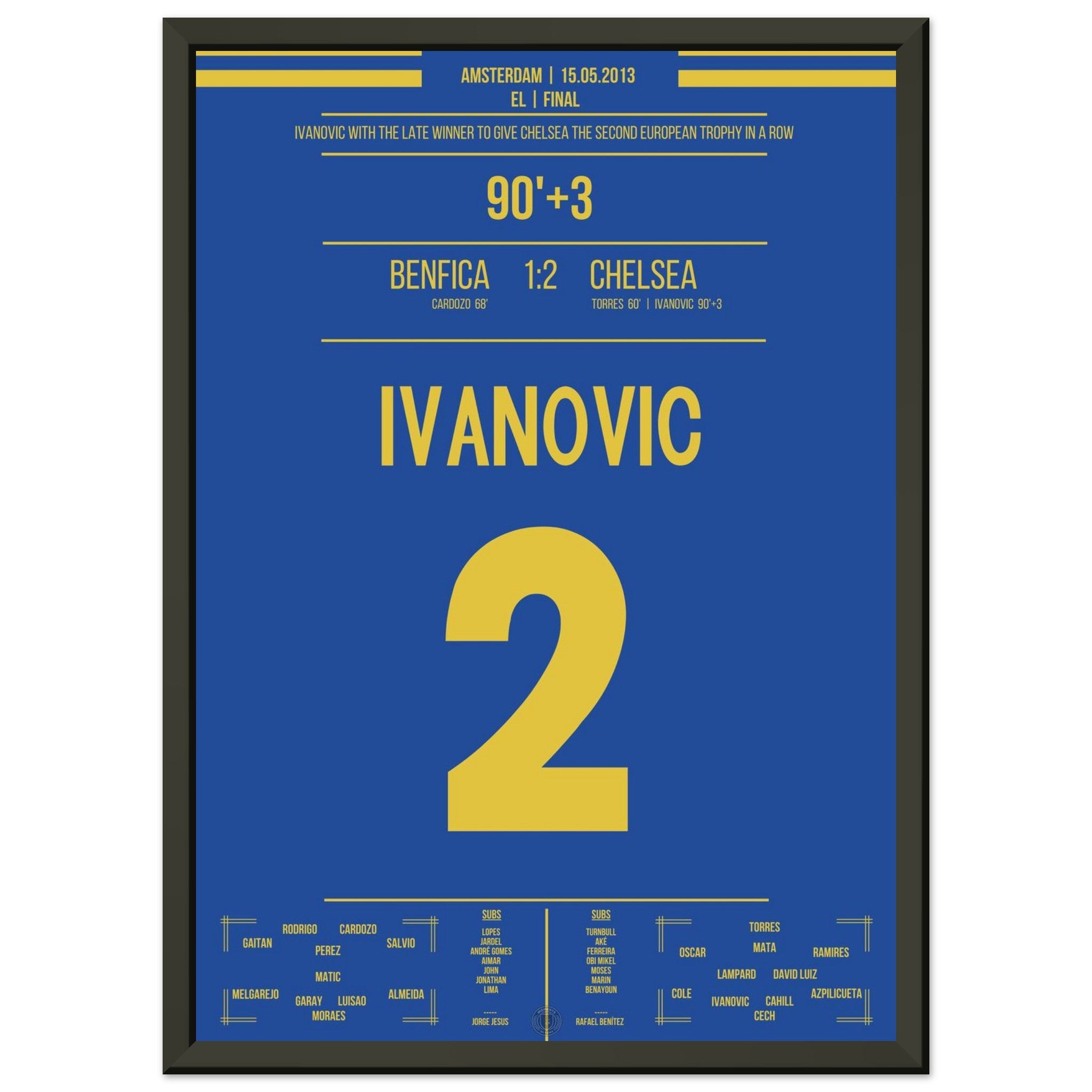 Sie können sicher sein, dass jedes Poster und jeder Rahmen in einer robusten Verpackung versandt wird, damit es in tadellosem Zustand ankommt. Es ist die perfekte Ergänzung für die Sammlung eines jeden Fußballfans oder das perfekte Geschenk für den eingefleischten Fußball-Fan ihres Freundes- oder Familienkreises.