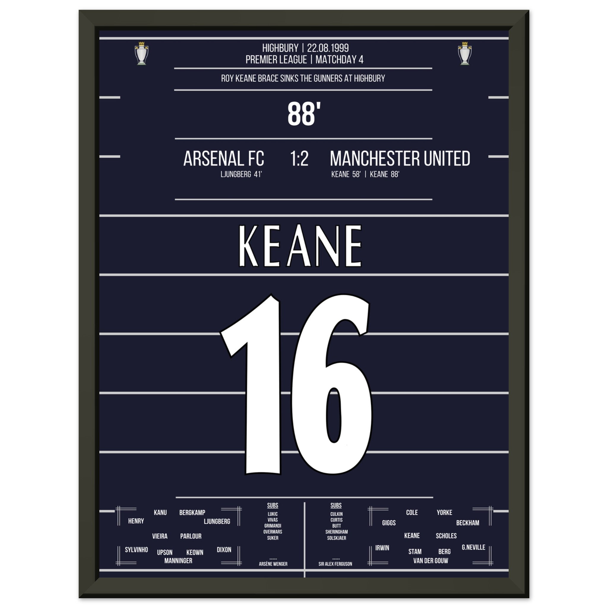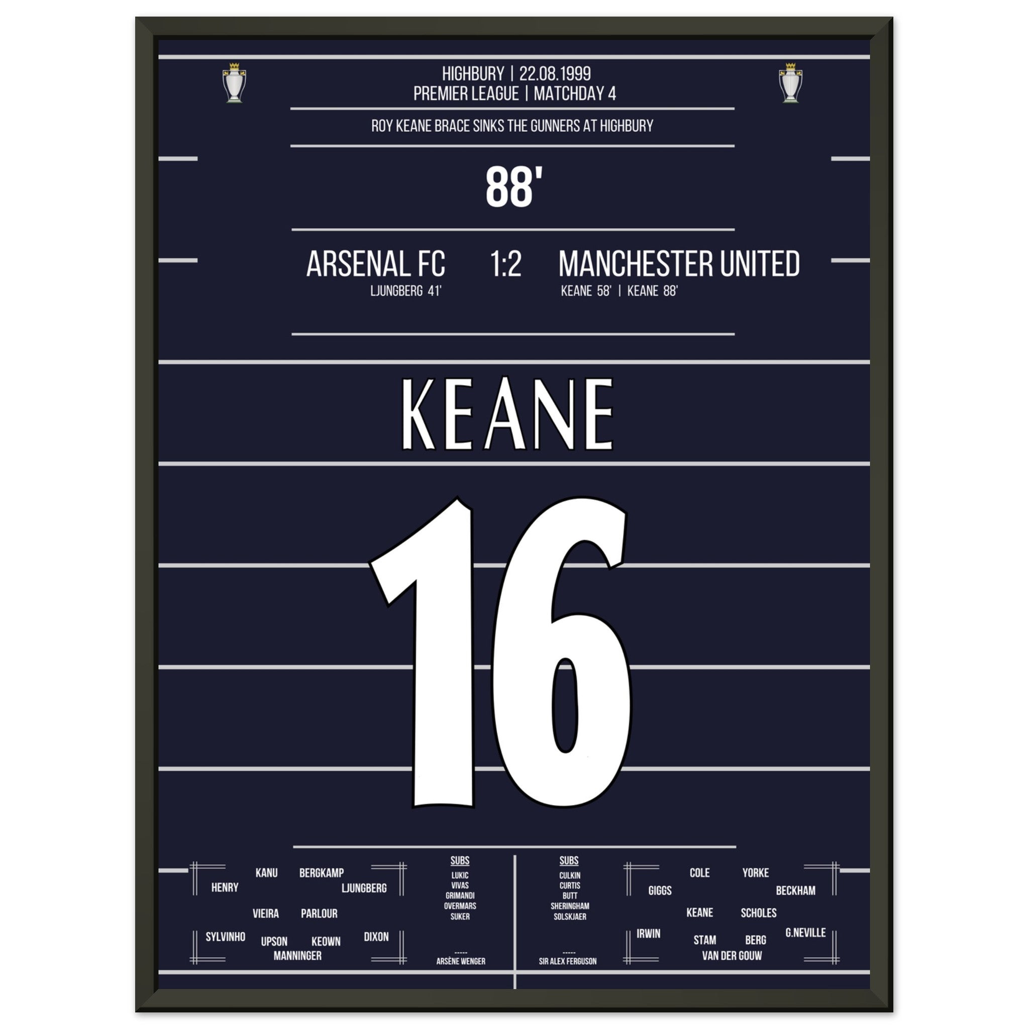 Sie können sicher sein, dass jedes Poster und jeder Rahmen in einer robusten Verpackung versandt wird, damit es in tadellosem Zustand ankommt. Es ist die perfekte Ergänzung für die Sammlung eines jeden Fußballfans oder das perfekte Geschenk für den eingefleischten Fußball-Fan ihres Freundes- oder Familienkreises.