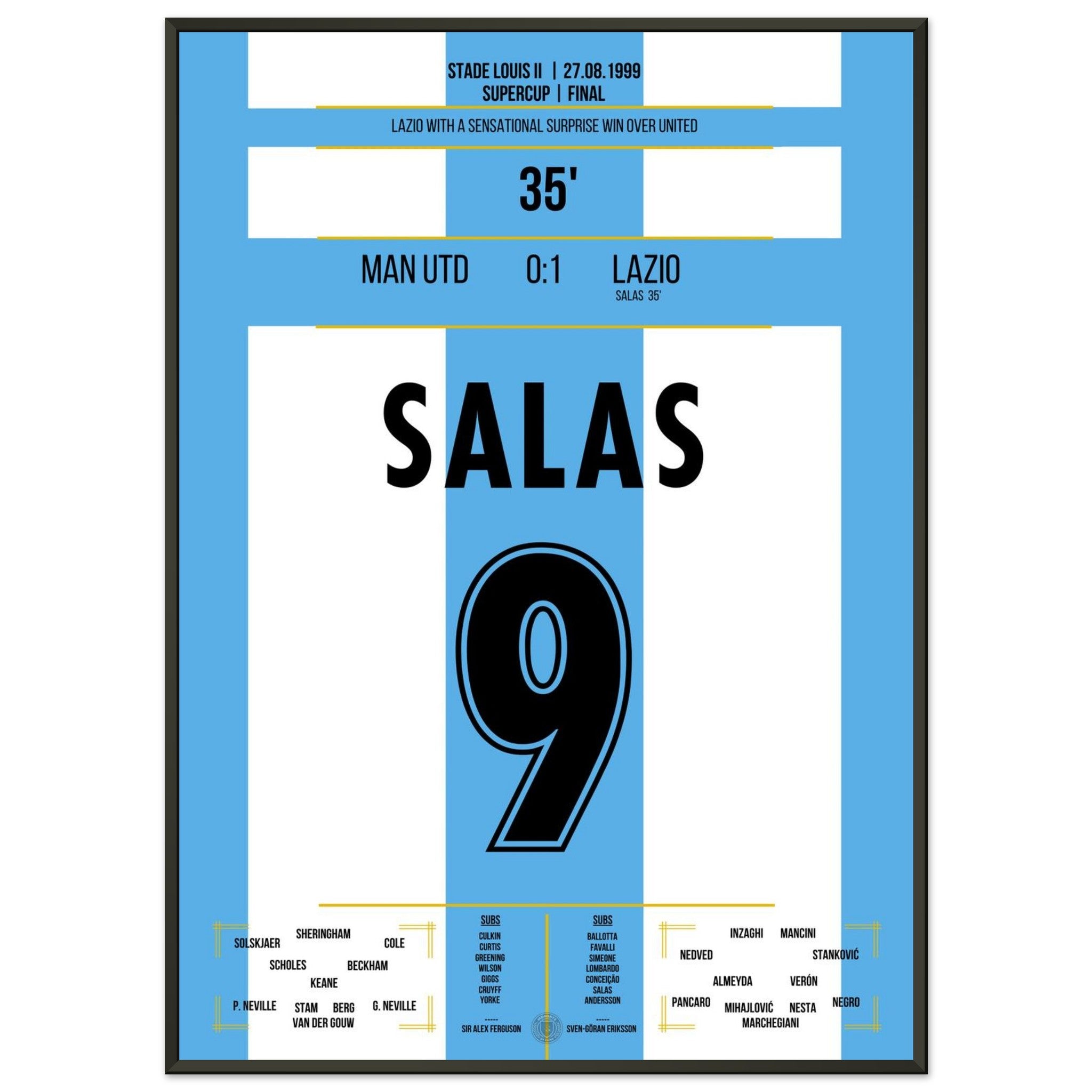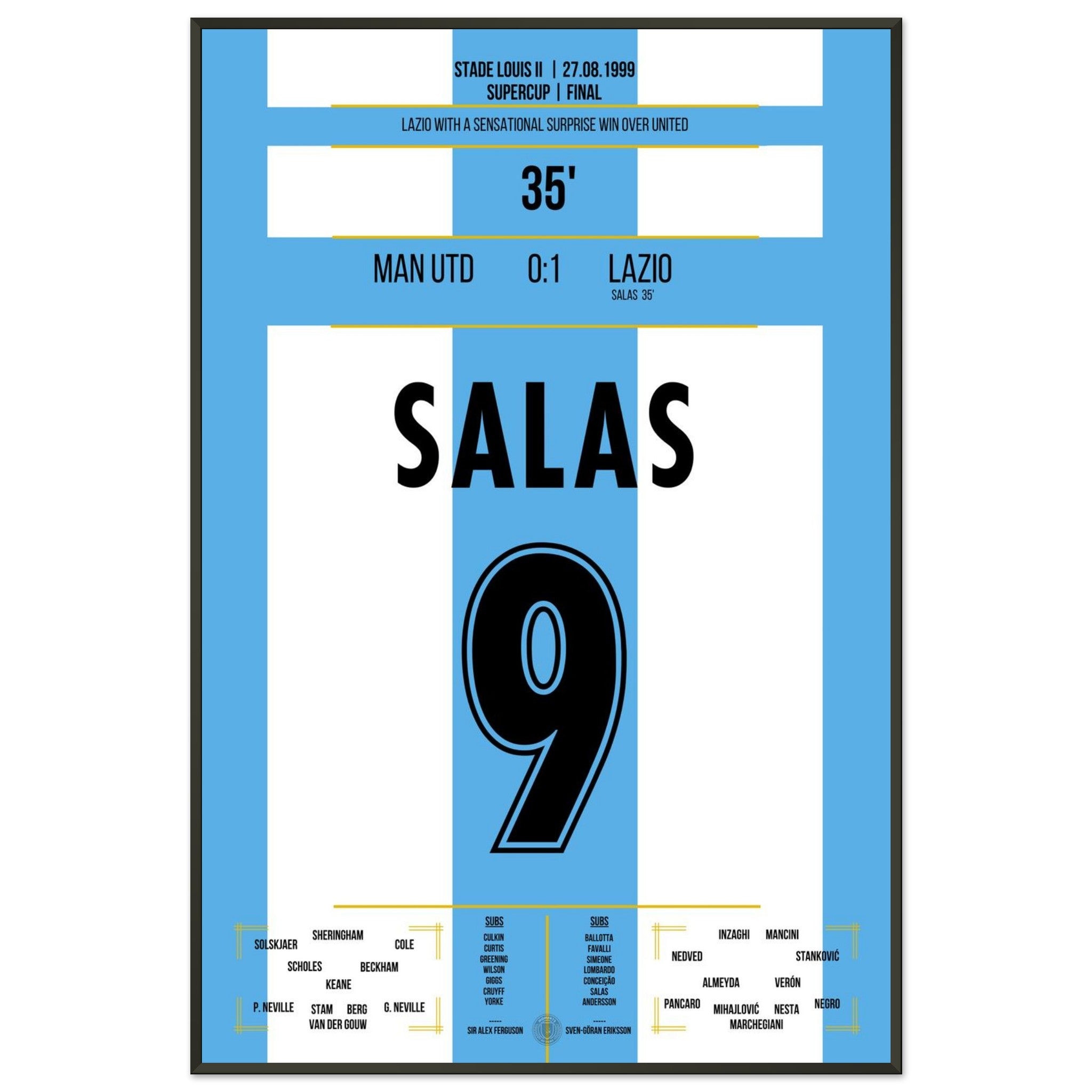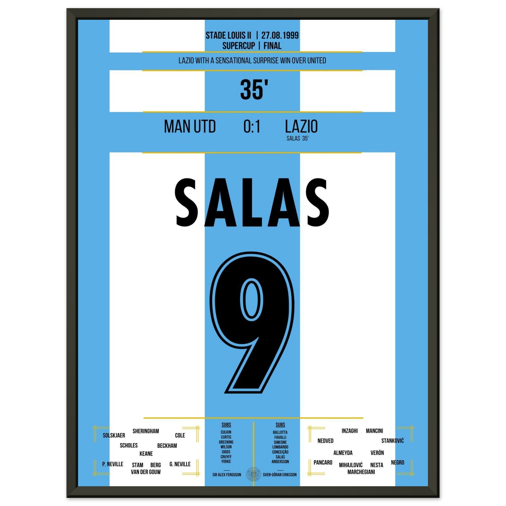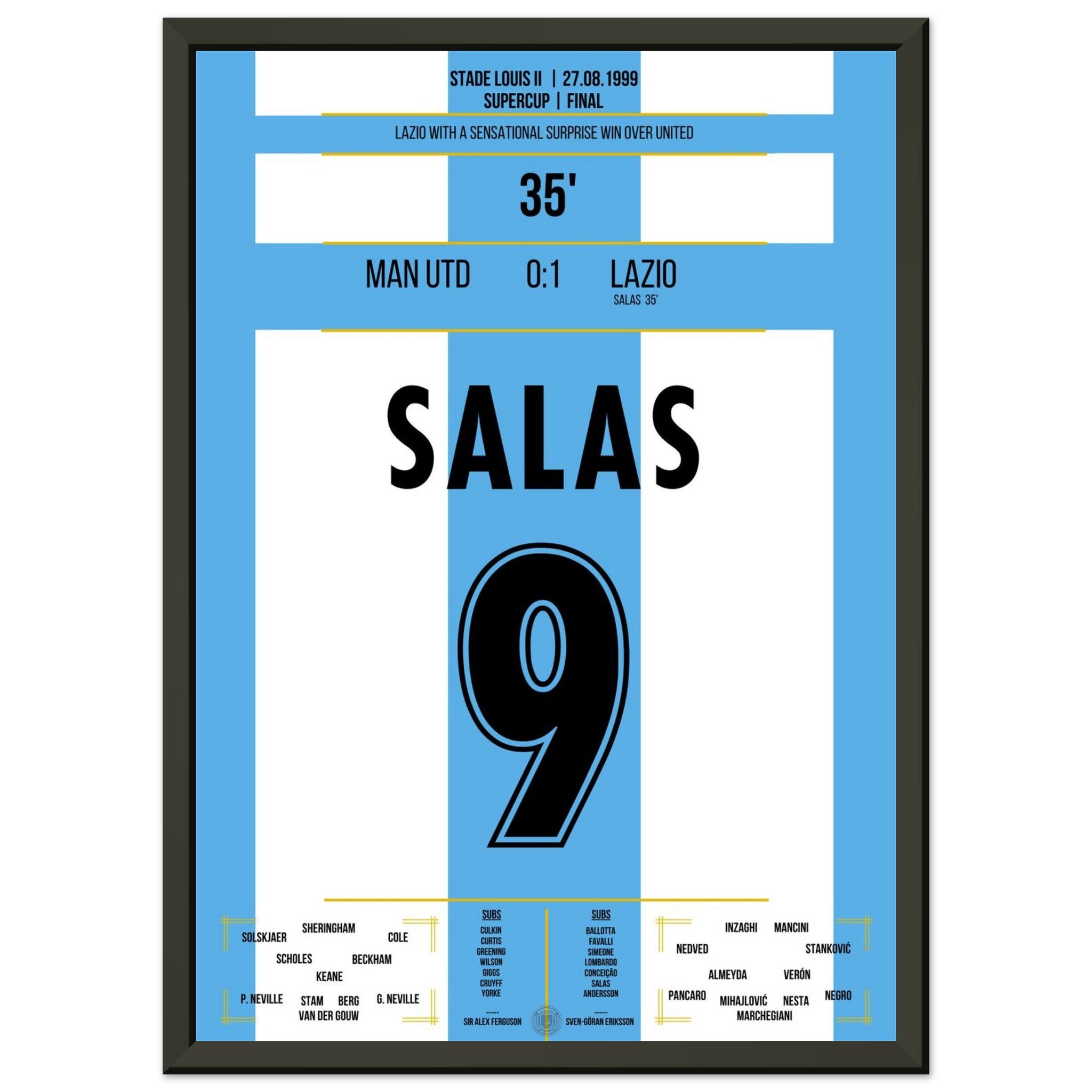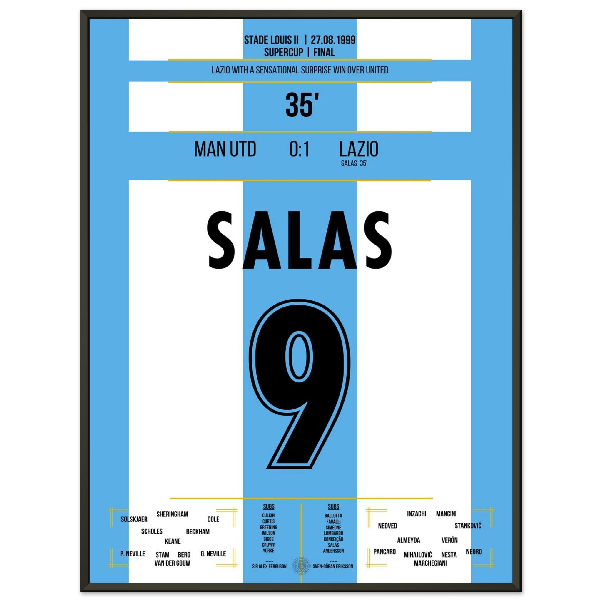 Sie können sicher sein, dass jedes Poster und jeder Rahmen in einer robusten Verpackung versandt wird, damit es in tadellosem Zustand ankommt. Es ist die perfekte Ergänzung für die Sammlung eines jeden Fußballfans oder das perfekte Geschenk für den eingefleischten Fußball-Fan ihres Freundes- oder Familienkreises.