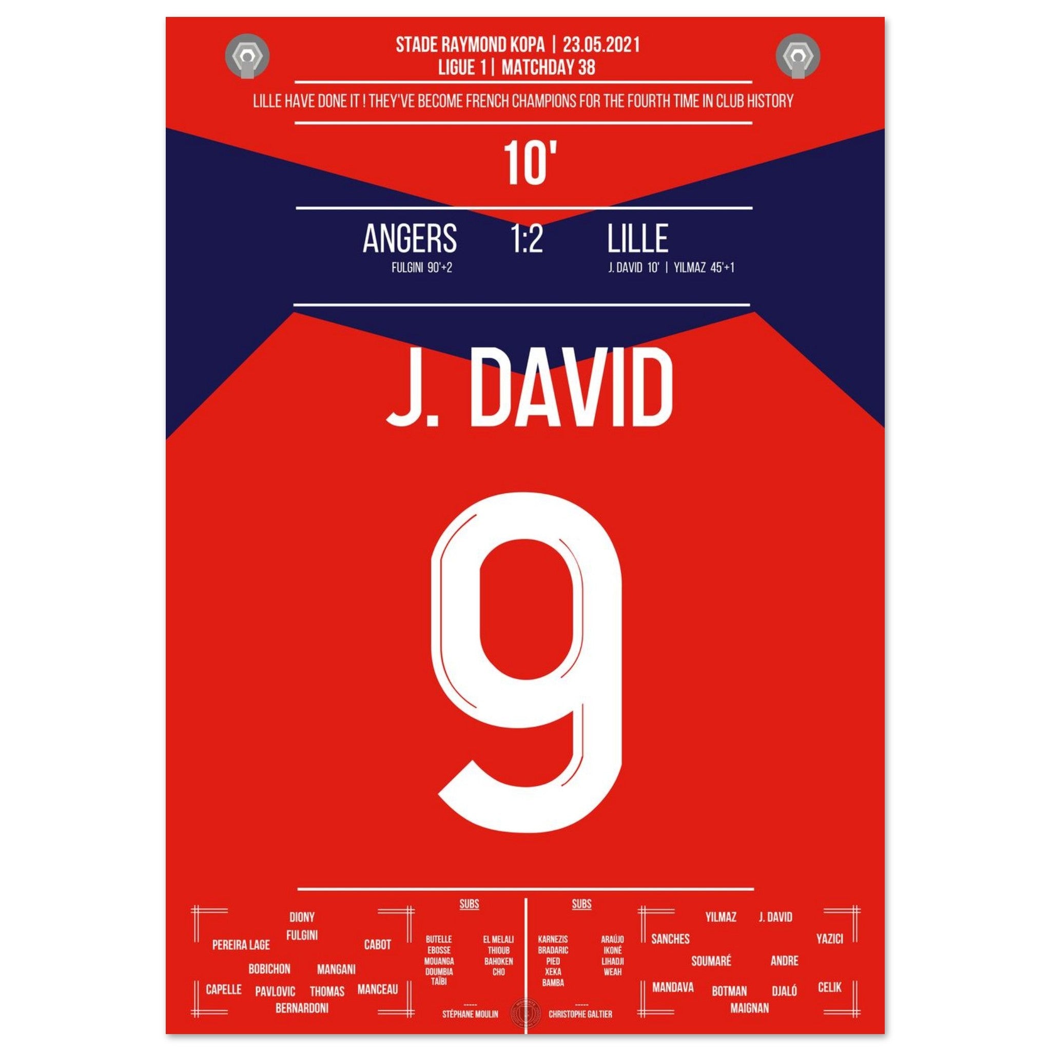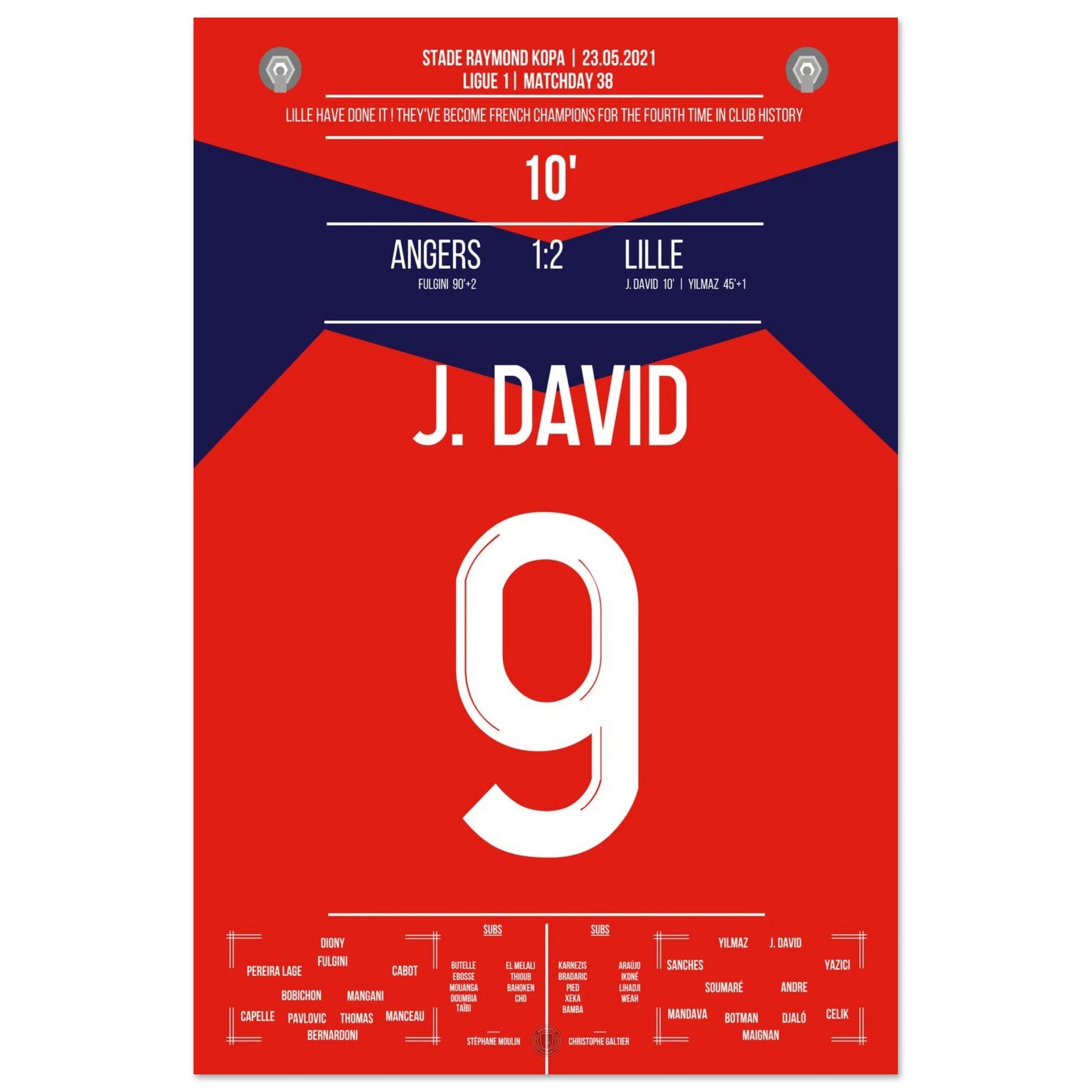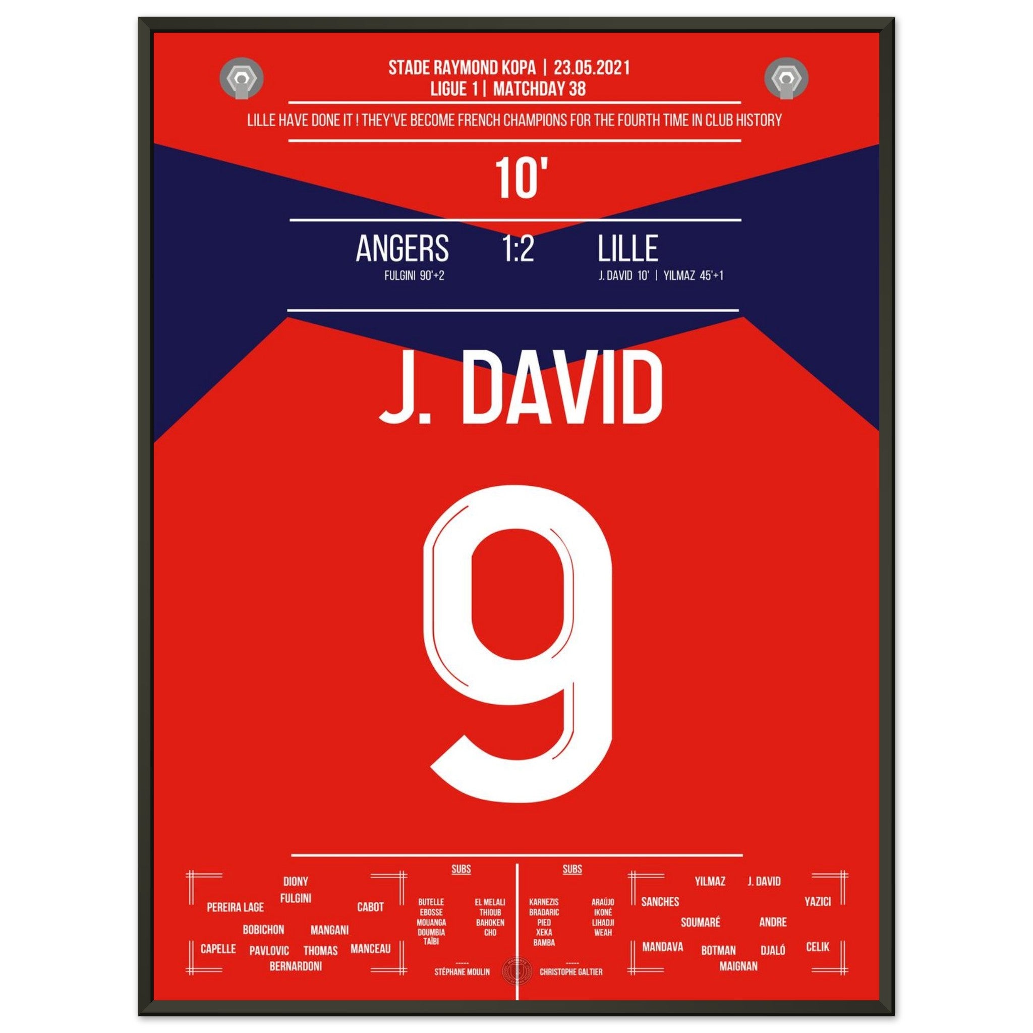23. Mai 2021 – Angers vs. Lille 1:2: Lille schreibt Geschichte! Am letzten Spieltag macht das Team mit einem 2:1-Sieg den sensationellen Meistertitel perfekt – der erste seit 2011. Jonathan David bringt die Nordfranzosen früh auf Kurs und wird mit seinem Treffer zum Wegbereiter des großen Triumphs. Ein Moment für die Ewigkeit – jetzt als Poster verewigt.