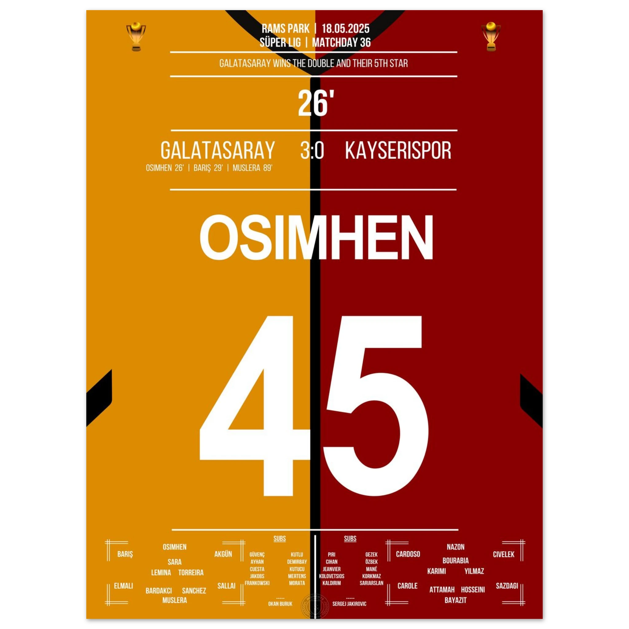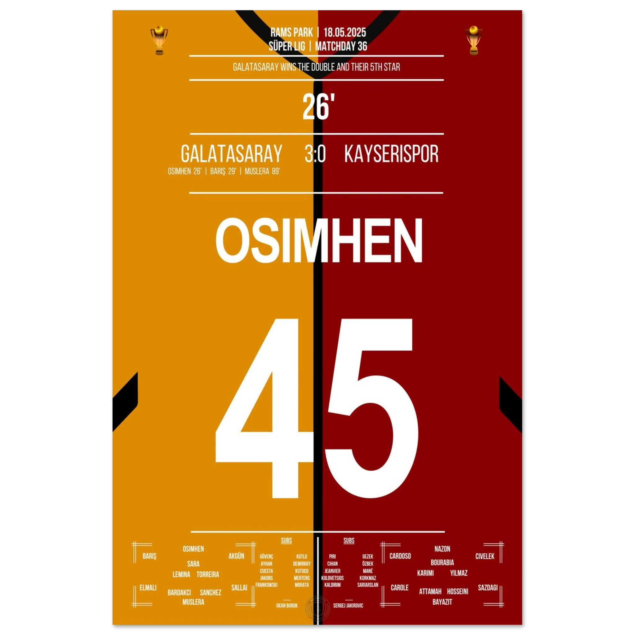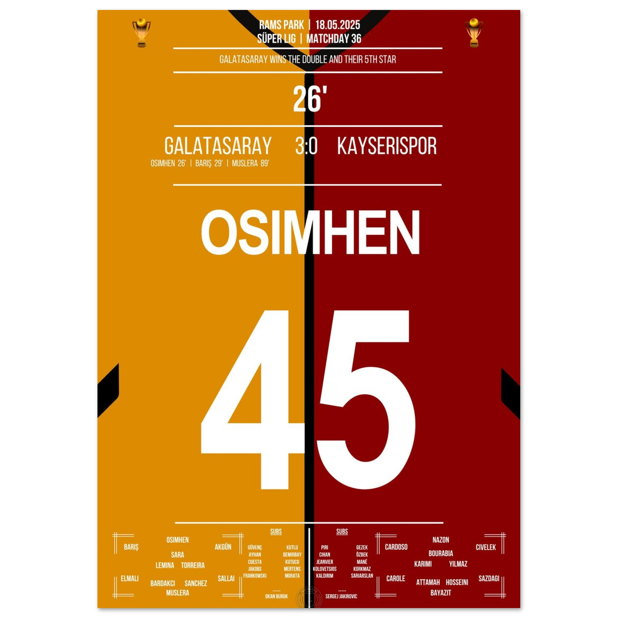 Osimhen trifft und Galatasaray holt den fünften Stern