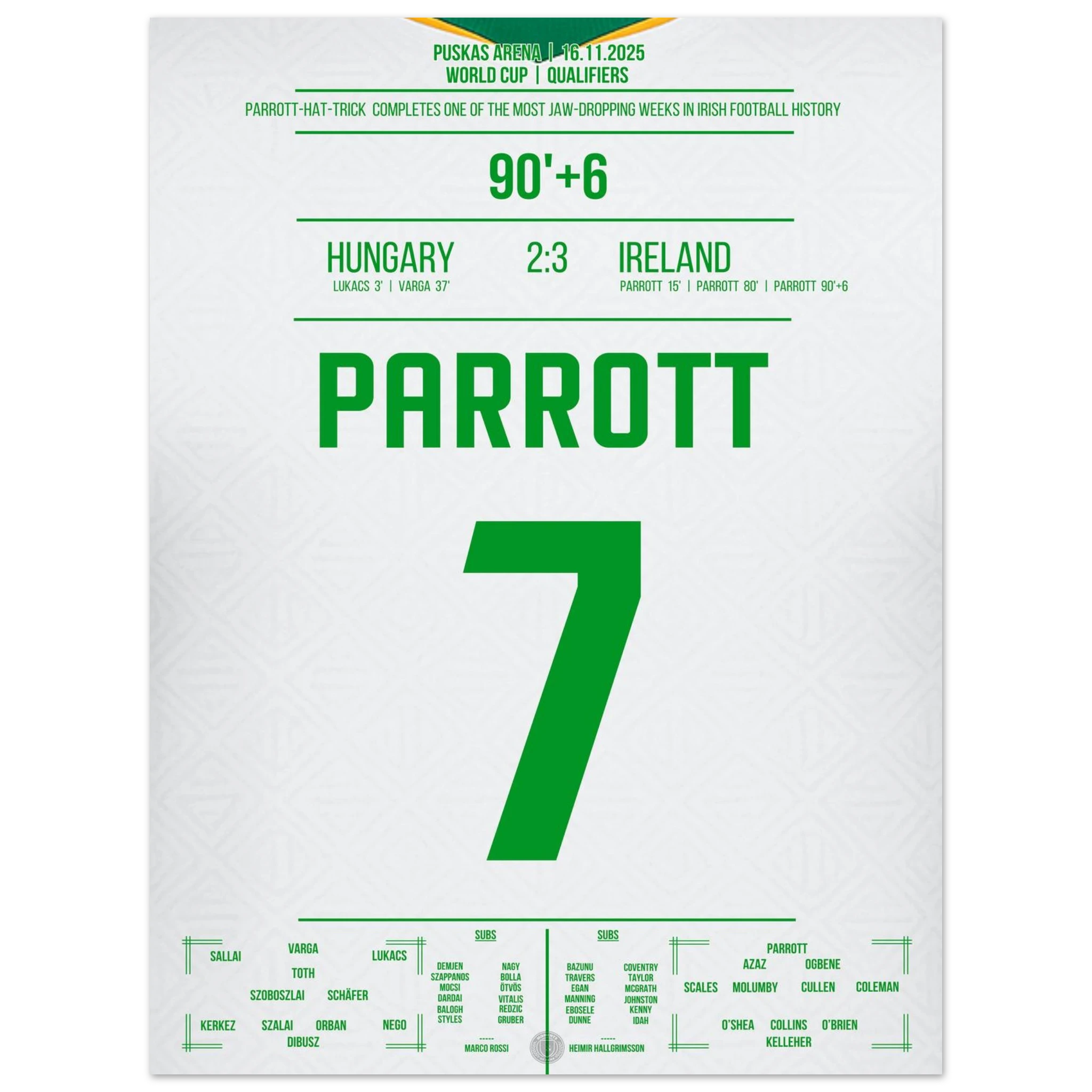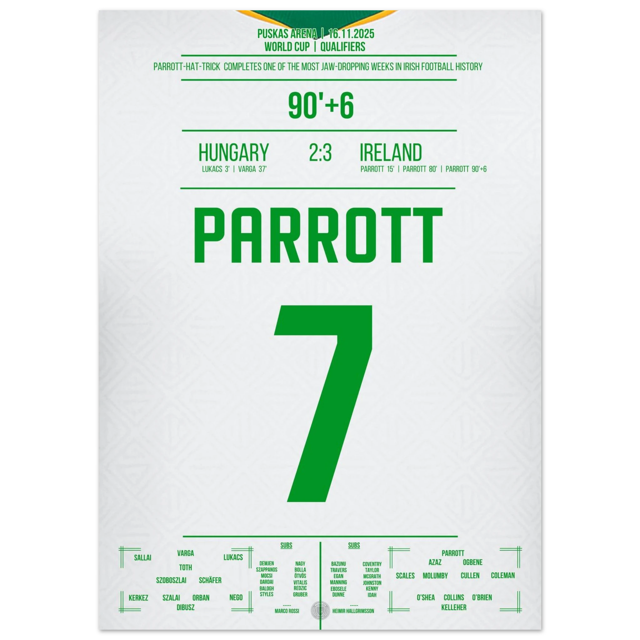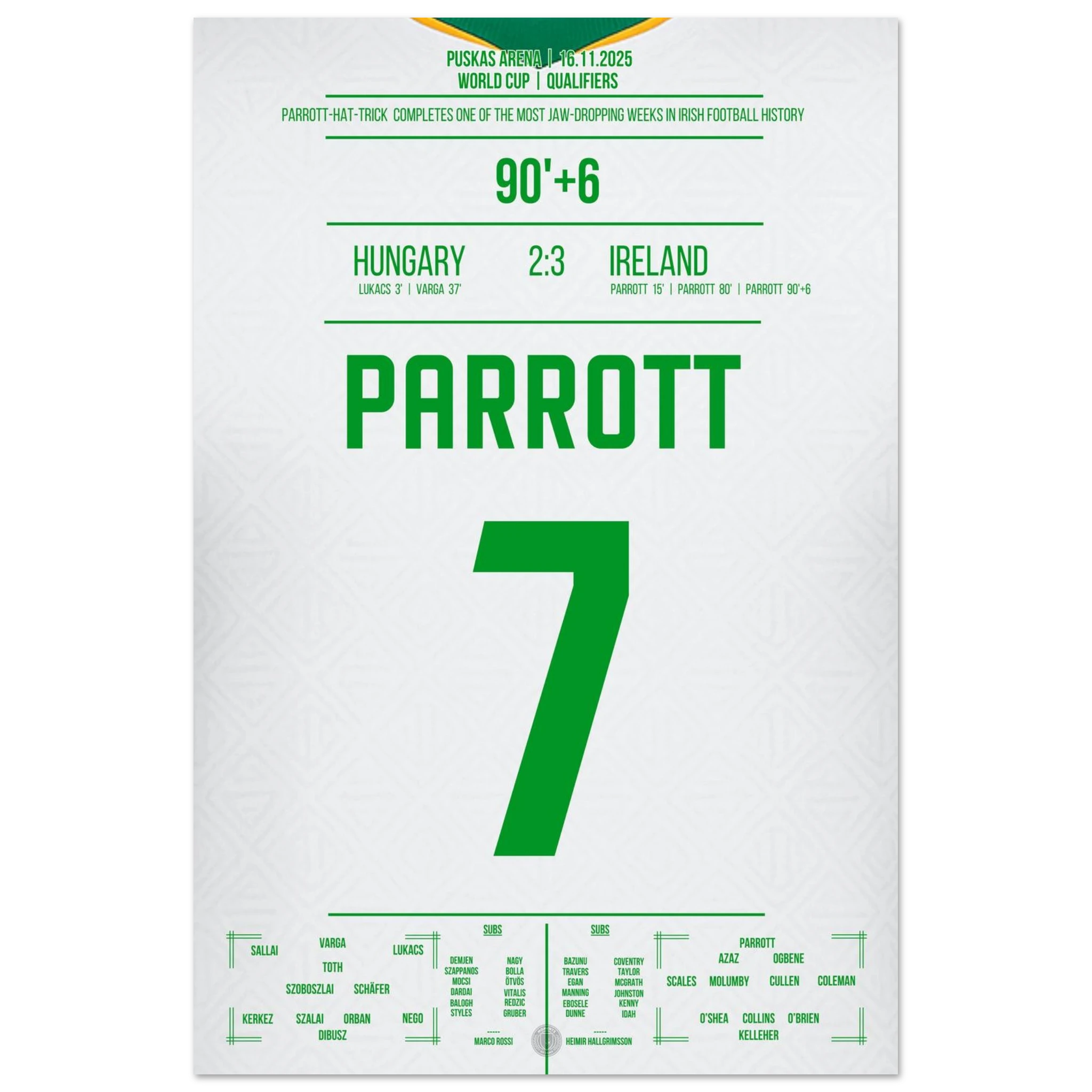 Unser Poster fängt diesen unvergesslichen Moment ein – Parrotts Hattrick, der ganz Irland jubeln ließ. 🇮🇪⚽✨