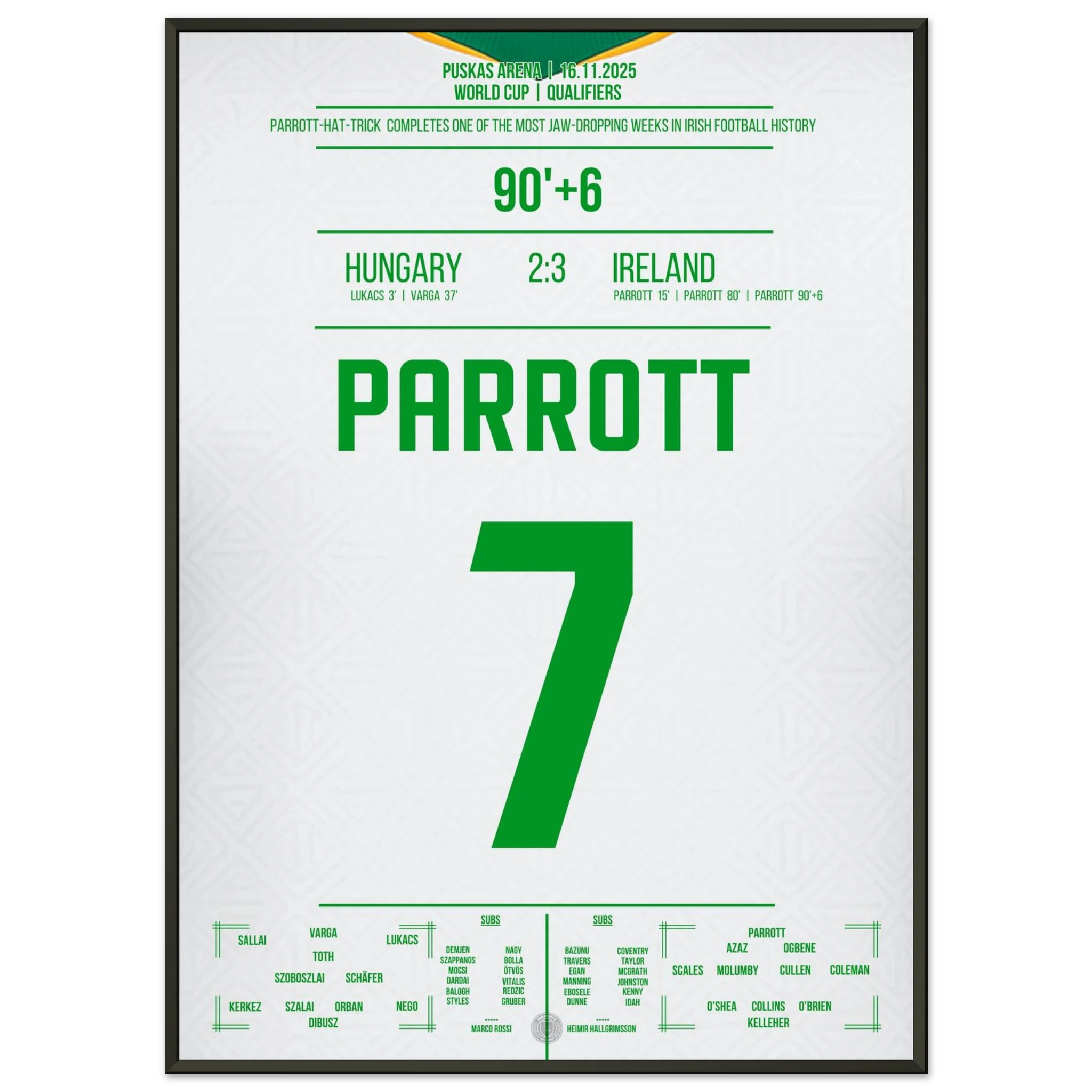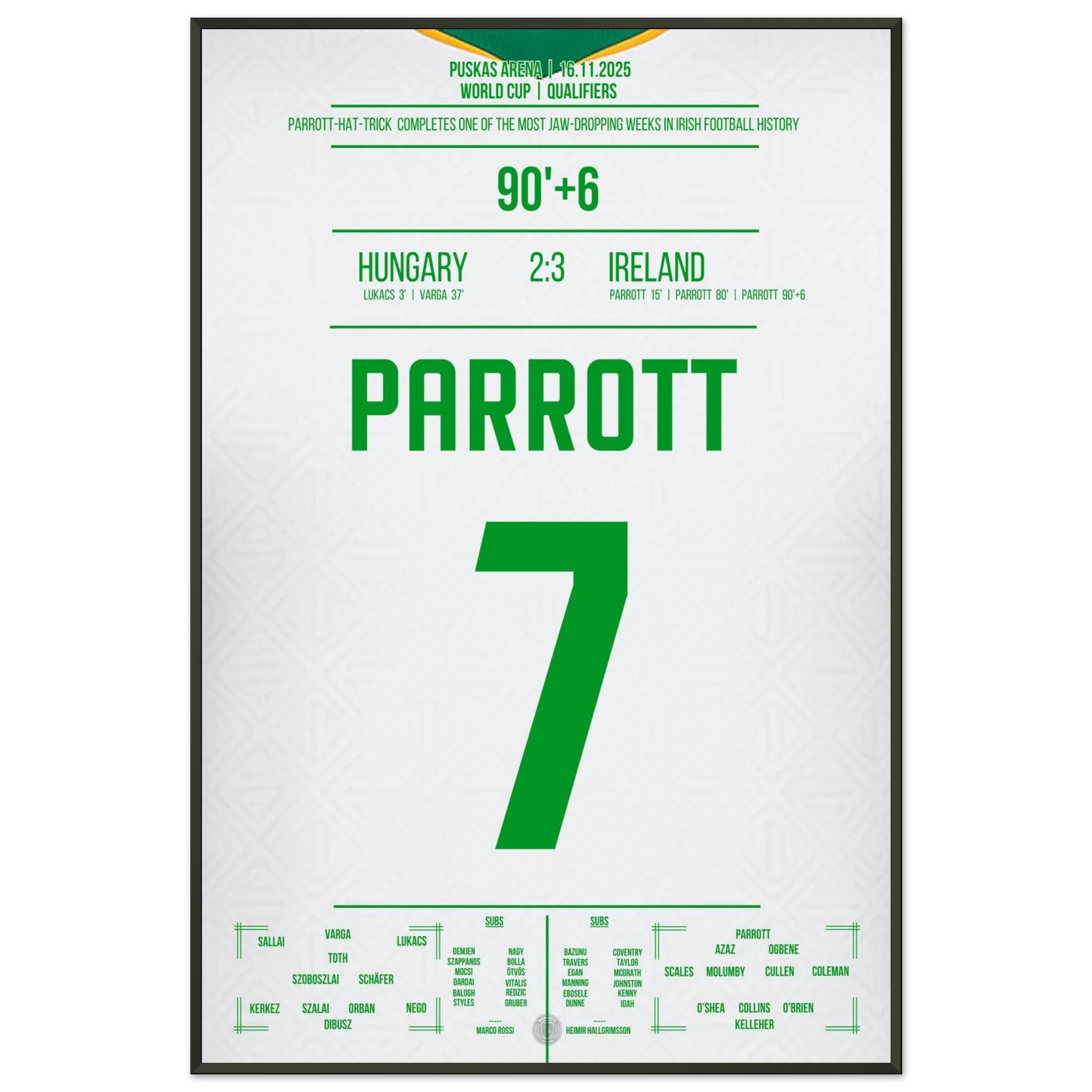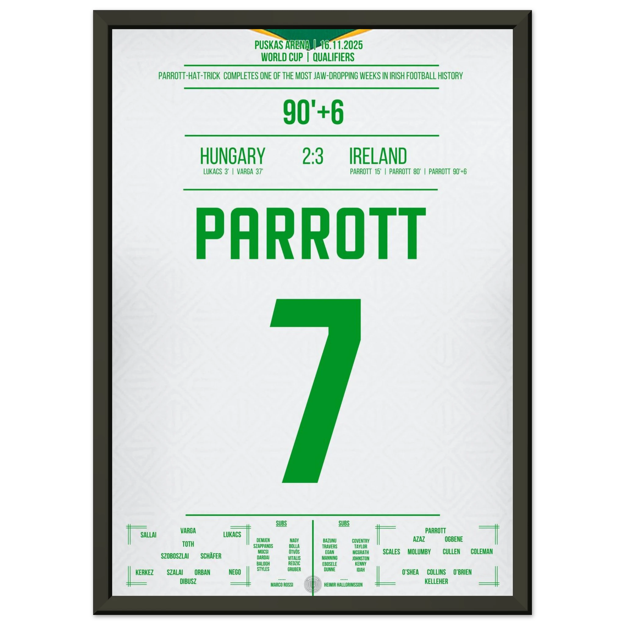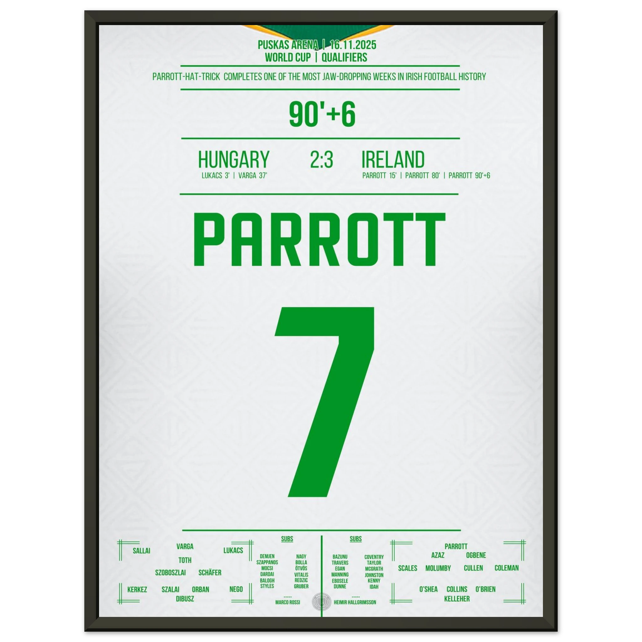 Unser Poster fängt diesen unvergesslichen Moment ein – Parrotts Hattrick, der ganz Irland jubeln ließ. 🇮🇪⚽✨