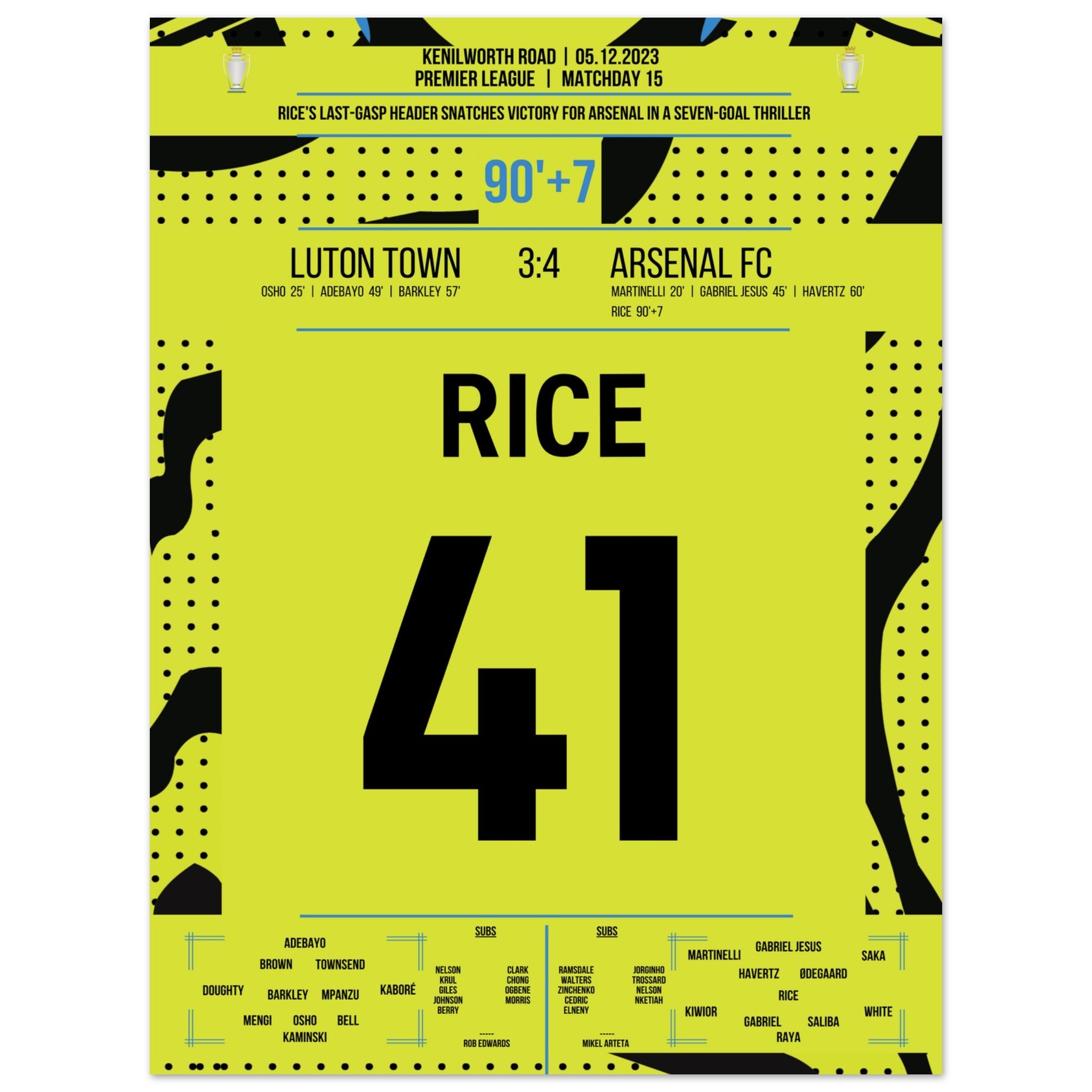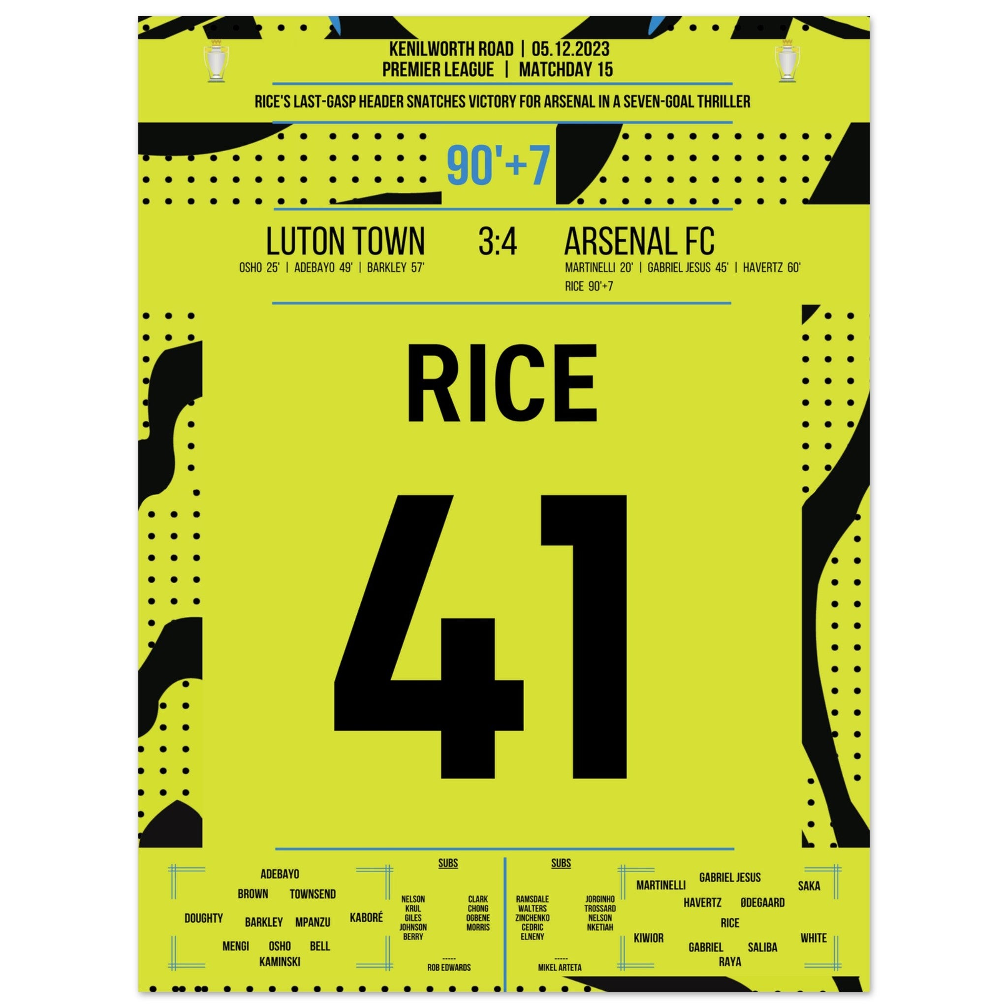 Rice köpft Arsenal in letzter Sekunde zum Auswärtssieg