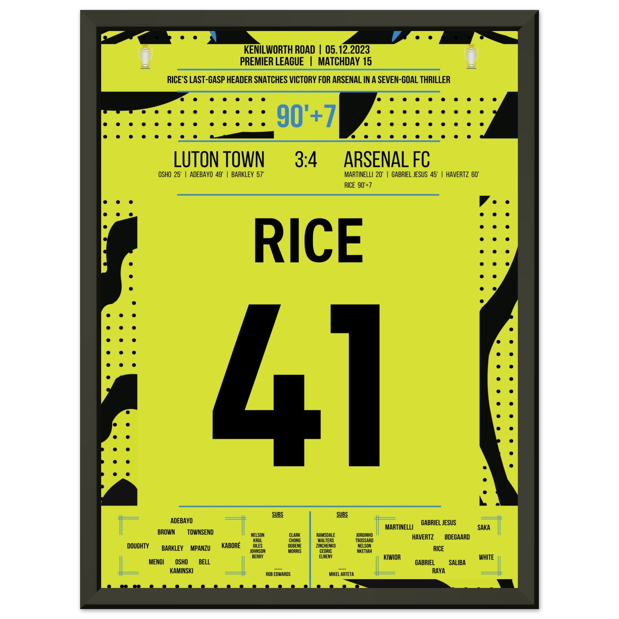 Hier kommt unser Premium-Druck dieses unvergesslichen Fußballmoments für das ultimative Fan-Erlebnis. Gedruckt auf schwerem, seidenmattem Premium-Papier, glänzt dieses Kunstwerk mit verstärkten Farben und einem subtilen Glanz, der jedes Detail zum Vorschein bringt.