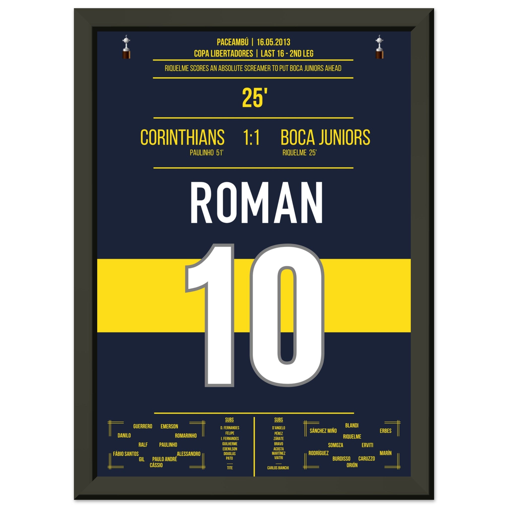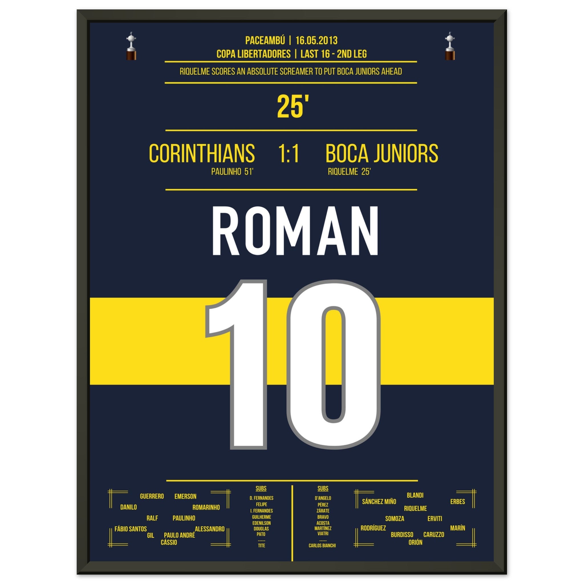 Sie können sicher sein, dass jedes Poster und jeder Rahmen in einer robusten Verpackung versandt wird, damit es in tadellosem Zustand ankommt. Es ist die perfekte Ergänzung für die Sammlung eines jeden Fußballfans oder das perfekte Geschenk für den eingefleischten Fußball-Fan ihres Freundes- oder Familienkreises.