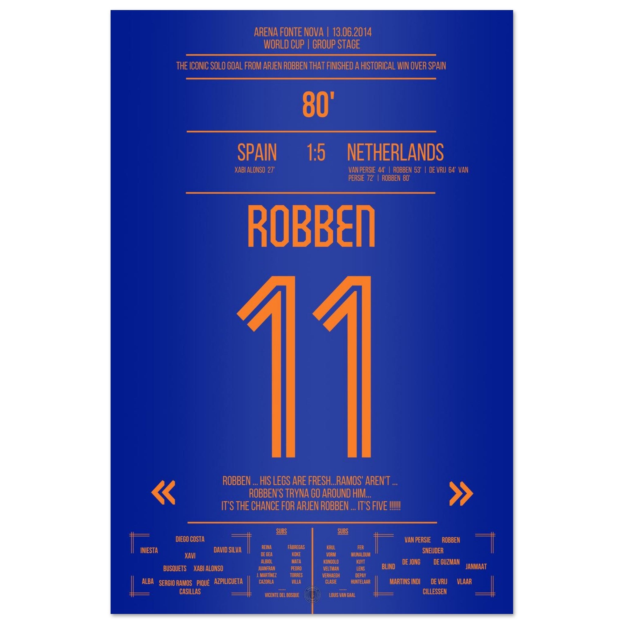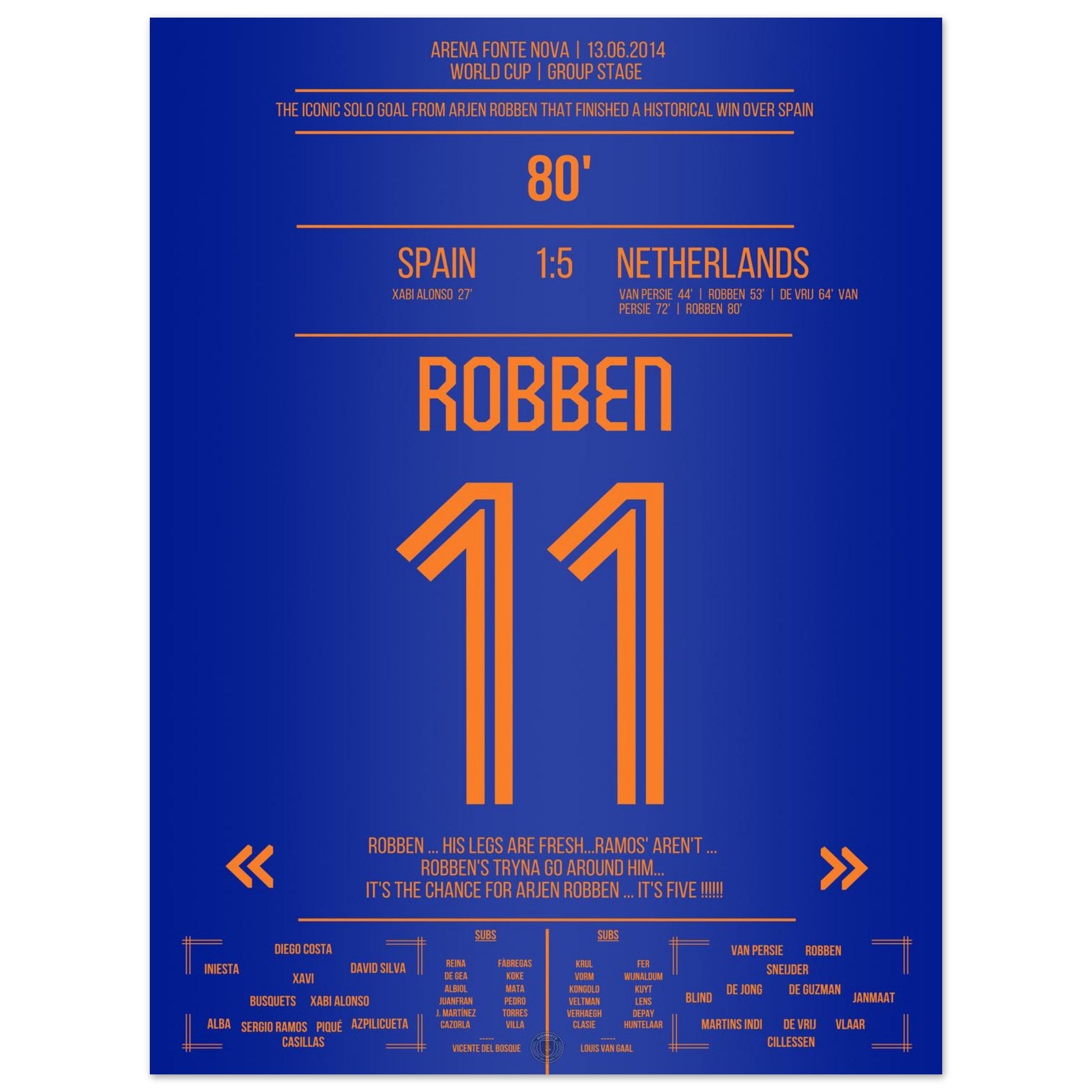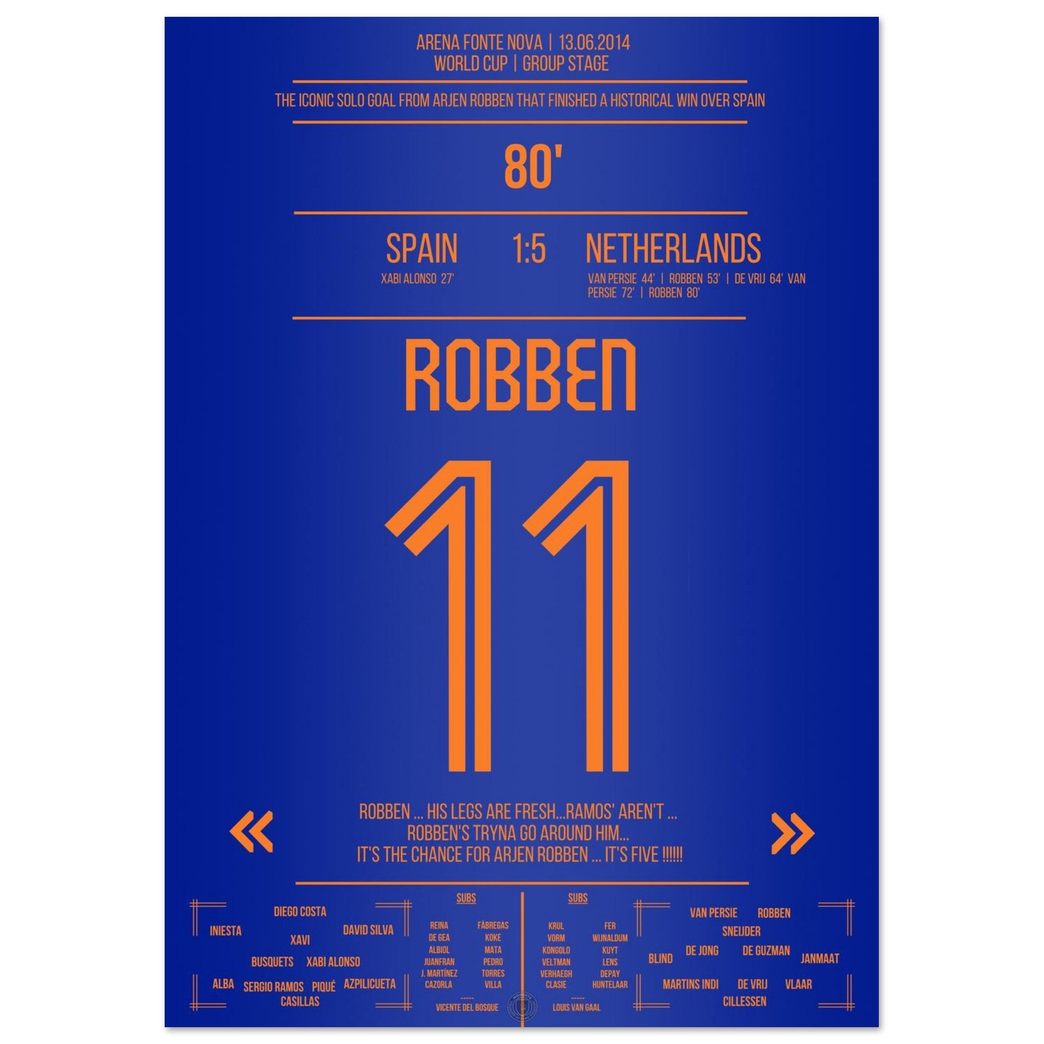 13. Juni 2014 – Spanien vs. Niederlande 1:5 – Robben vollendet das Oranje-Meisterwerk: 🟠⚡
