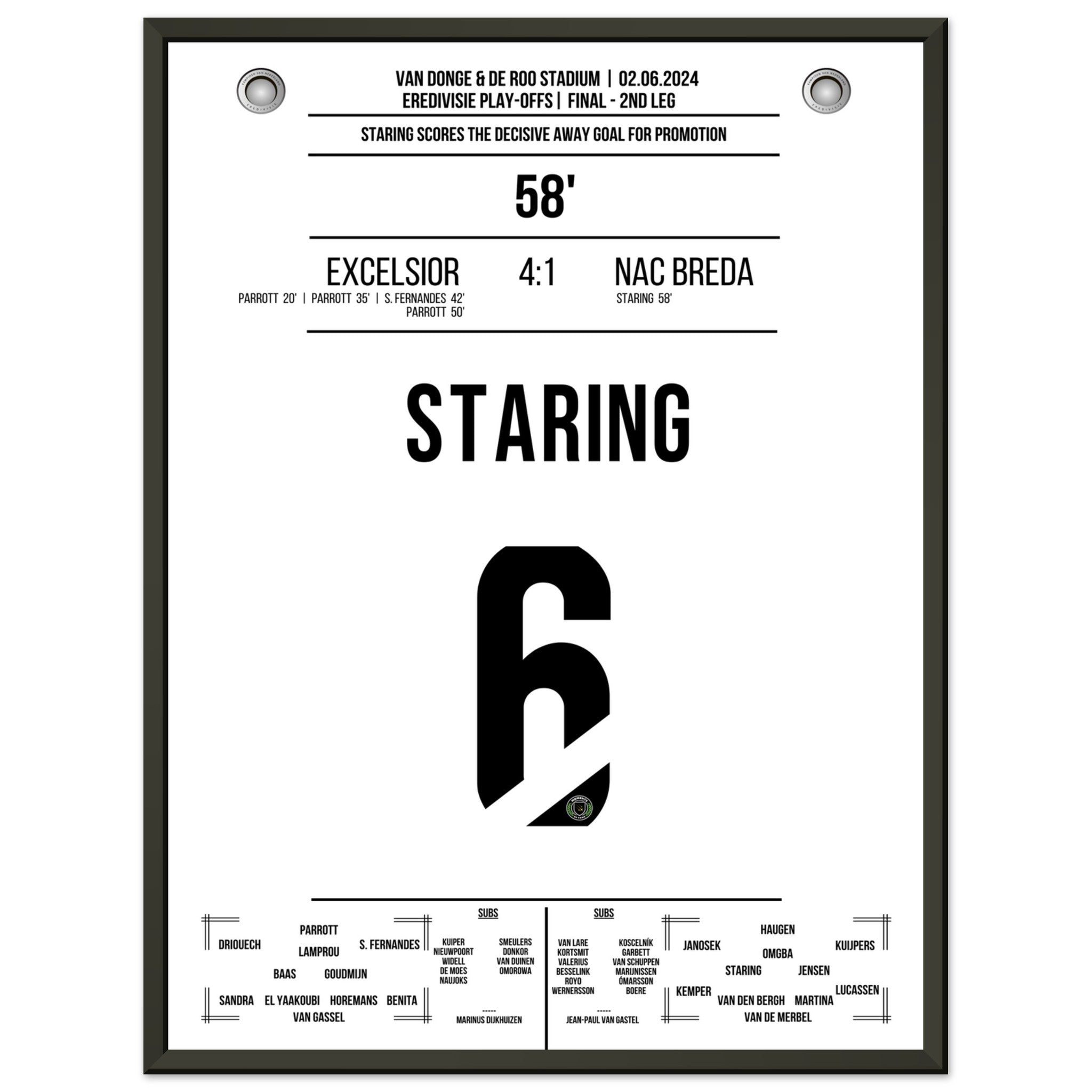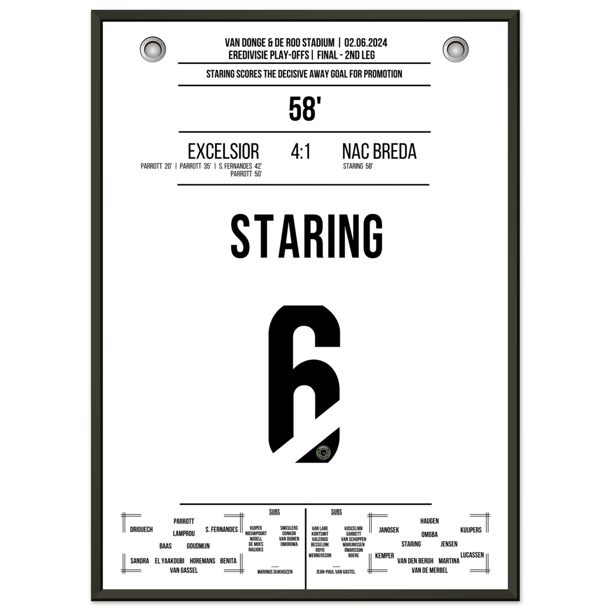 Sie können sicher sein, dass jedes Poster und jeder Rahmen in einer robusten Verpackung versandt wird, damit es in tadellosem Zustand ankommt. Es ist die perfekte Ergänzung für die Sammlung eines jeden Fußballfans oder das perfekte Geschenk für den eingefleischten Fußball-Fan ihres Freundes- oder Familienkreises.