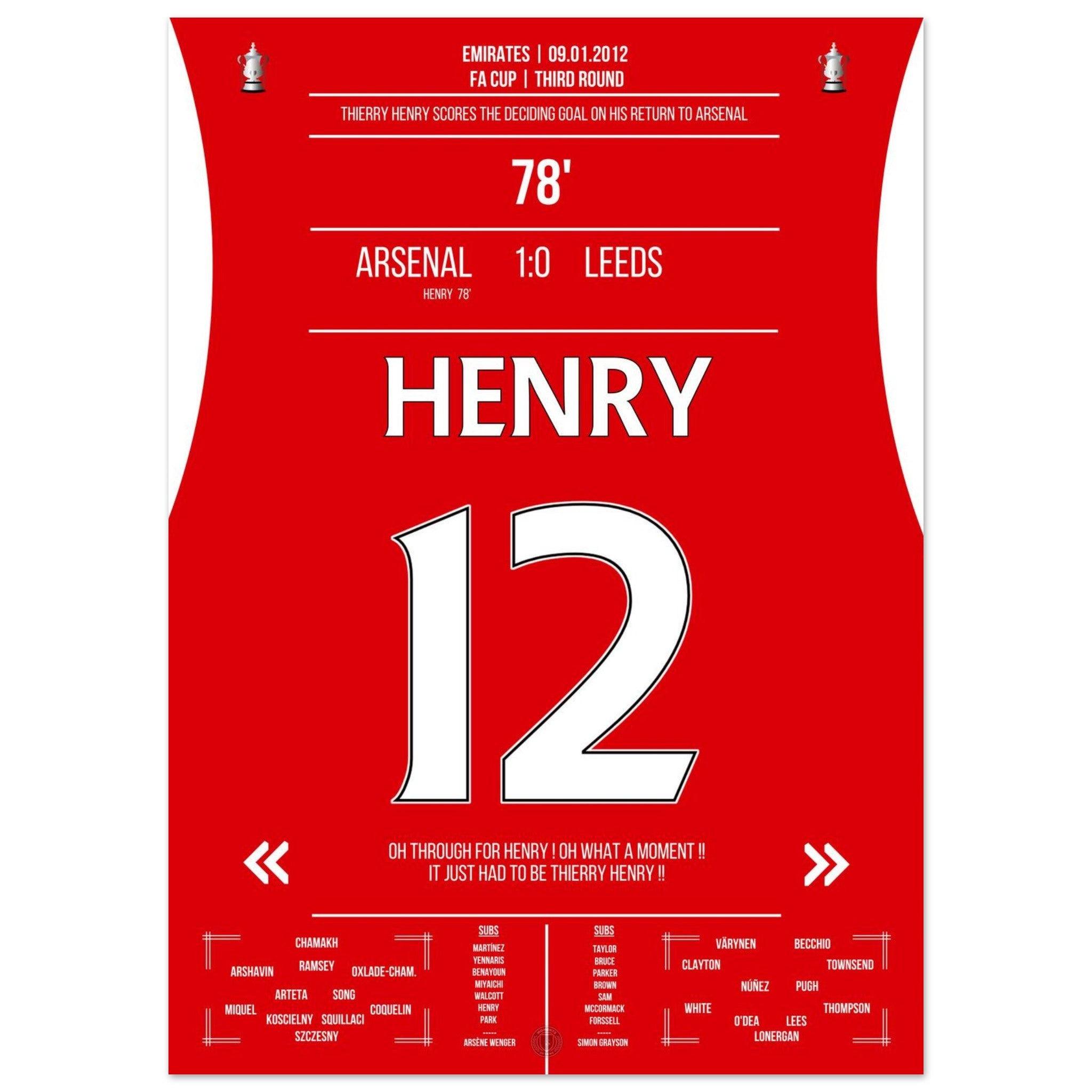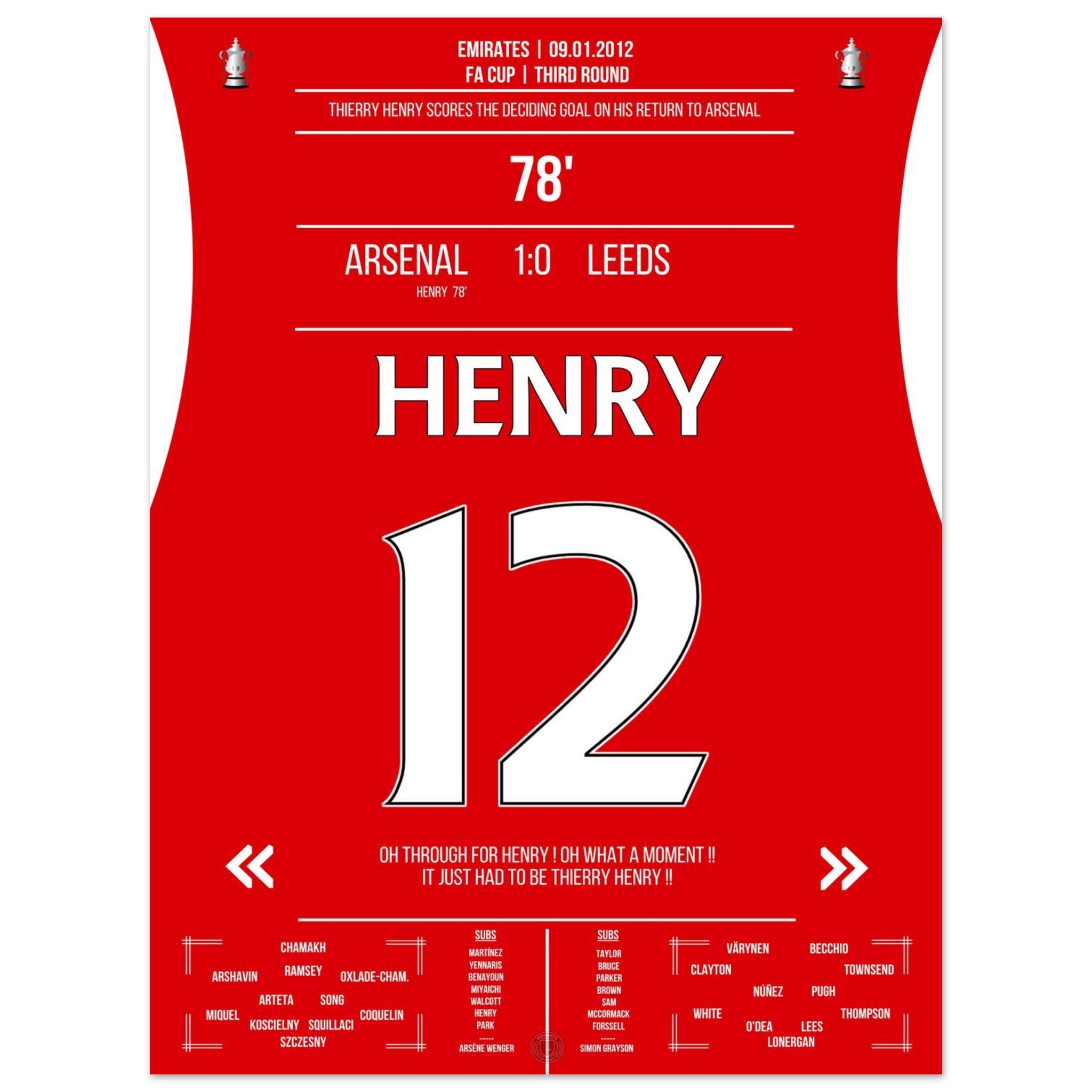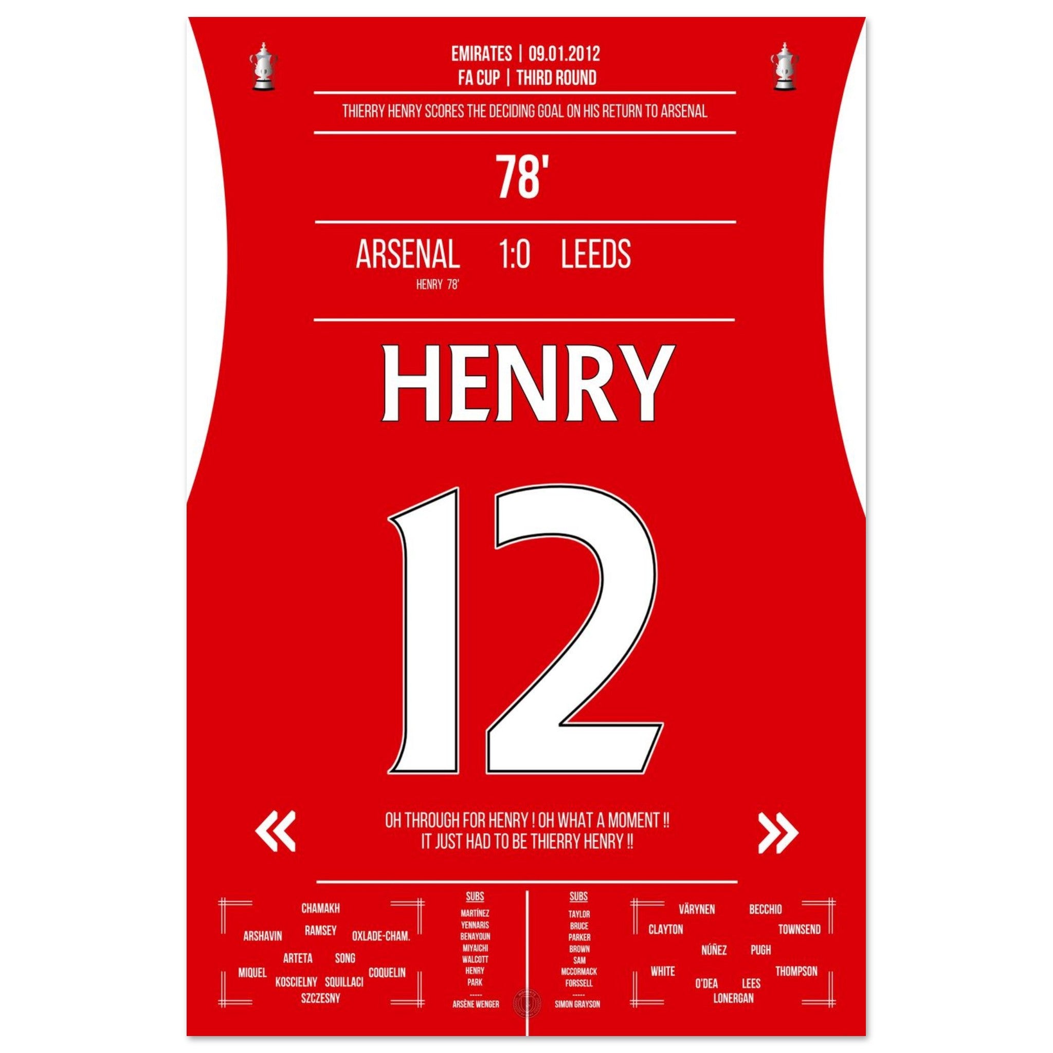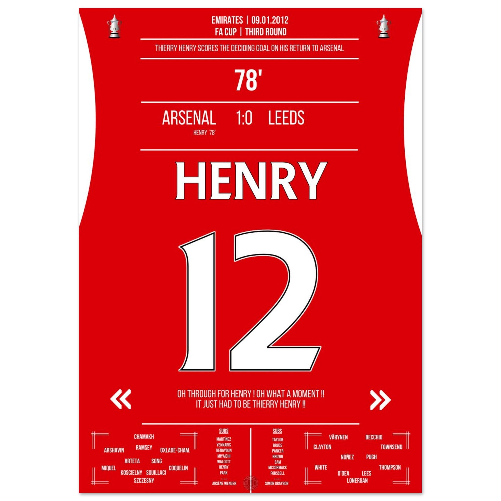 9. Januar 2012 – Arsenal vs. Leeds 1:0 – Henrys magische Rückkehr: