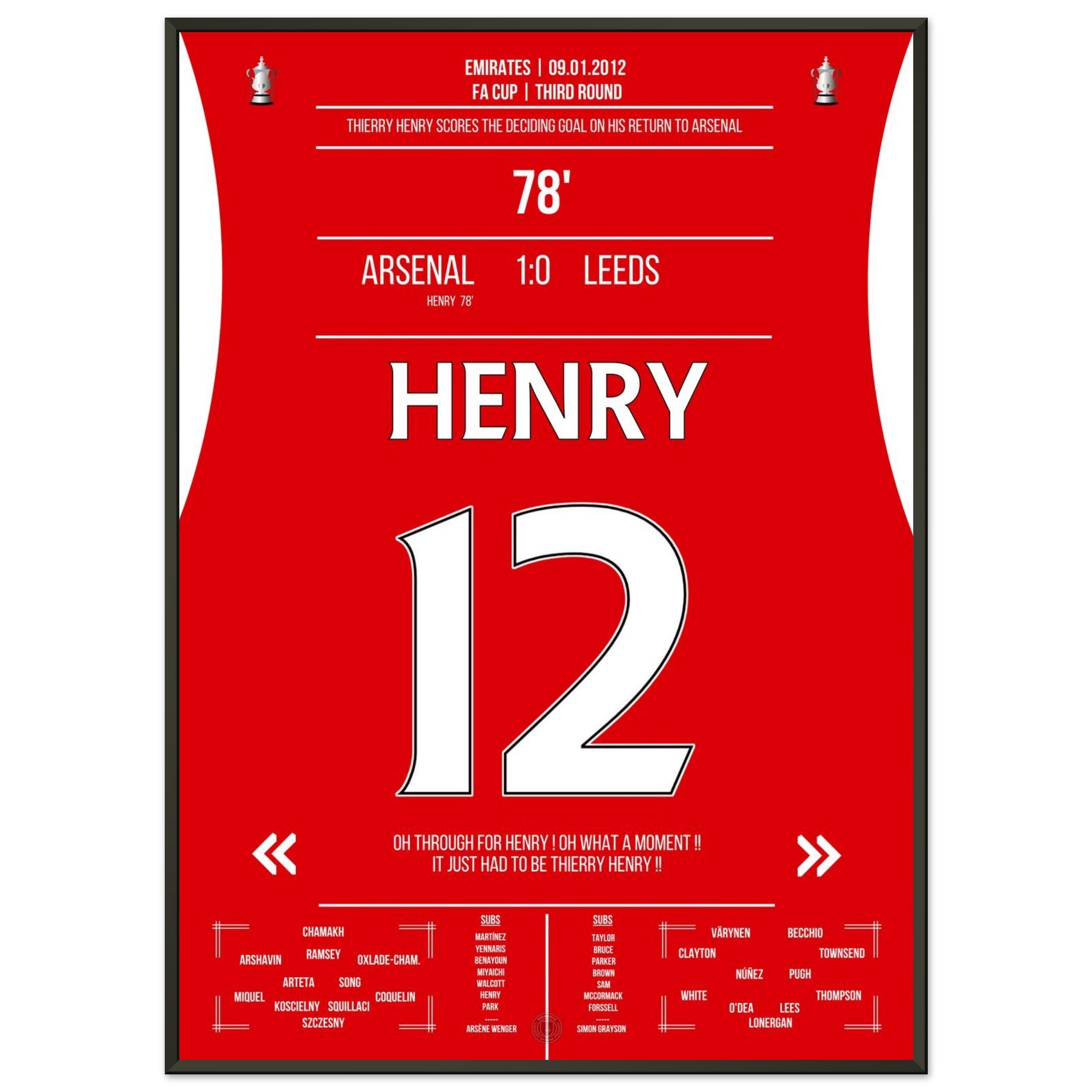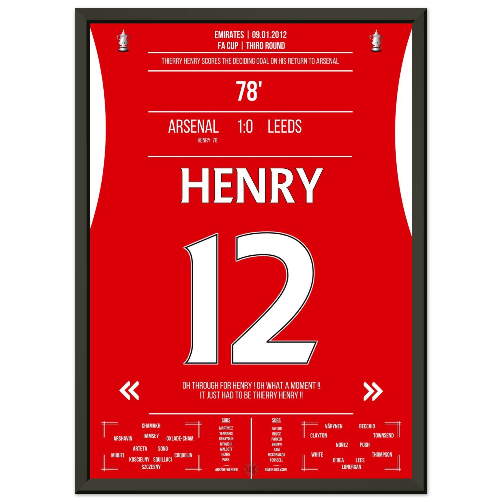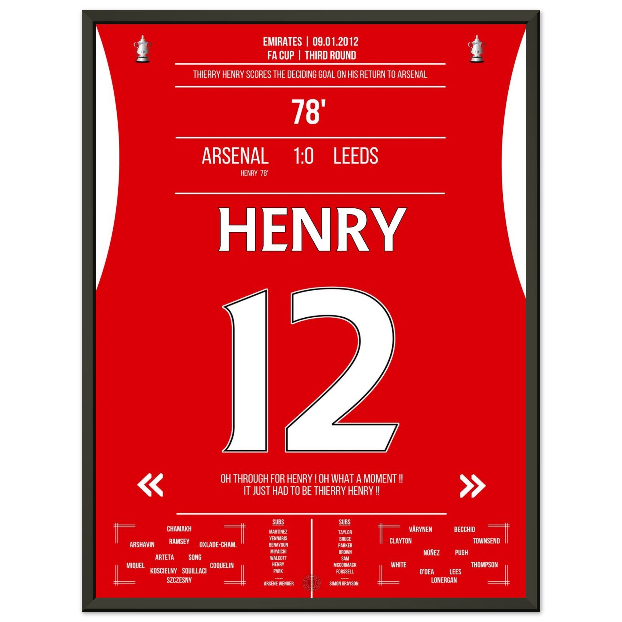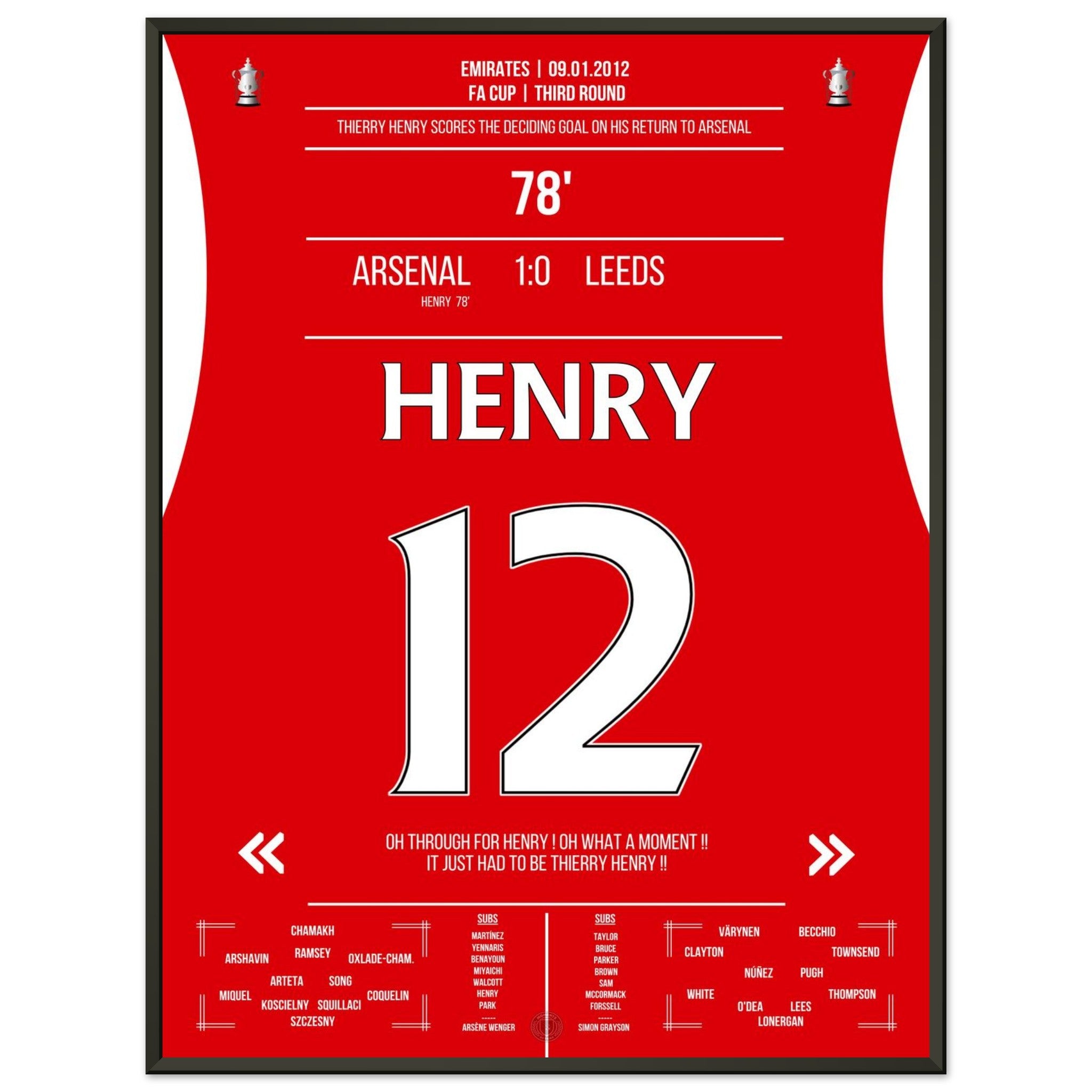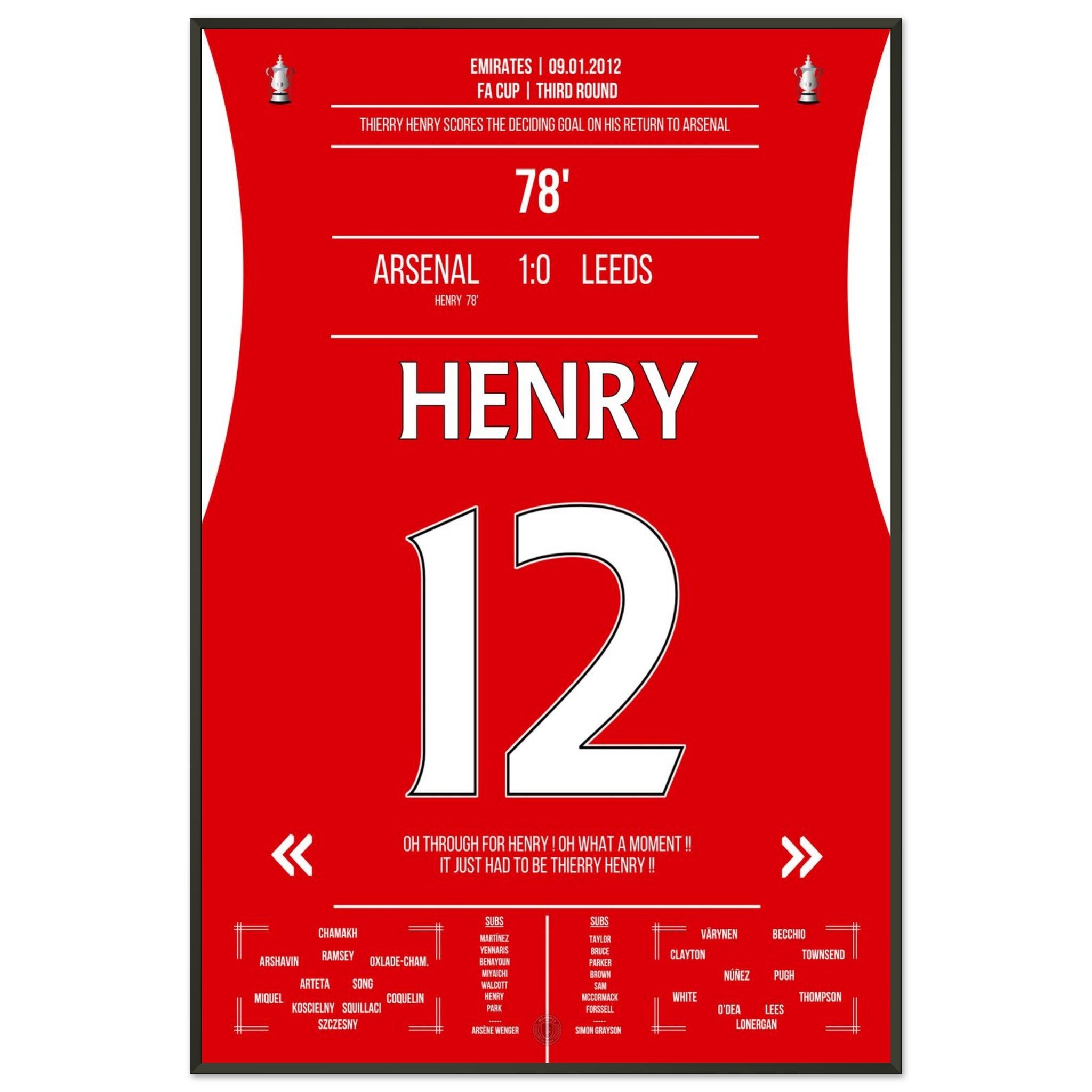 9. Januar 2012 – Arsenal vs. Leeds 1:0 – Henrys magische Rückkehr: