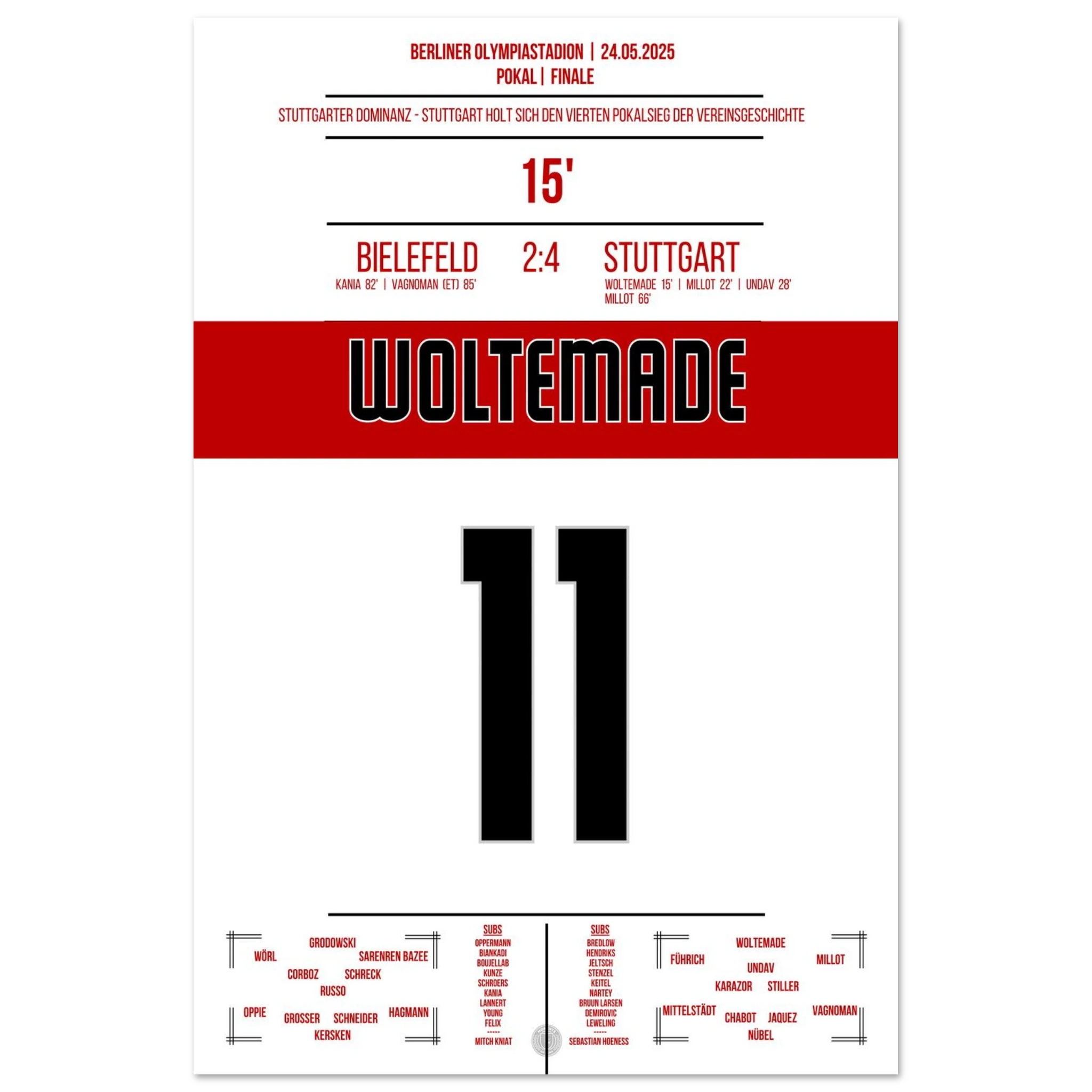 24. Mai 2025 – Bielefeld vs. Stuttgart 2:4: Stuttgart krönt eine überragende Saison mit dem Pokalsieg in Berlin! Mit Leidenschaft, Tempo und klarem Spiel bezwingen die Schwaben Bielefeld und holen den Pokal zurück nach Stuttgart. Unser Poster verewigt diesen rot-weißen Triumphmoment im Olympiastadion.
