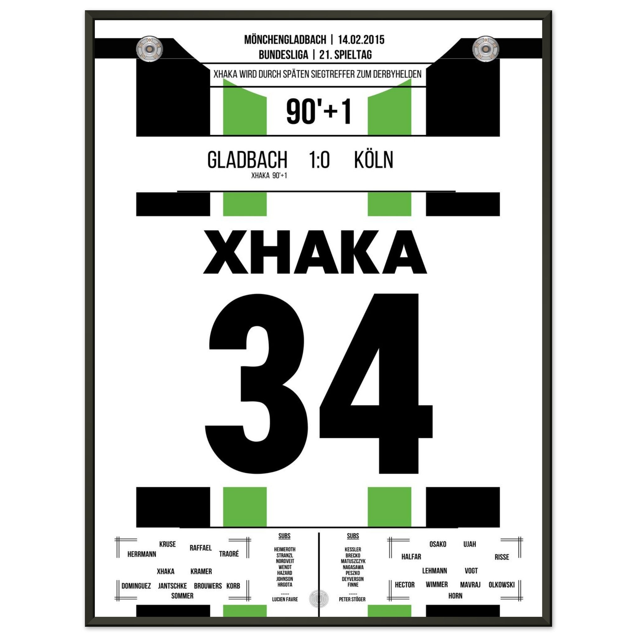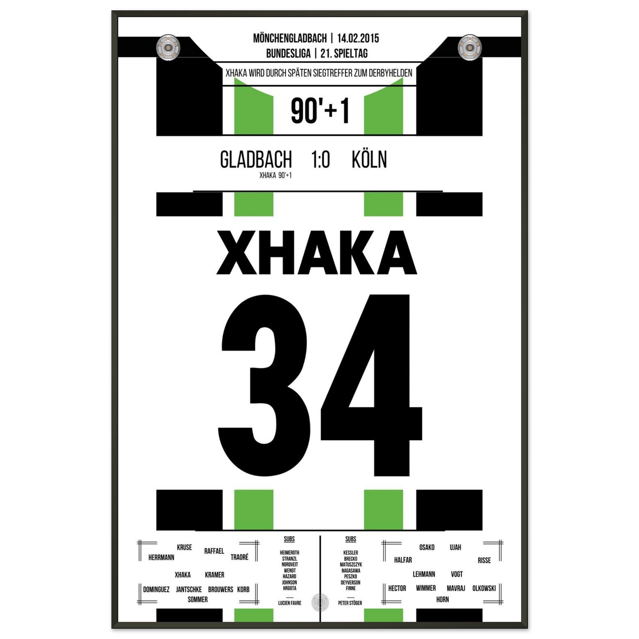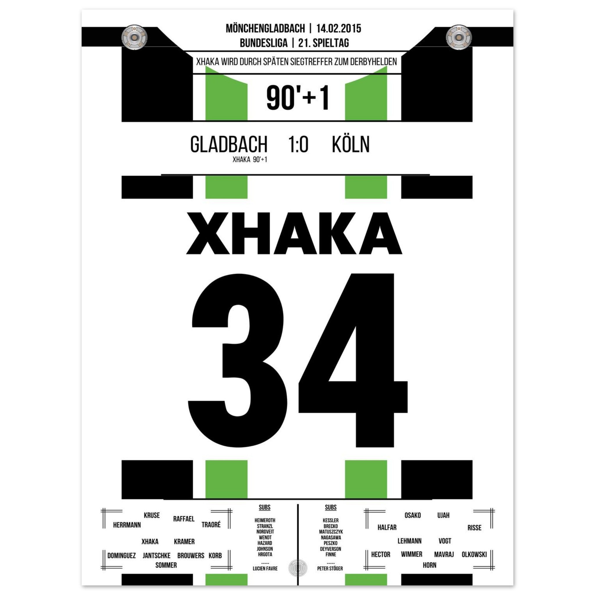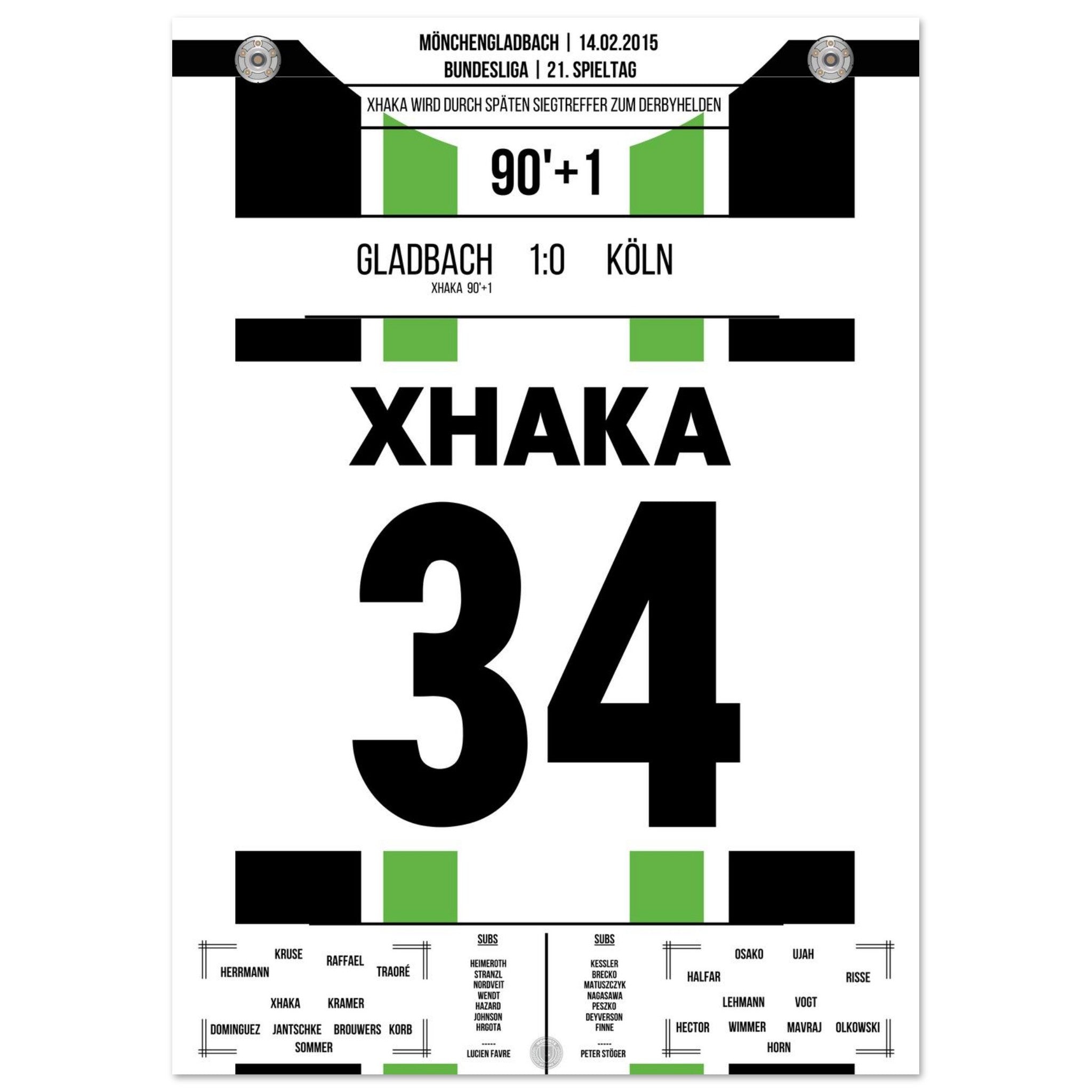 Im rheinischen Derby zwischen Gladbach und Köln sorgt Granit Xhaka in der 90. Minute mit seinem Tor für die Entscheidung. In einer umkämpften Partie setzt der Schweizer den späten Schlusspunkt – und lässt den Borussia-Park beben.