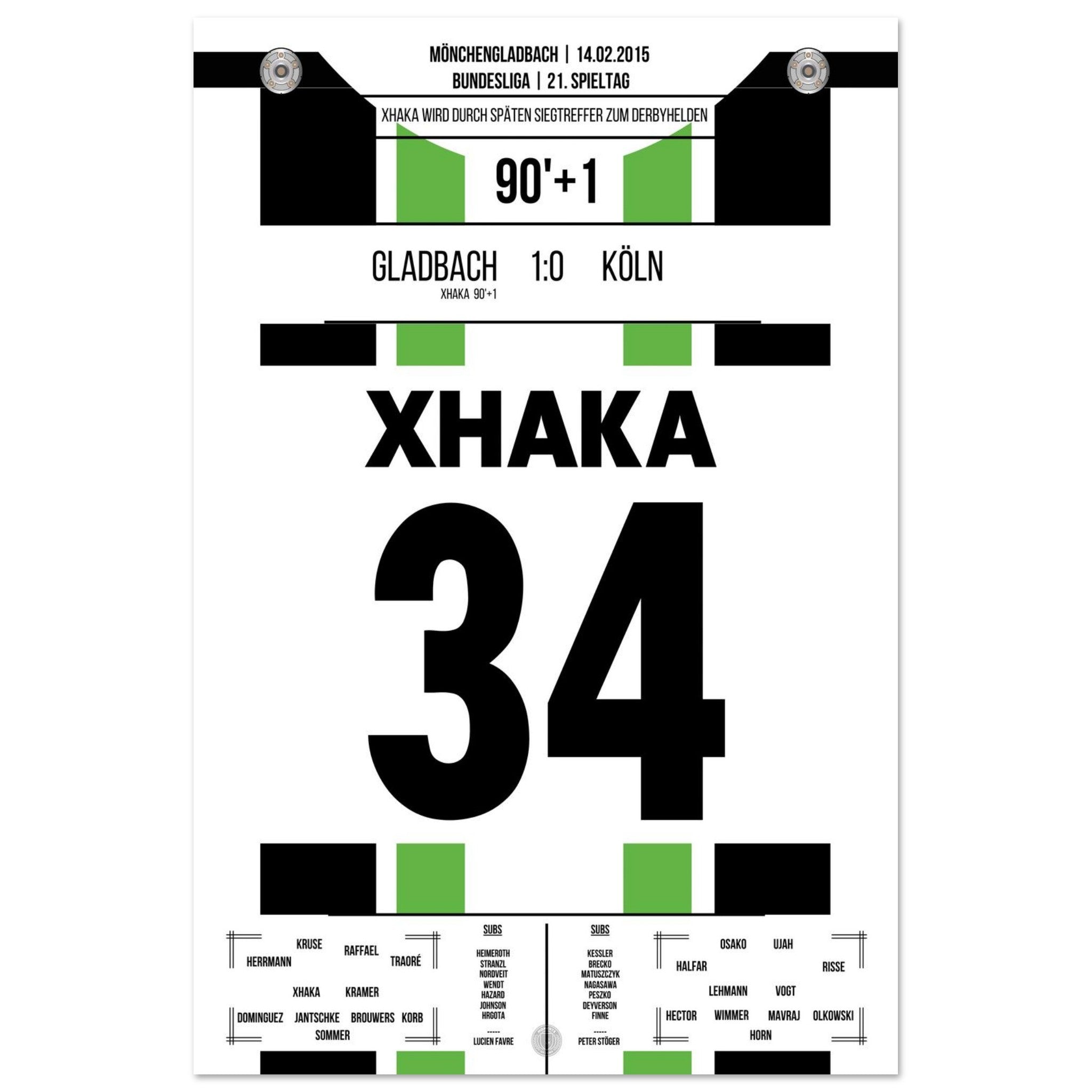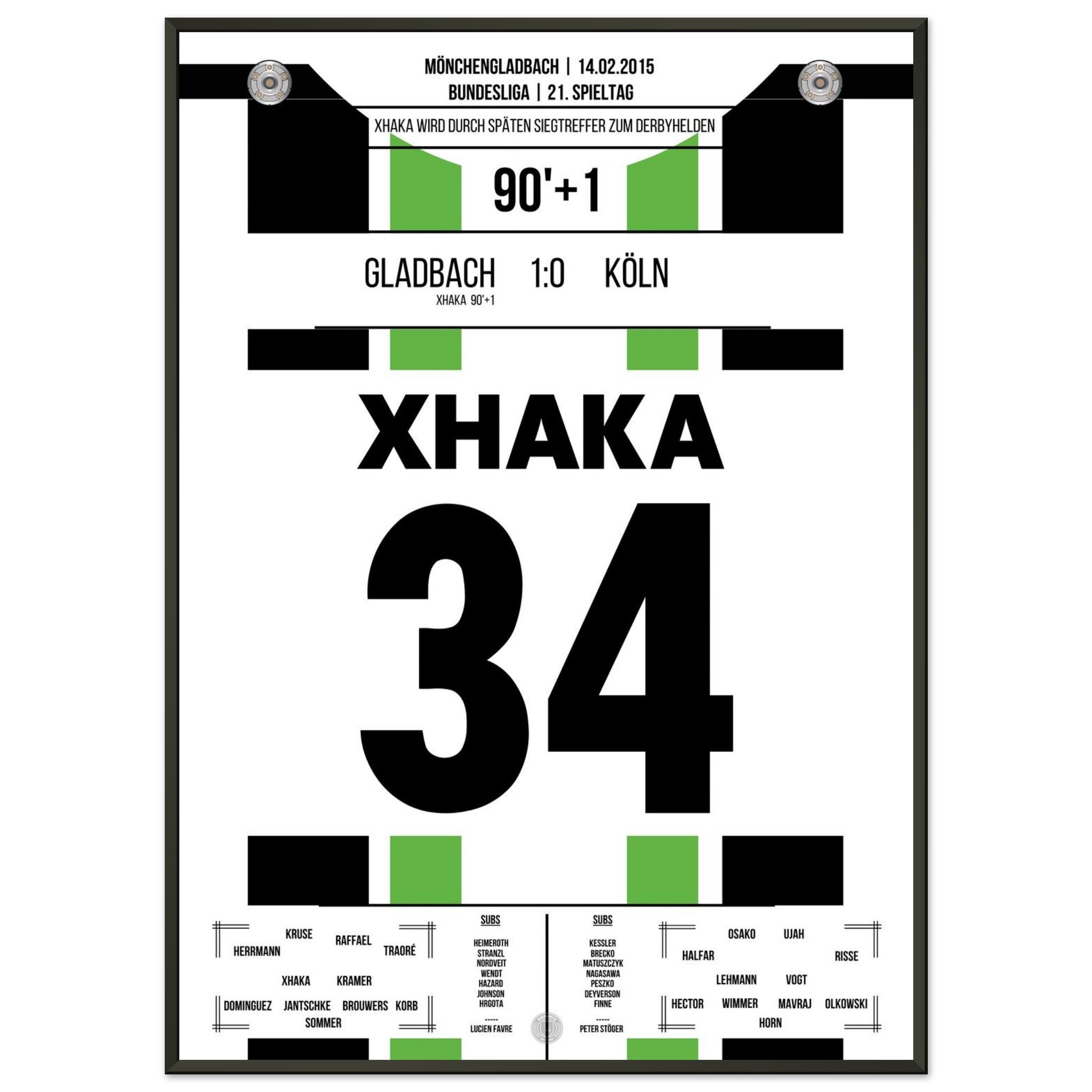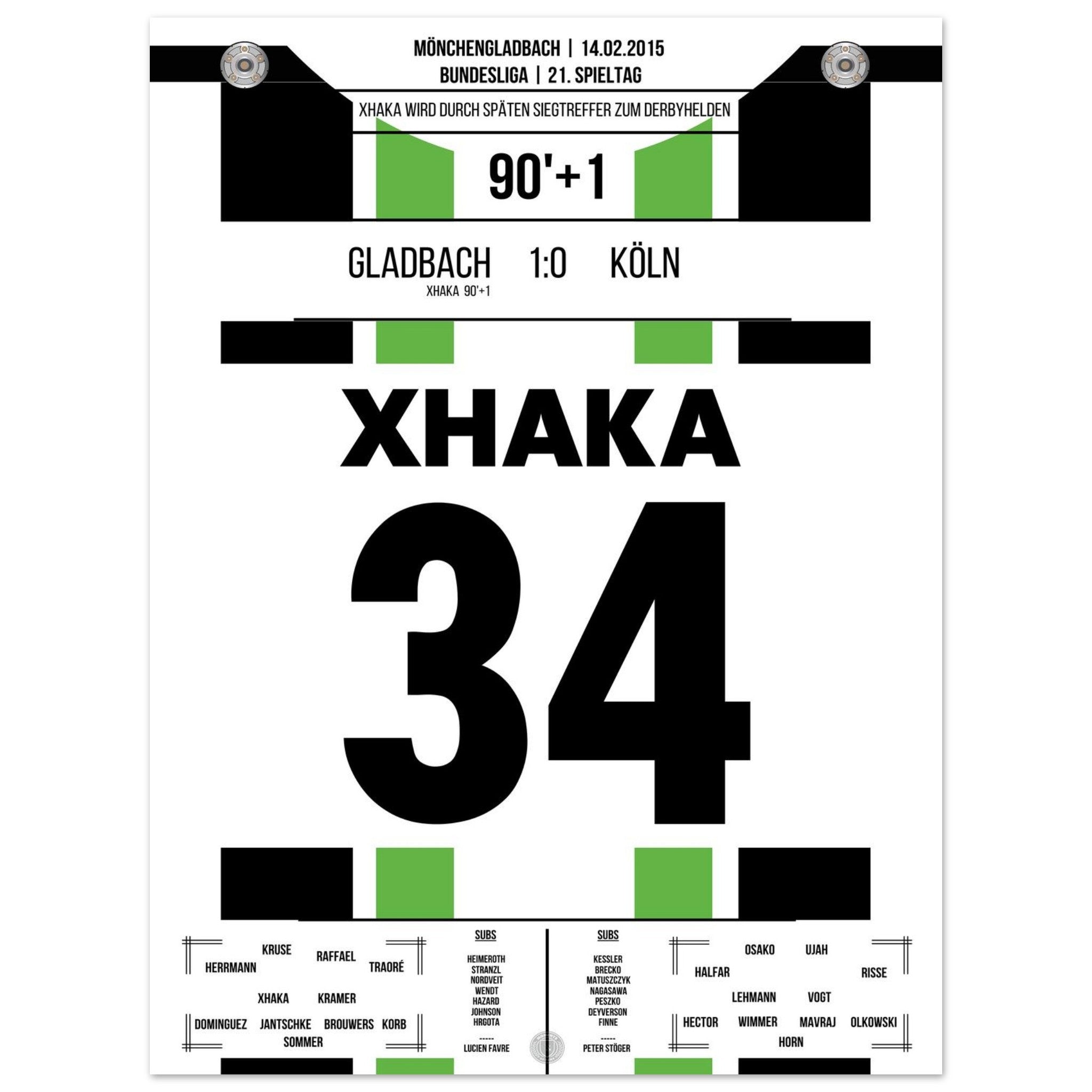 Im rheinischen Derby zwischen Gladbach und Köln sorgt Granit Xhaka in der 90. Minute mit seinem Tor für die Entscheidung. In einer umkämpften Partie setzt der Schweizer den späten Schlusspunkt – und lässt den Borussia-Park beben.