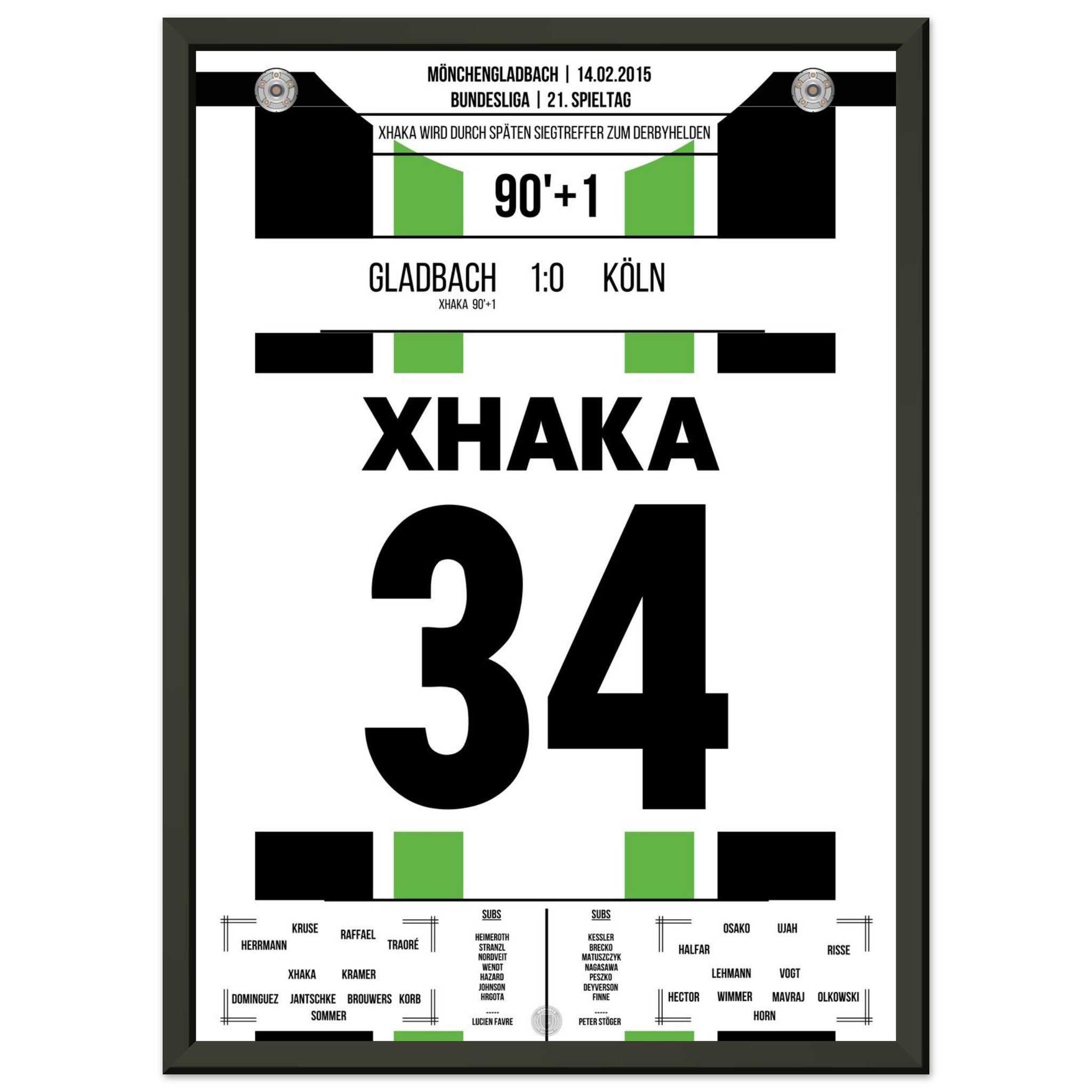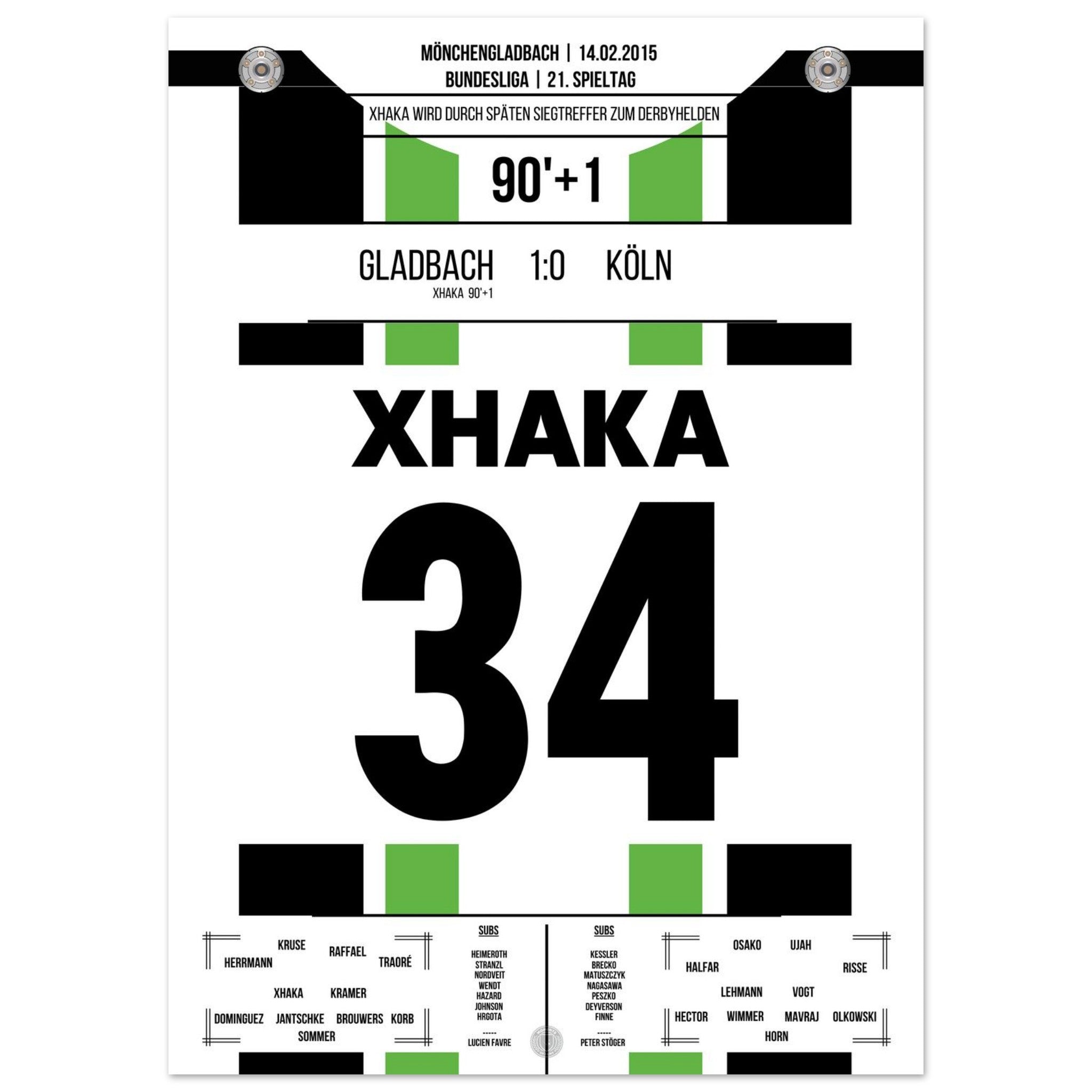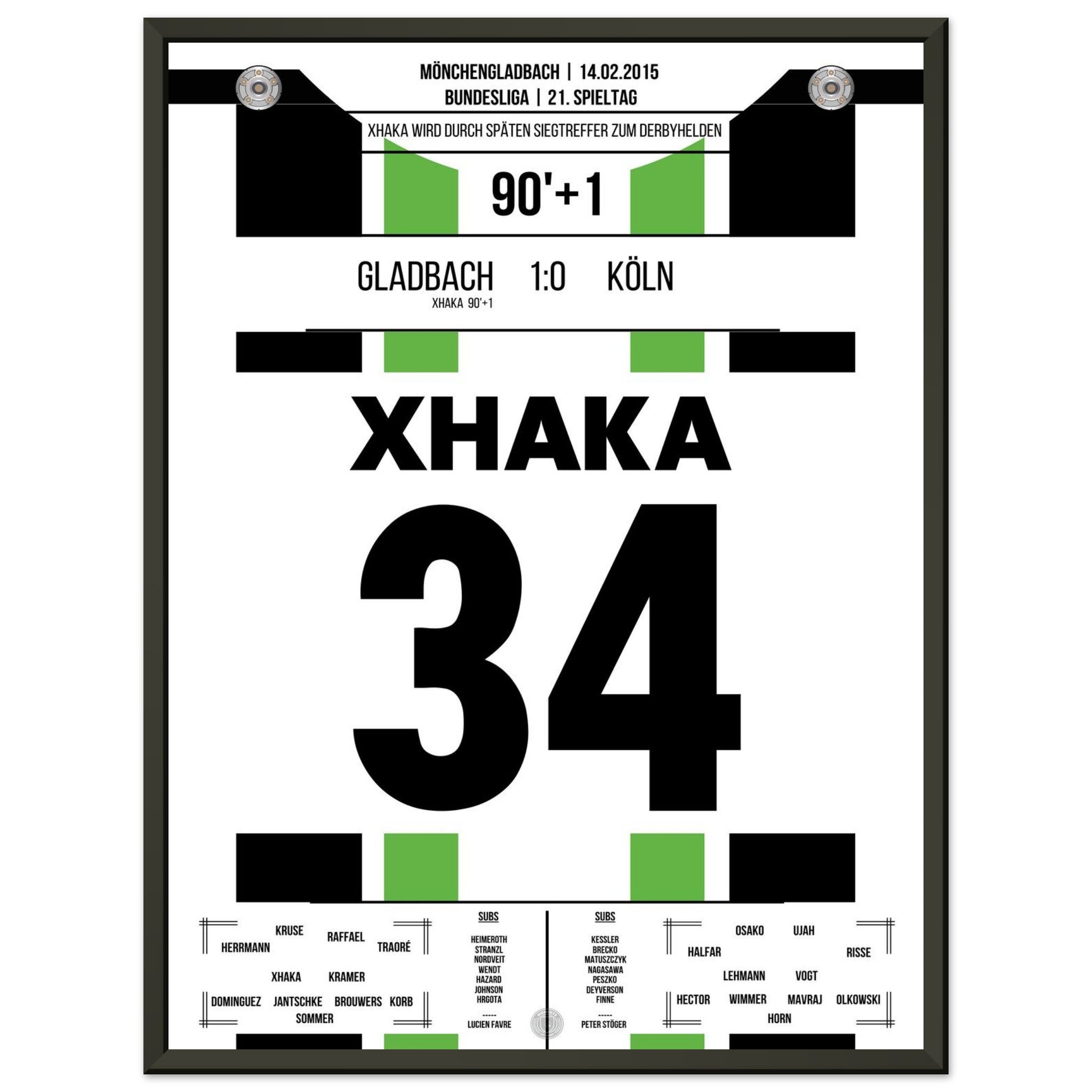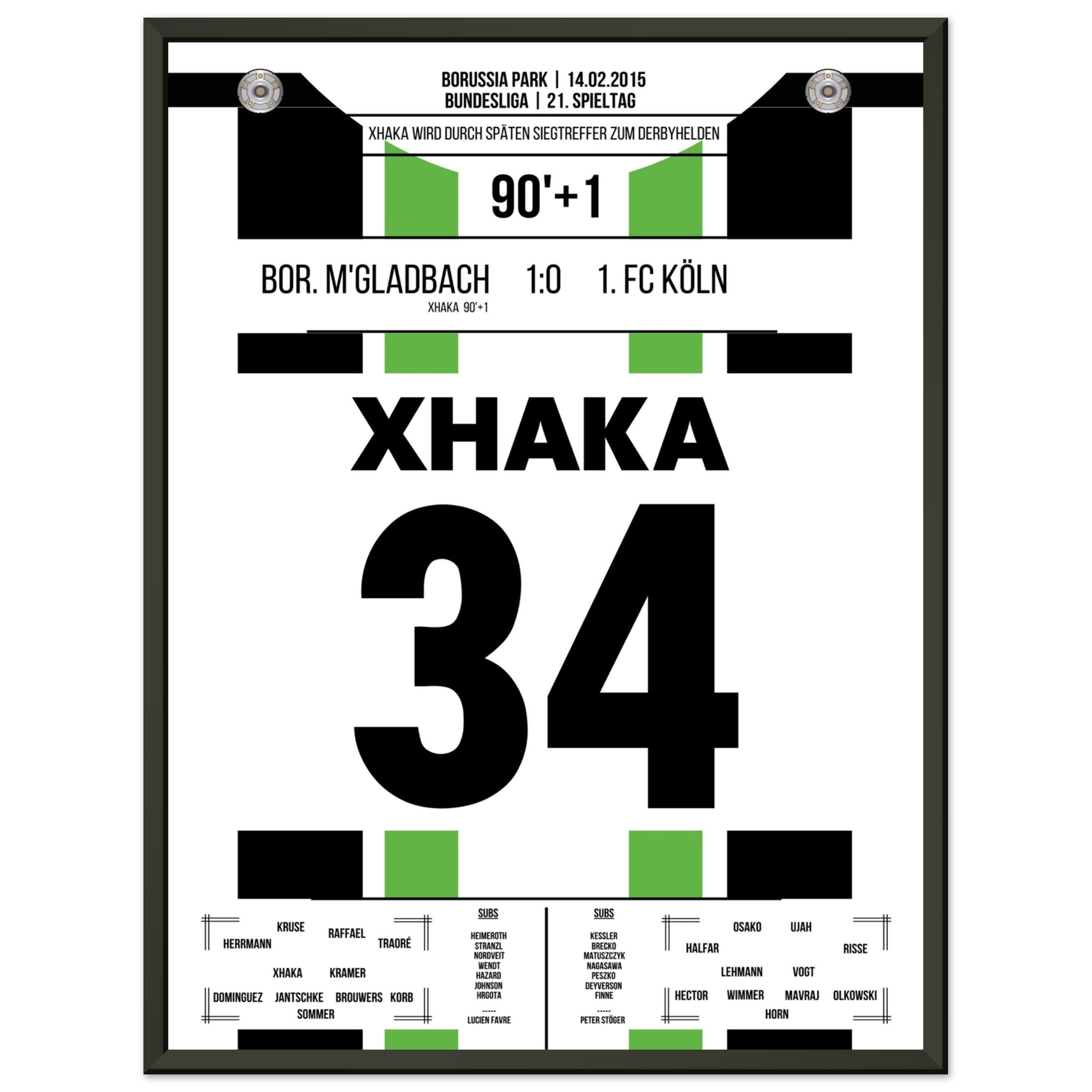 Im rheinischen Derby zwischen Gladbach und Köln sorgt Granit Xhaka in der 90. Minute mit seinem Tor für die Entscheidung. In einer umkämpften Partie setzt der Schweizer den späten Schlusspunkt – und lässt den Borussia-Park beben.