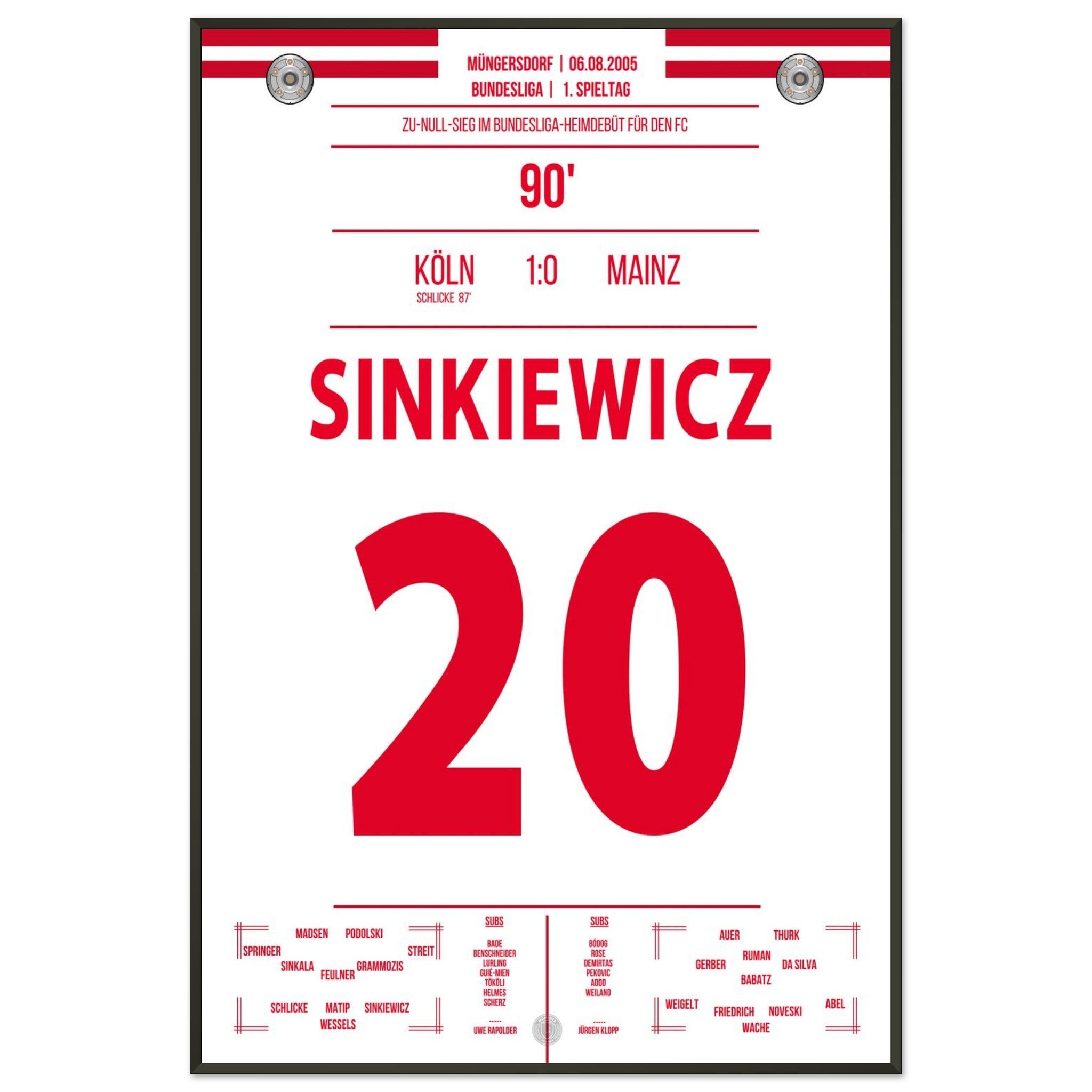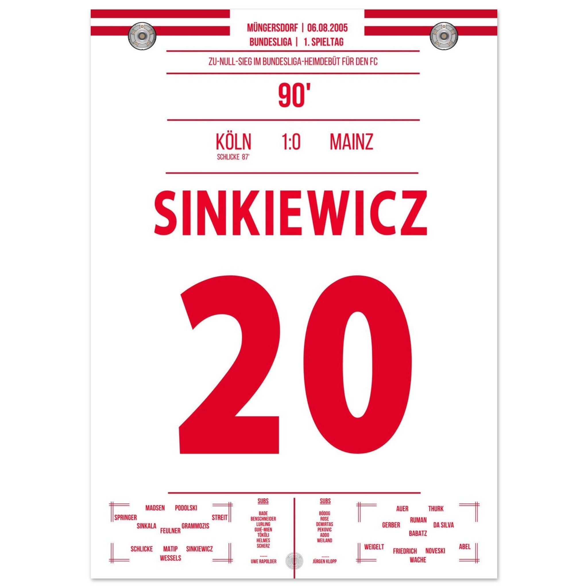 6. August 2005 – Köln vs. Mainz 1:0: Bei seinem Bundesliga-Debüt für Köln steht Lukas Sinkiewicz direkt im Fokus – mit einer starken Leistung in der Defensive trägt er zum Auftaktsieg bei. Ein gelungener Einstand vor heimischer Kulisse. Unser Poster hält diesen besonderen Moment im Trikot der Geißböcke fest.